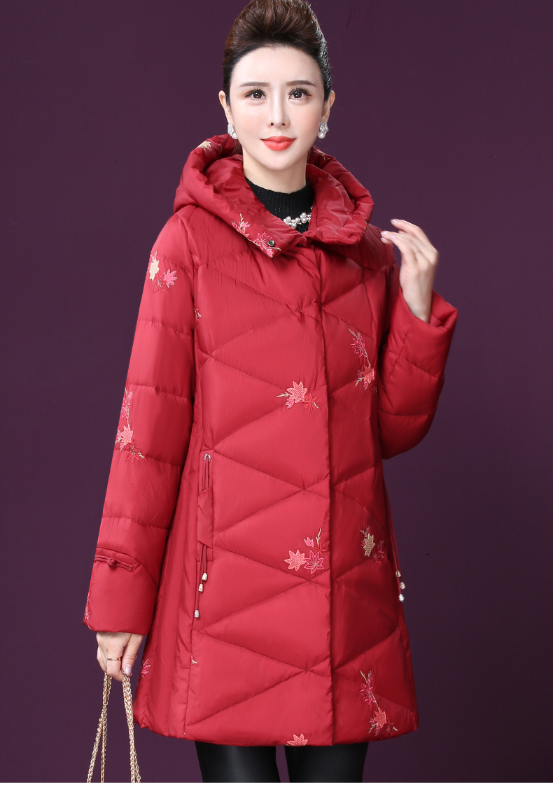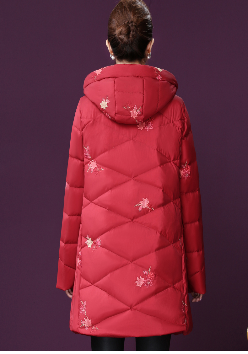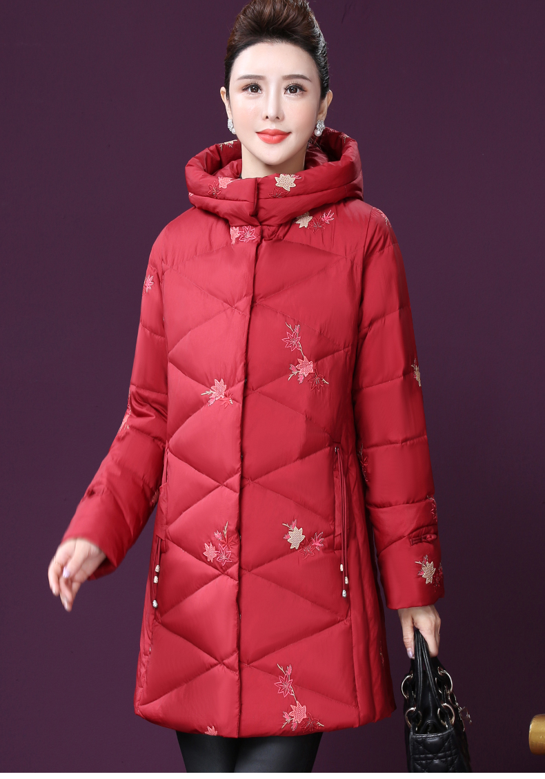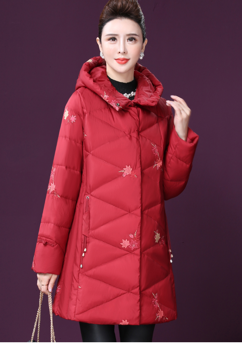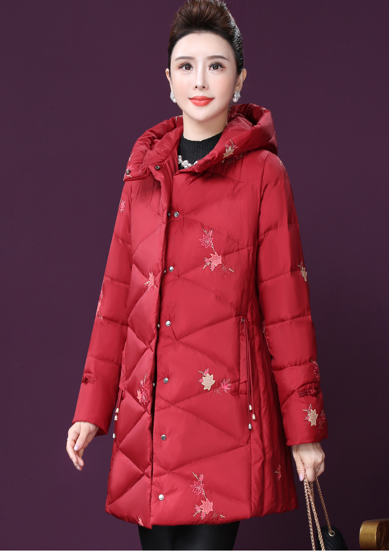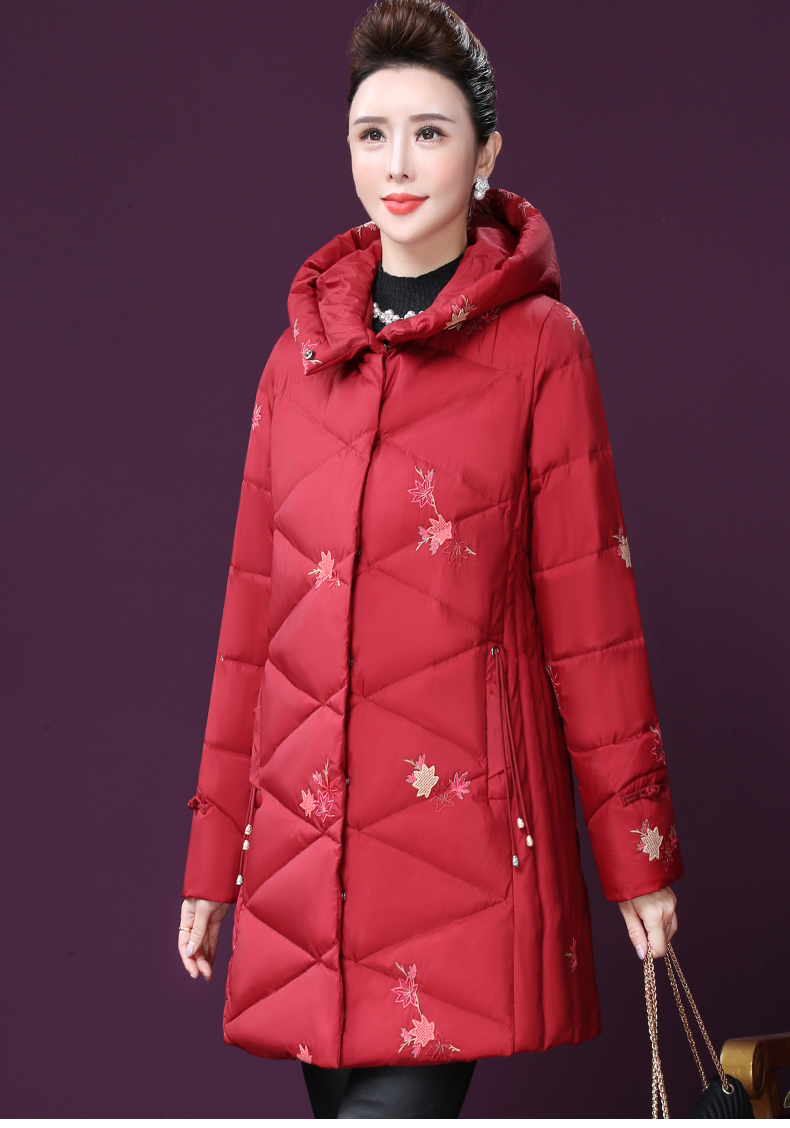 WXY-YN-20102W新款时尚气质宽松连帽保暖刺绣白鹅绒羽绒服外套