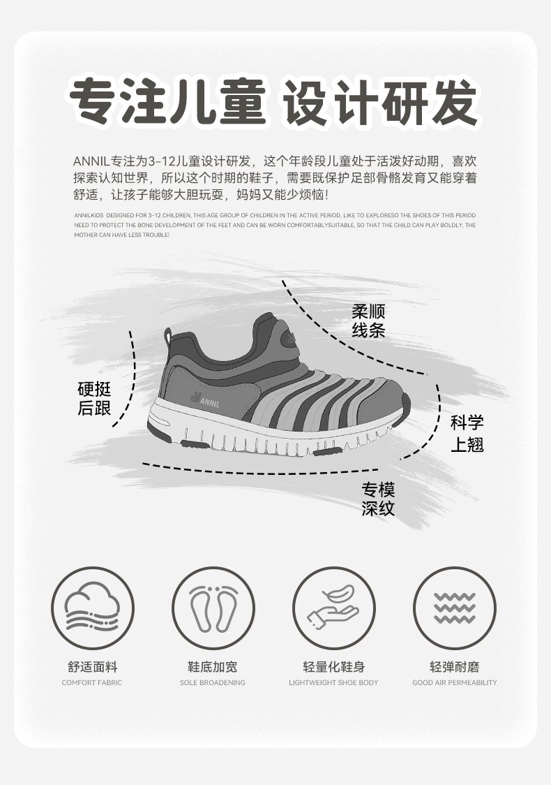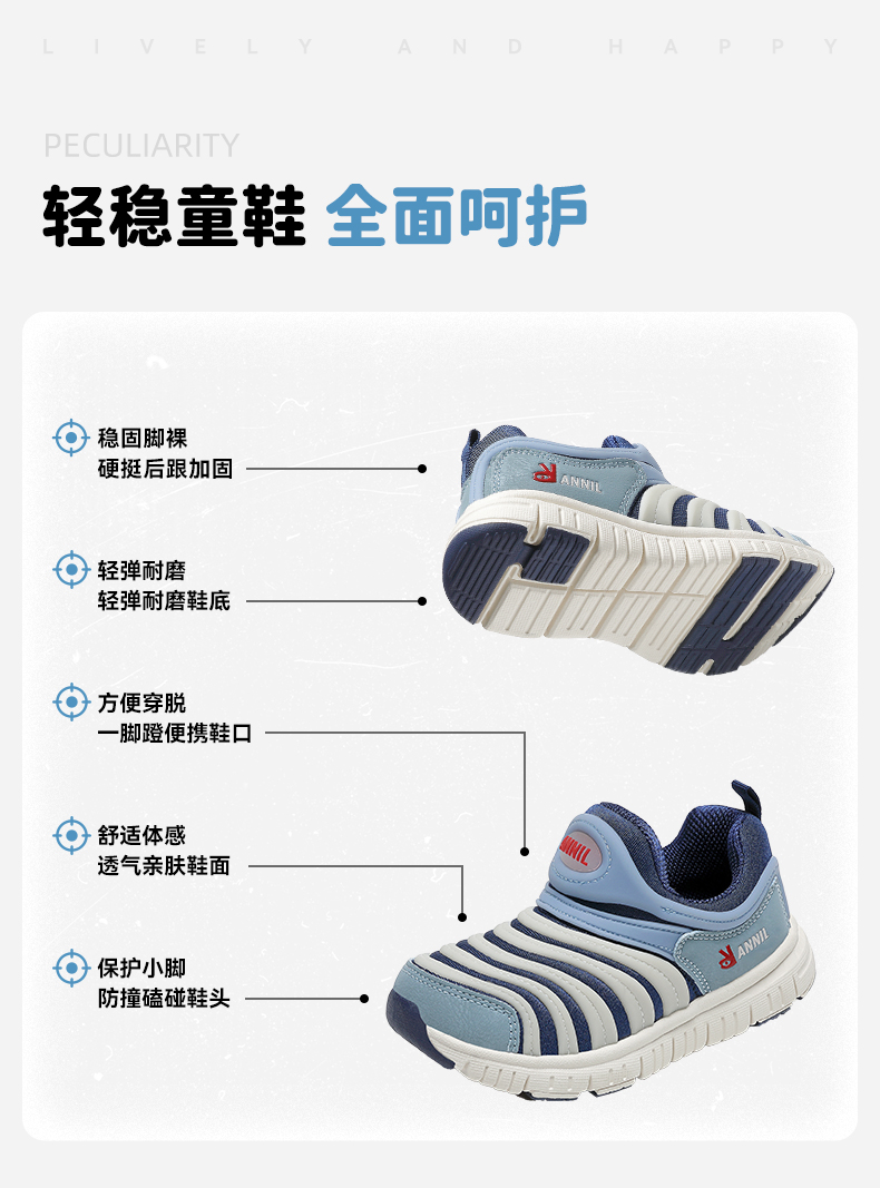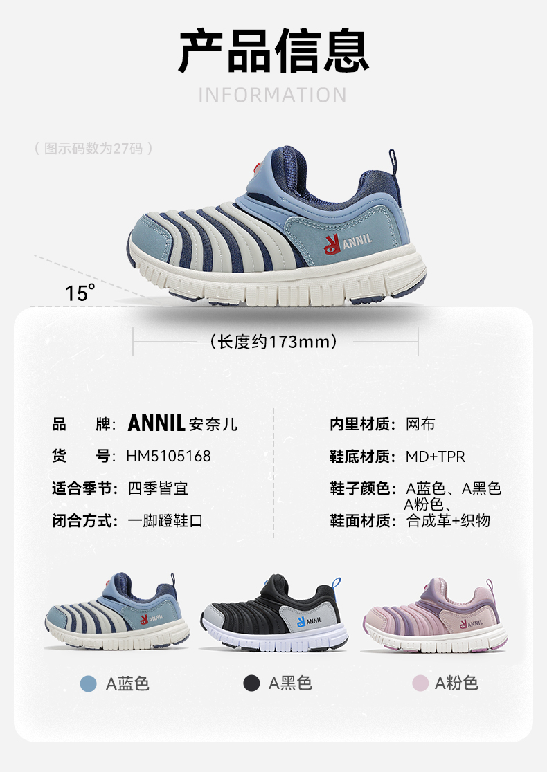 ANNIL/安奈儿儿童软底2025春季新款男童宝宝毛毛虫休闲学步鞋女童机能鞋HM5105168