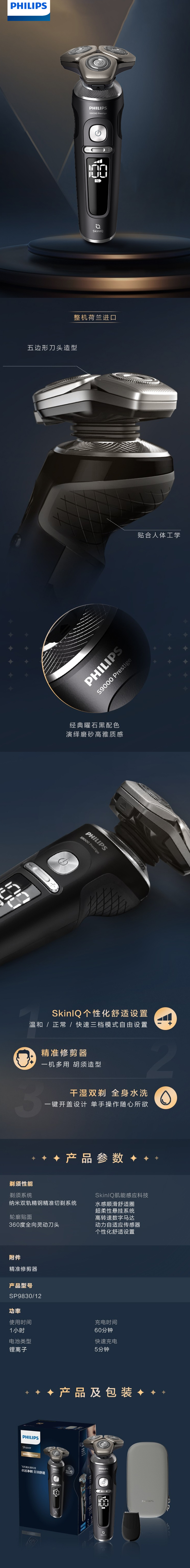 PHILIPS飞利浦奢享系列SkinIQ肌能感应水感舒适剃须刀(SP9830/12)