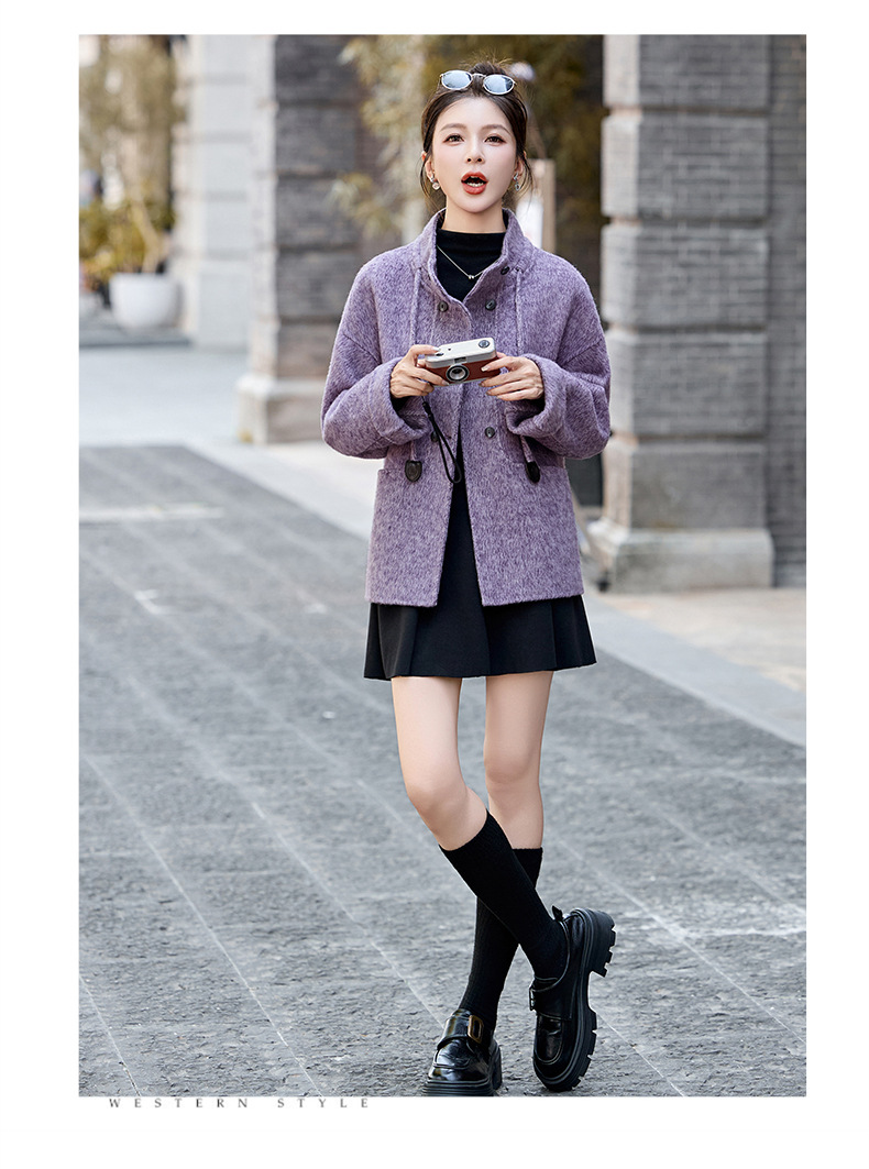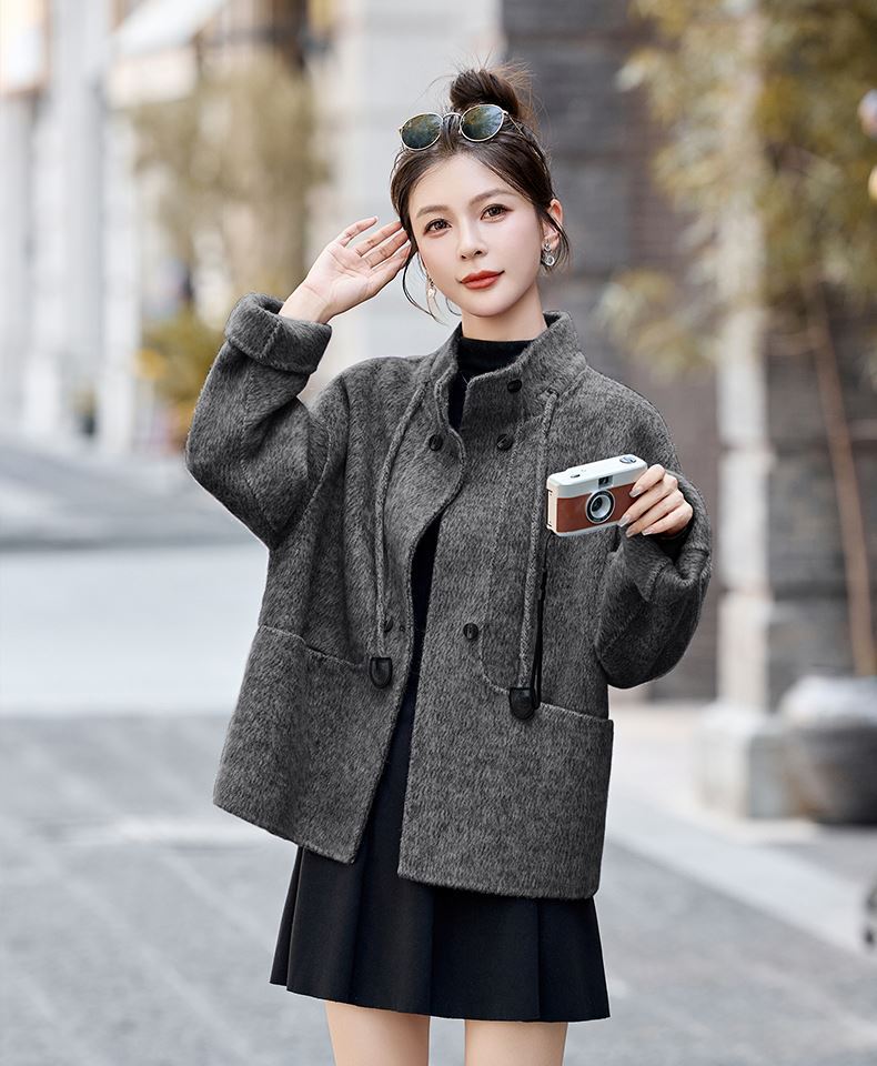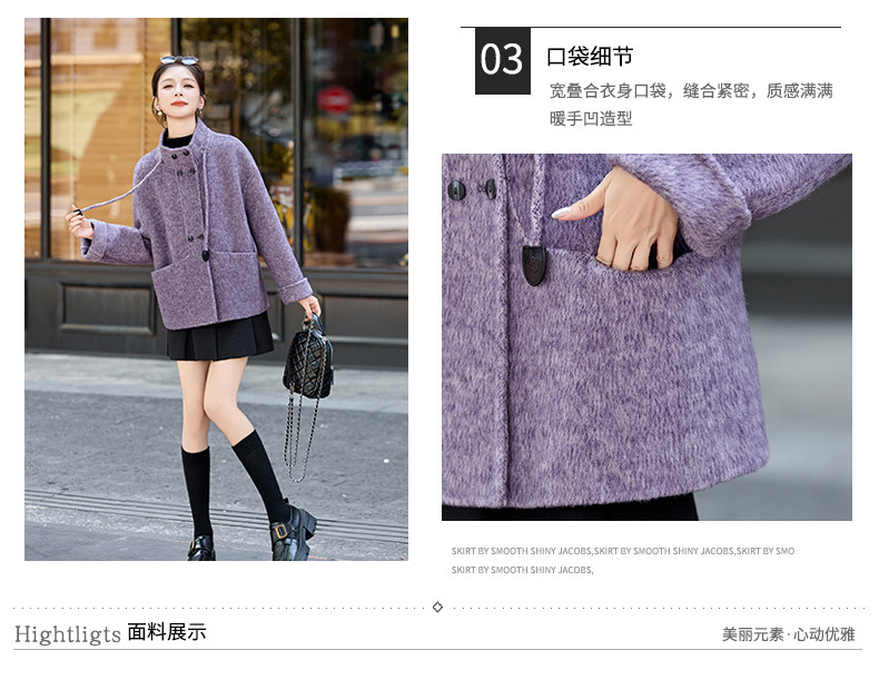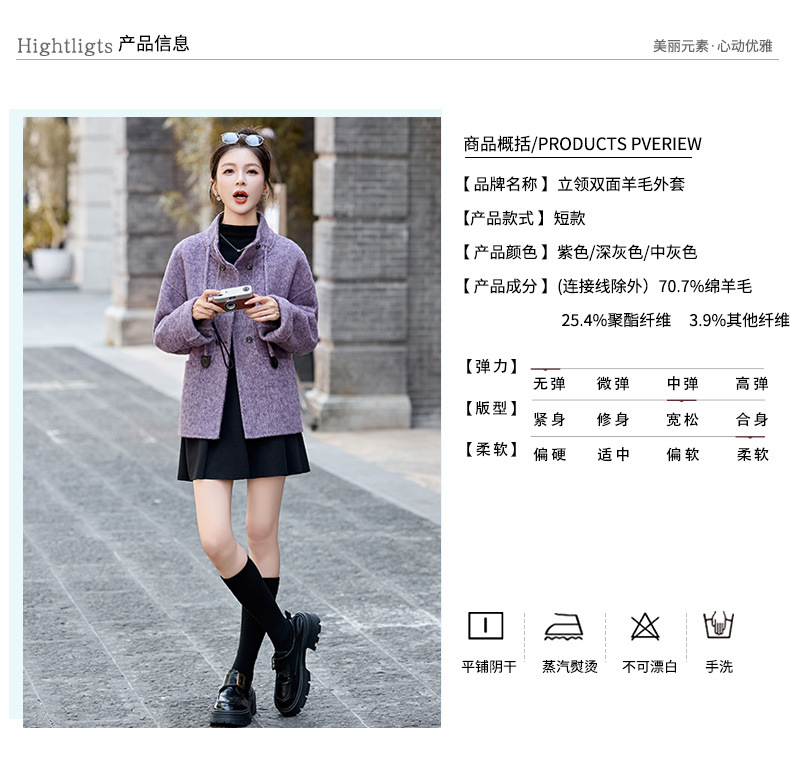 双面呢大衣短款,轻奢显瘦气质毛呢外套HR-QIXFS25-5120