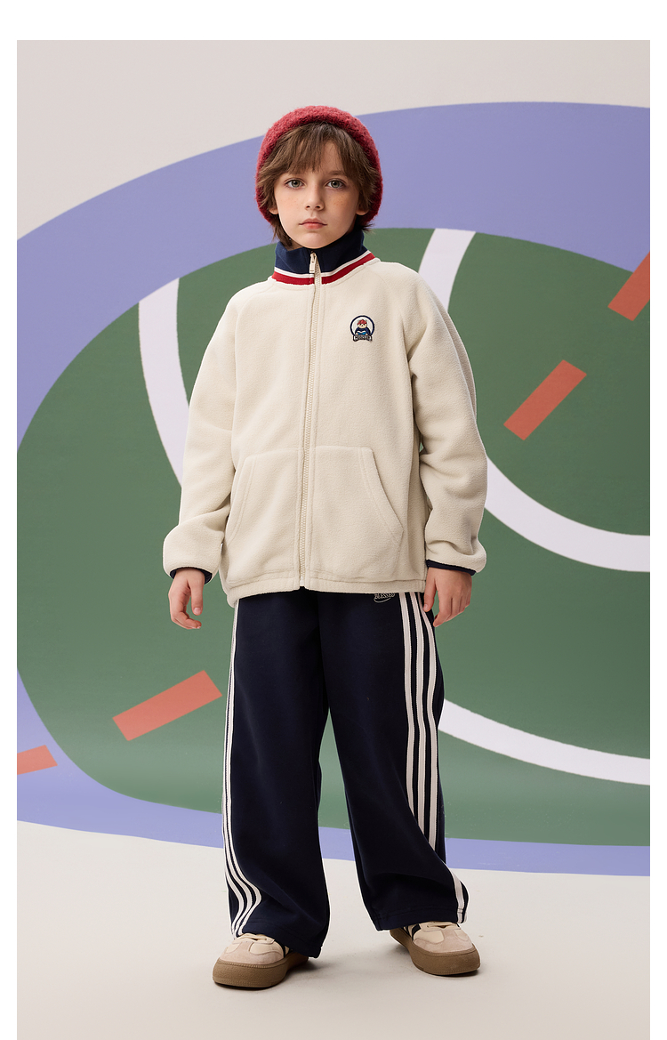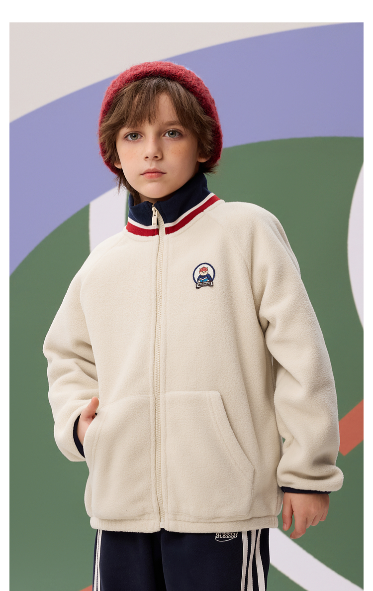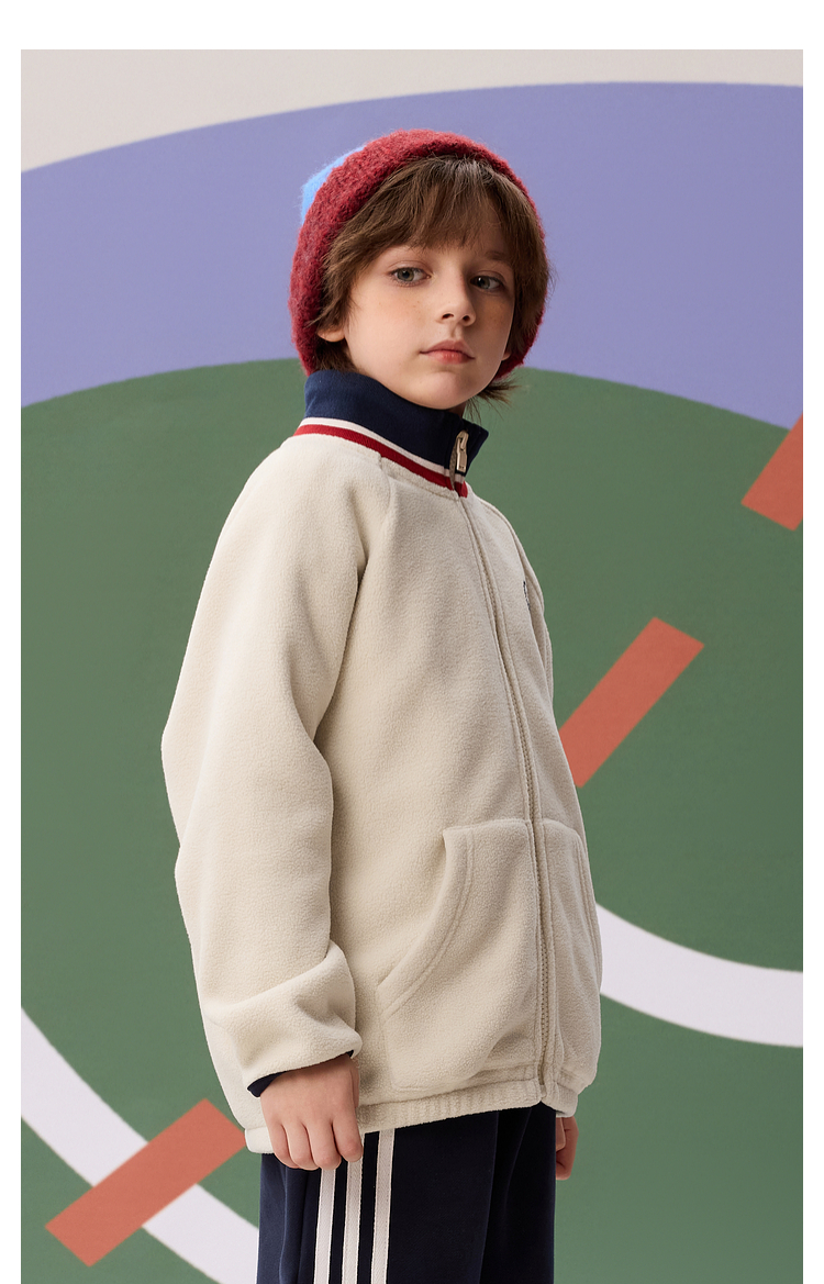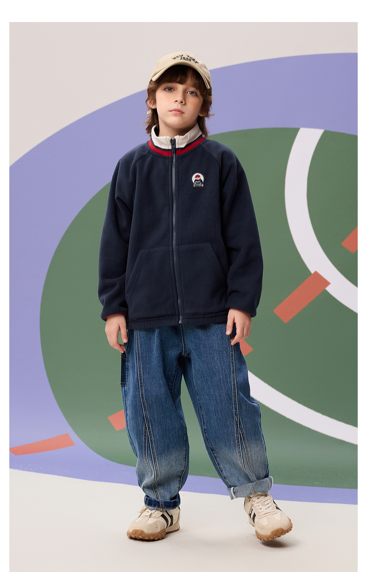 【MQD】【C】男大童秋季新品学院风撞色摇粒绒外套