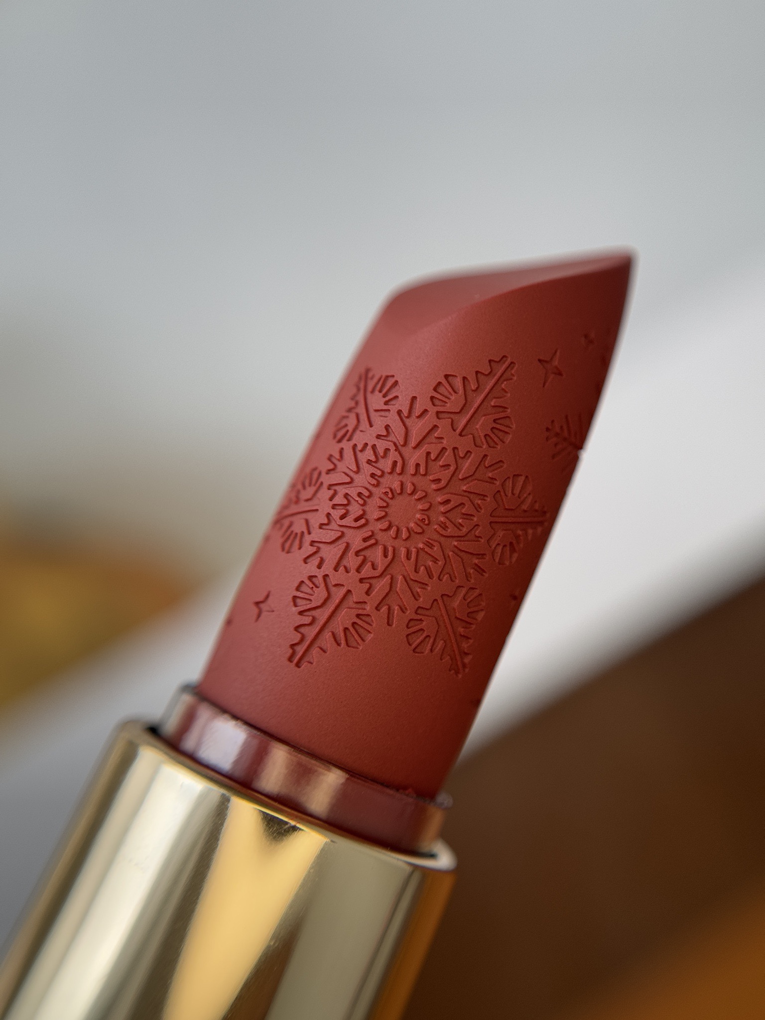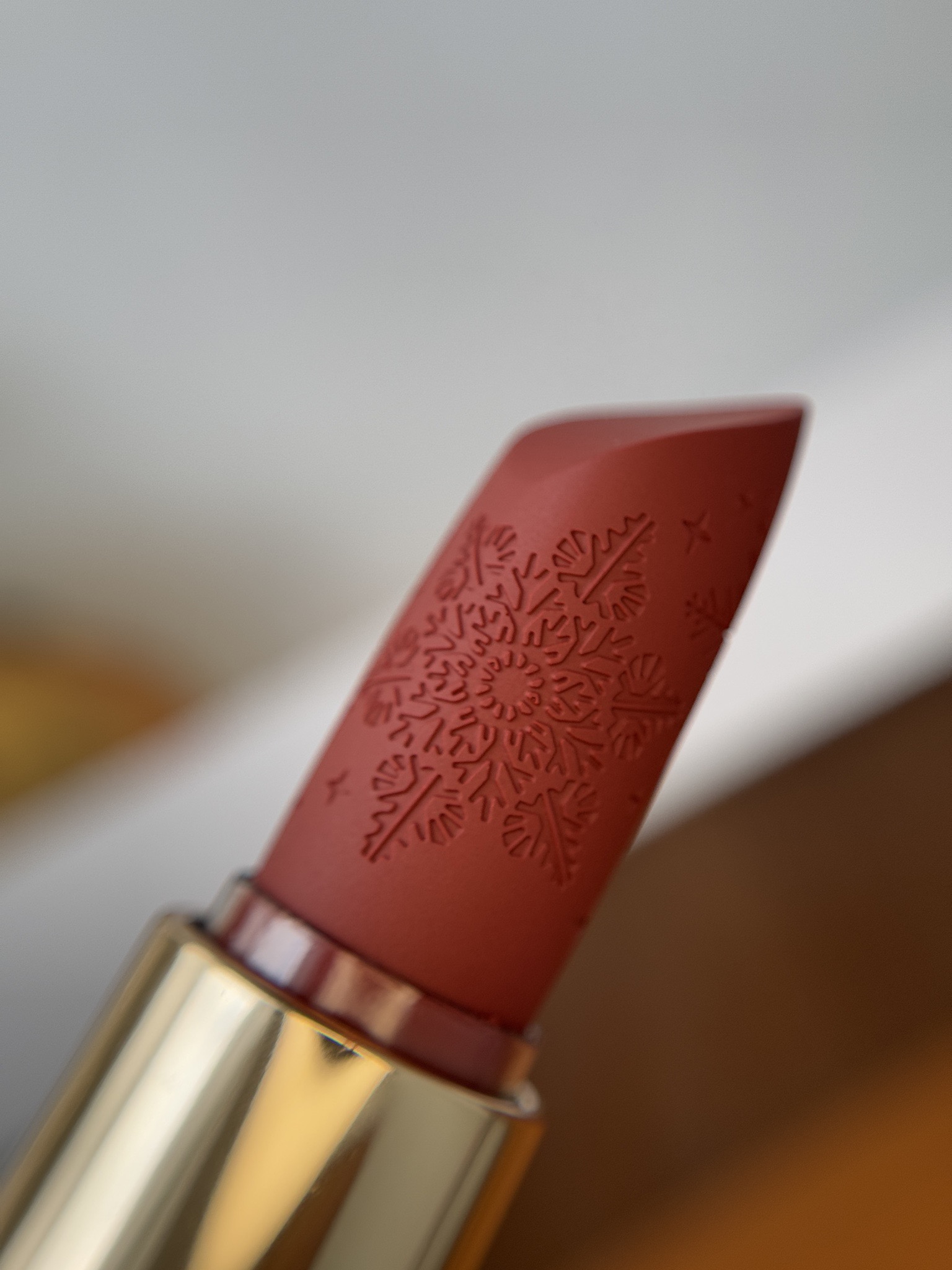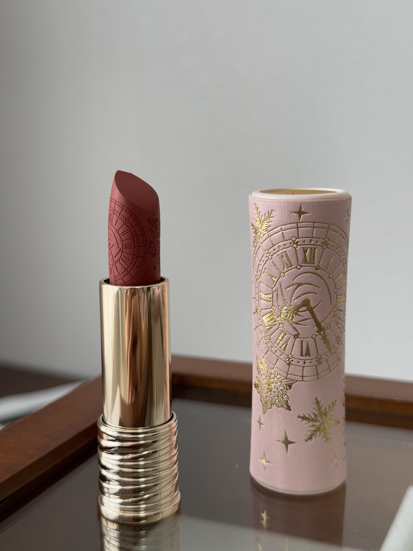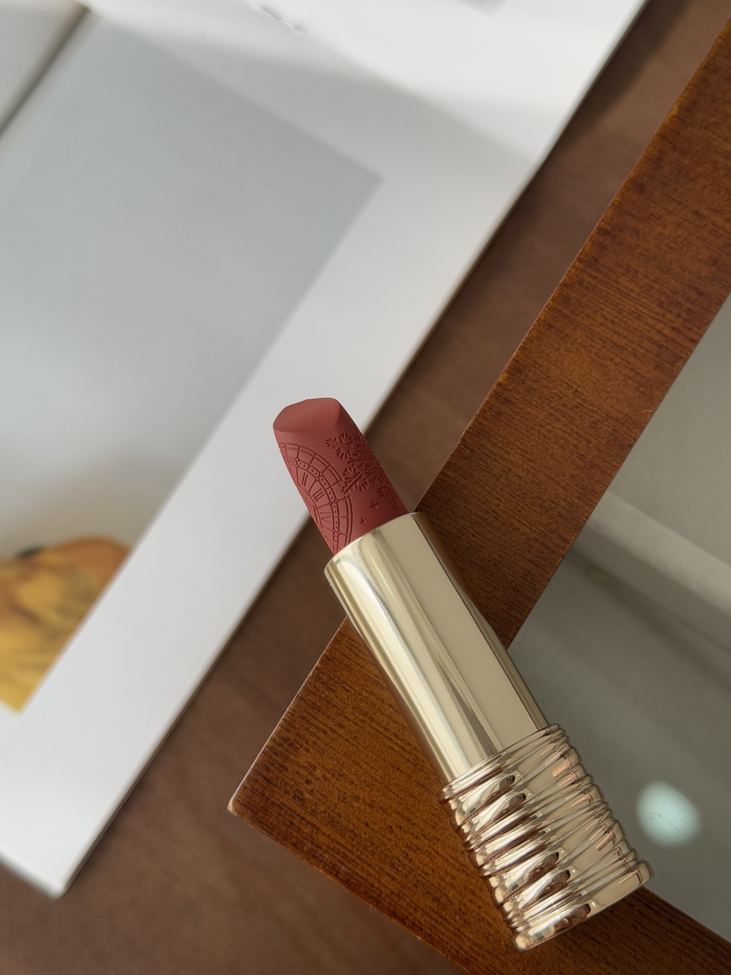 开合式的礼盒设计仪式感十足,打开的瞬间像拆一份专属的节日惊喜;单支口红的包装也延续了礼盒的精致纹样,细节处尽显用心