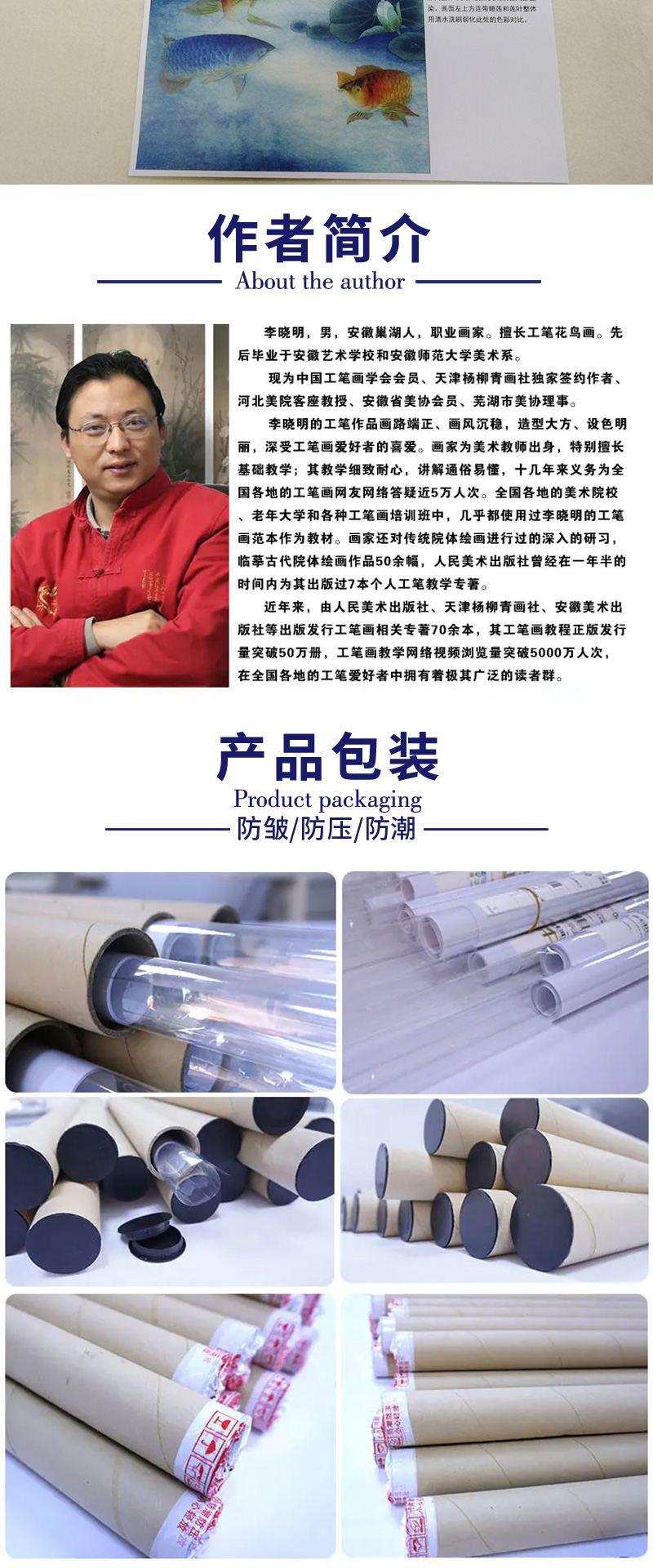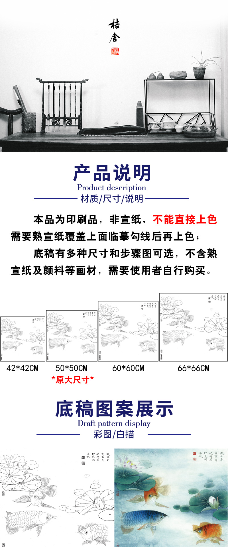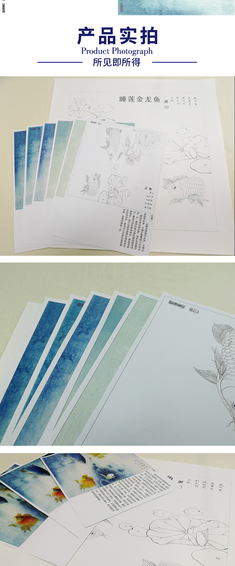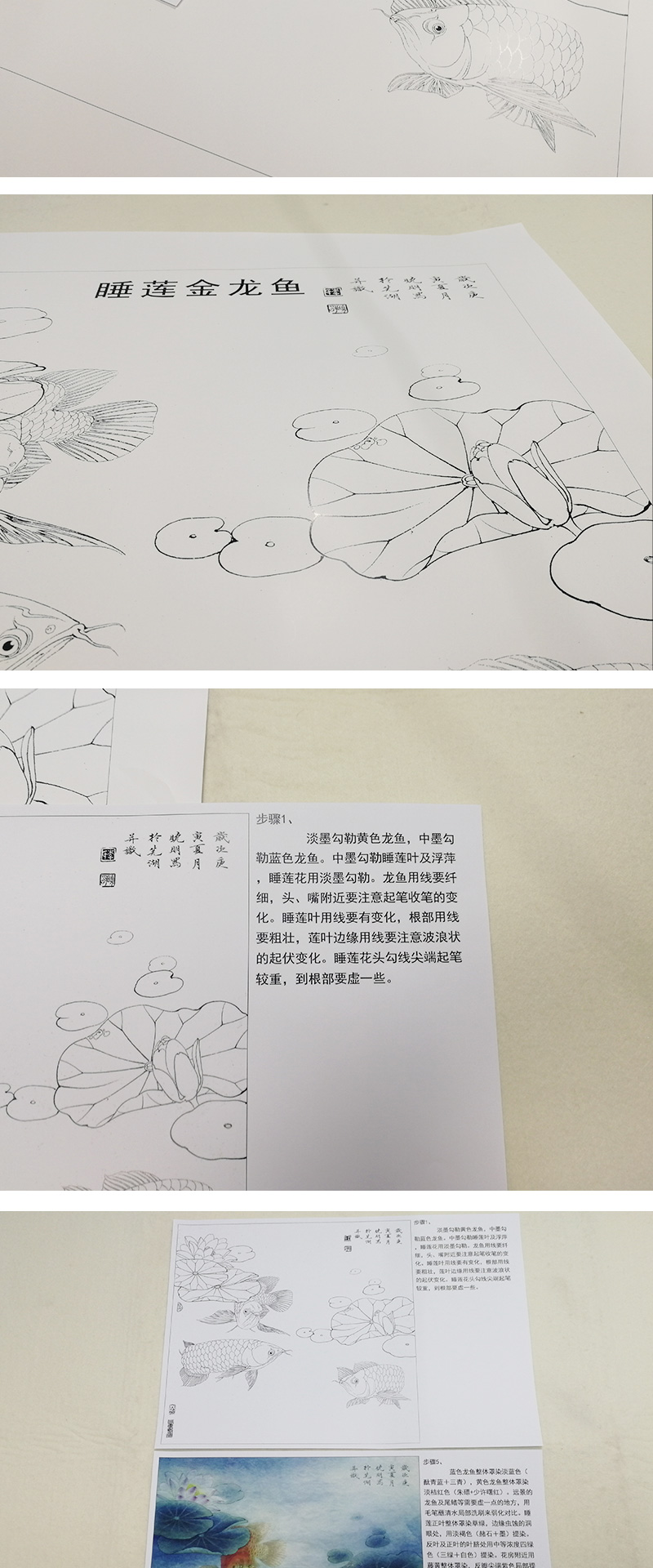 【有步骤、大彩图】李晓明工笔画白描底稿斗方《睡莲金龙鱼》荷花临摹勾线花鸟线稿KB29