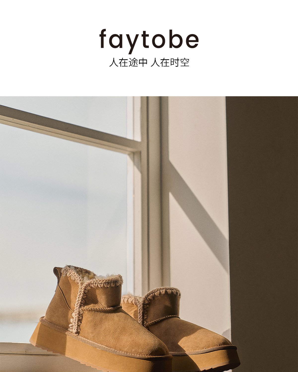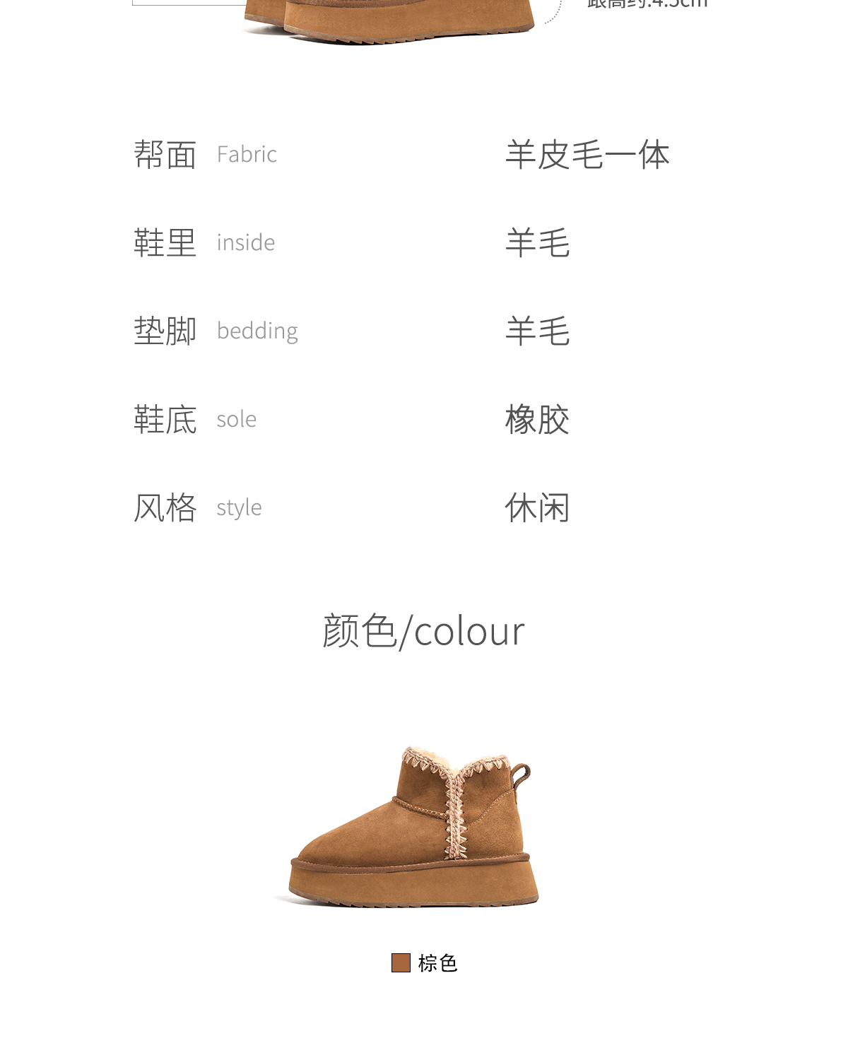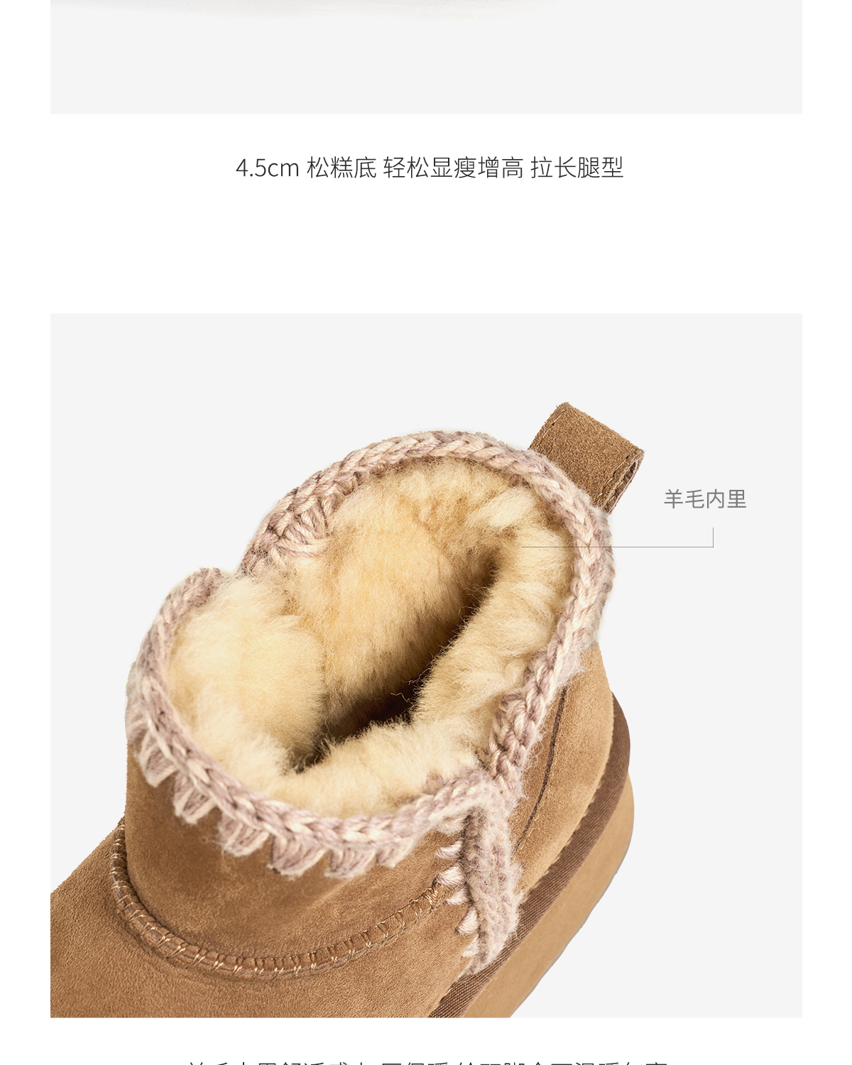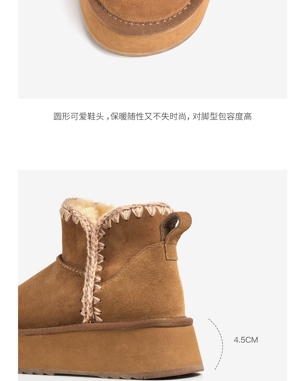 faytobe绒绒编织雪地靴冬羊皮毛一体厚底靴保暖刺绣增高短靴