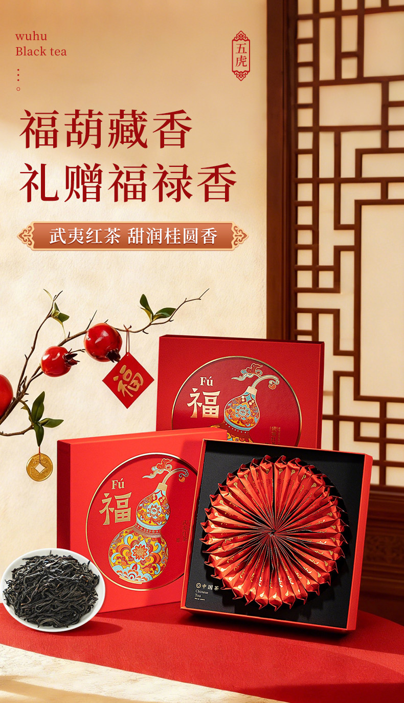 【马年】茶叶 红茶 武夷红茶 马年礼盒 红茶 圆方印 马年礼盒 茶饮 五虎 160g