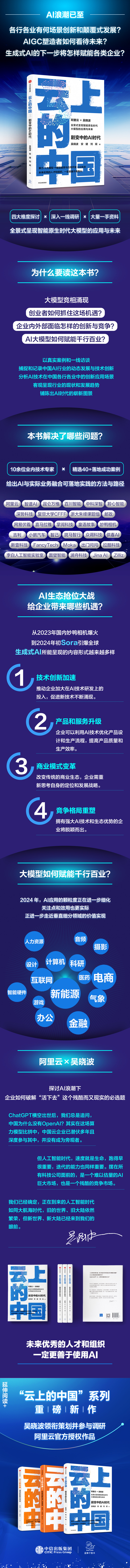 ◎“云上的中国”系列重磅新作。吴晓波领衔策划并参与调研,阿里云官方授权作品。10余位尖技术专家、40余家行业先企业,四大维度探讨、深入一线调研大量一手资料,全景式呈现智能原生时代大模型的应用与未来◎千行百业×标杆案例。本书从AIGC创新企业、传统产业龙头企业、AI产业链上下游三大细分范畴中着重挑选了40余家知名企业,例如百川智能、昆仑万维、智谱AI、澜舟科技、生数科技、面壁智能、小鹏汽车、网易伏羲、喜马拉雅、中科深智、深势科技、复旦大学智能计算平台CFFF、邮政等,可以分别从计算机、互联网、医药、设计、电商、游戏、音频、金融、智能驾驶等领域提供更新、更真实的一线实践思路与感悟,对各行各业均有指导意义和启发性。