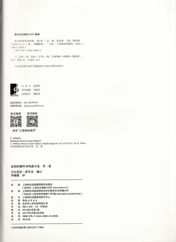 舒伯特钢琴奏鸣曲全集(第二卷)(中外文对照)
