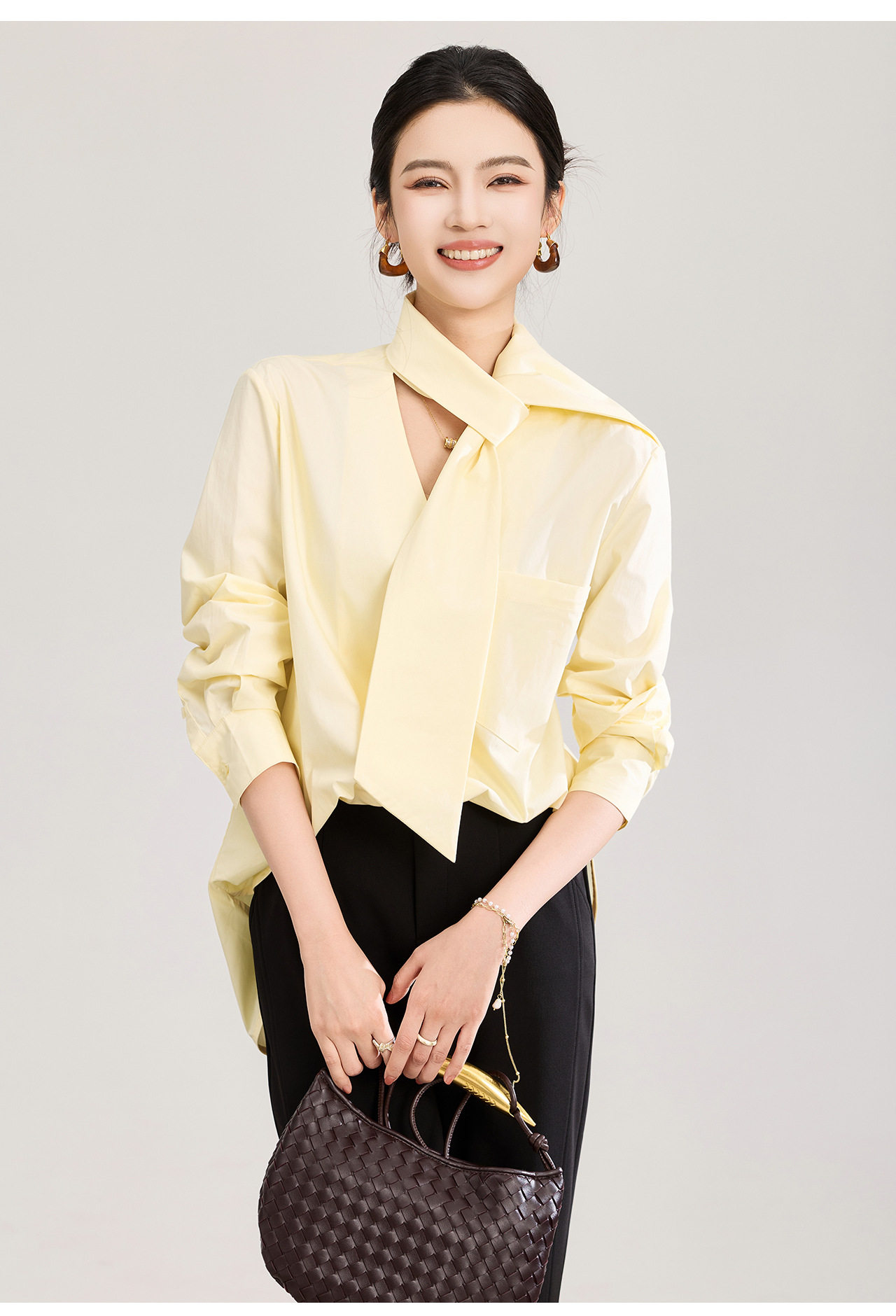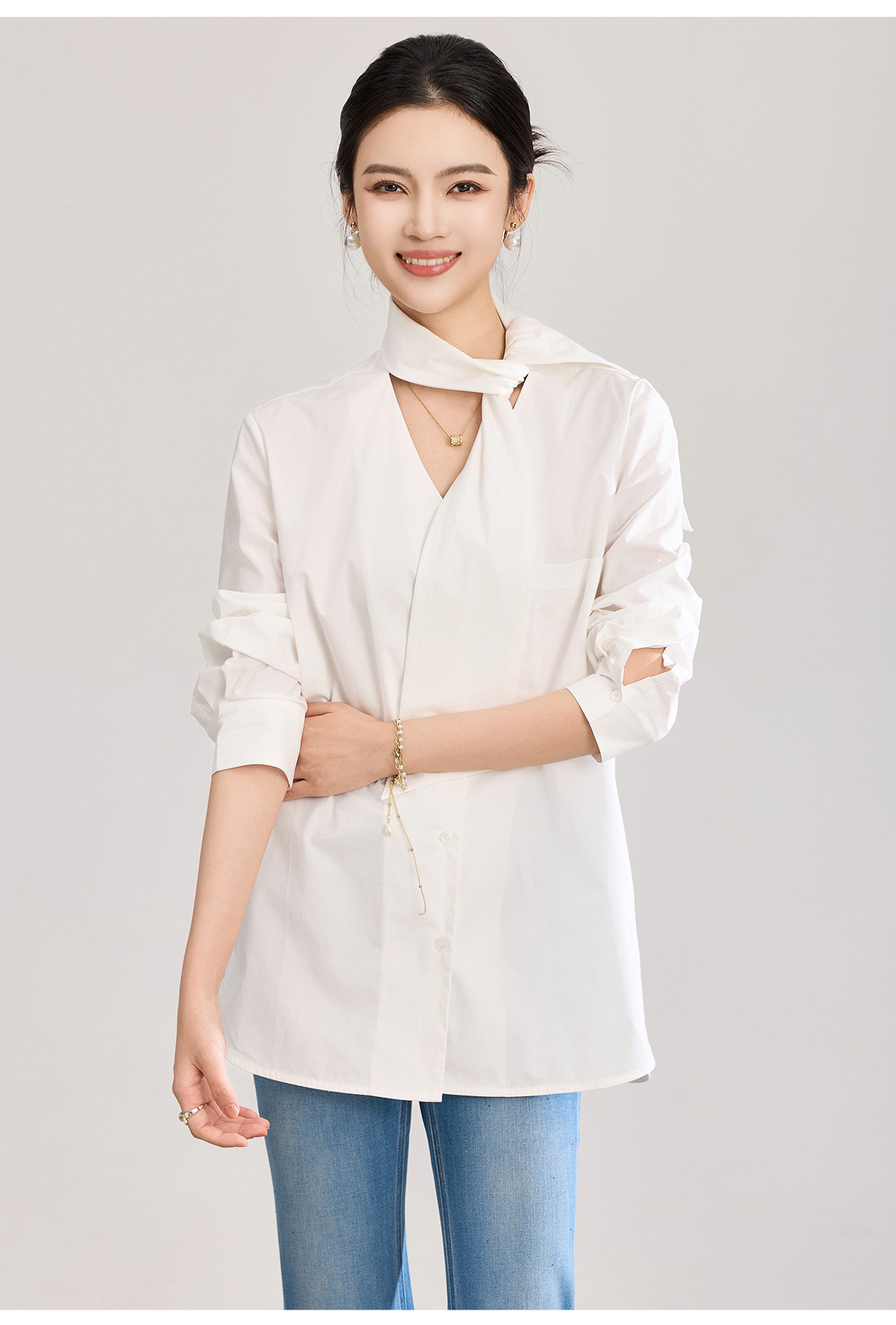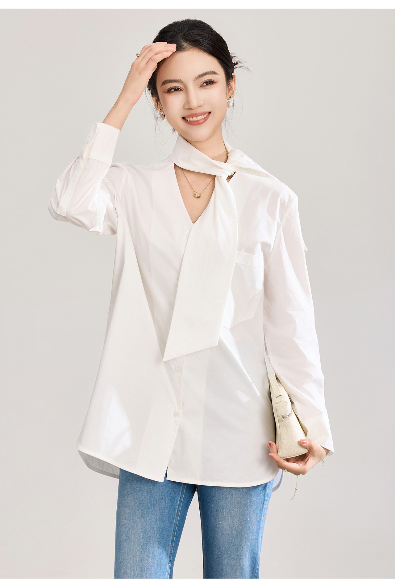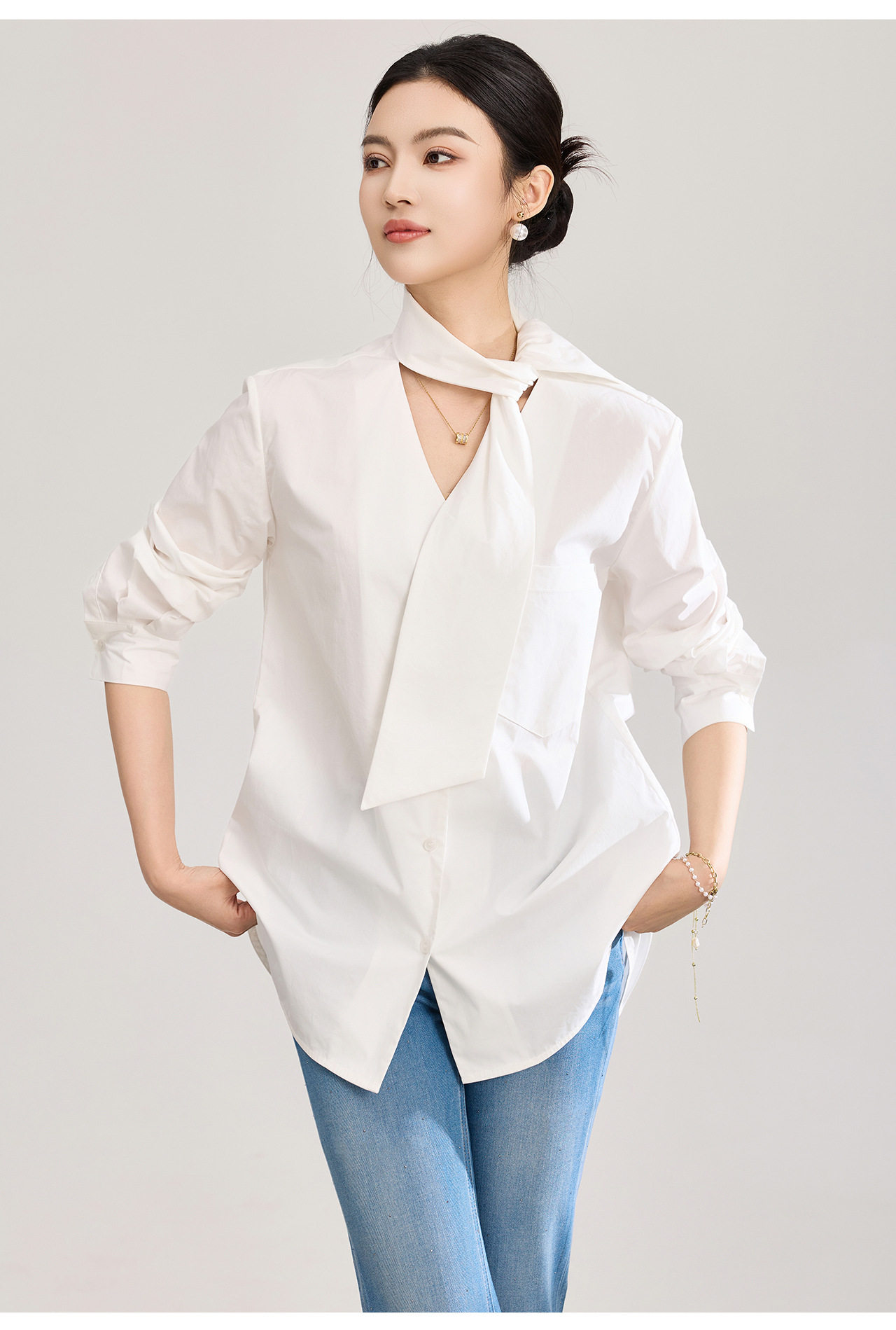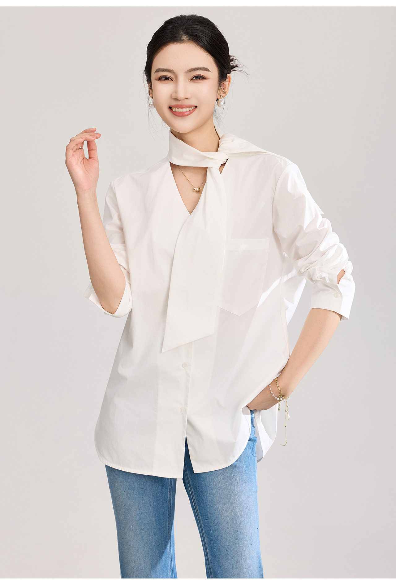 「高货wl」全新升级【铂金会员257/天猫339/差价82】(11317)洛诗琳法式纯棉慵懒宽松衬衫2026春季新款飘带V领上衣