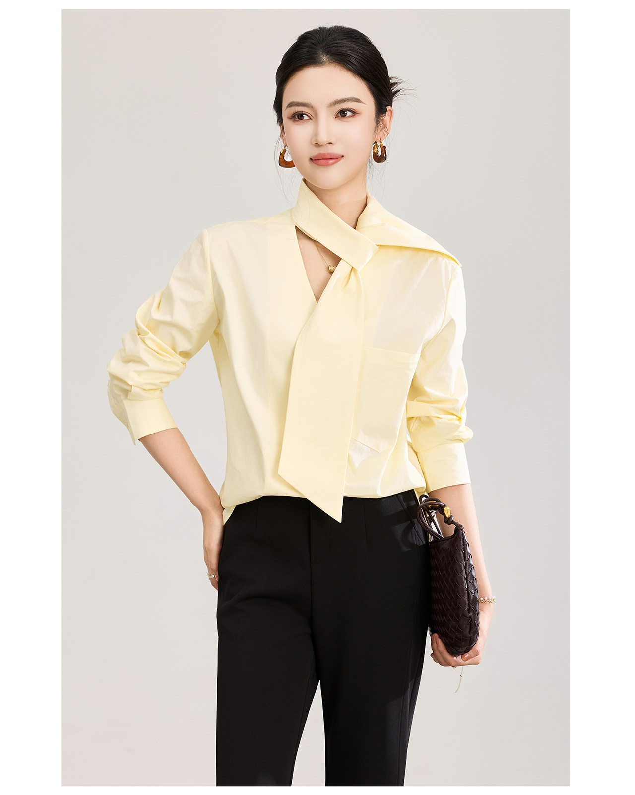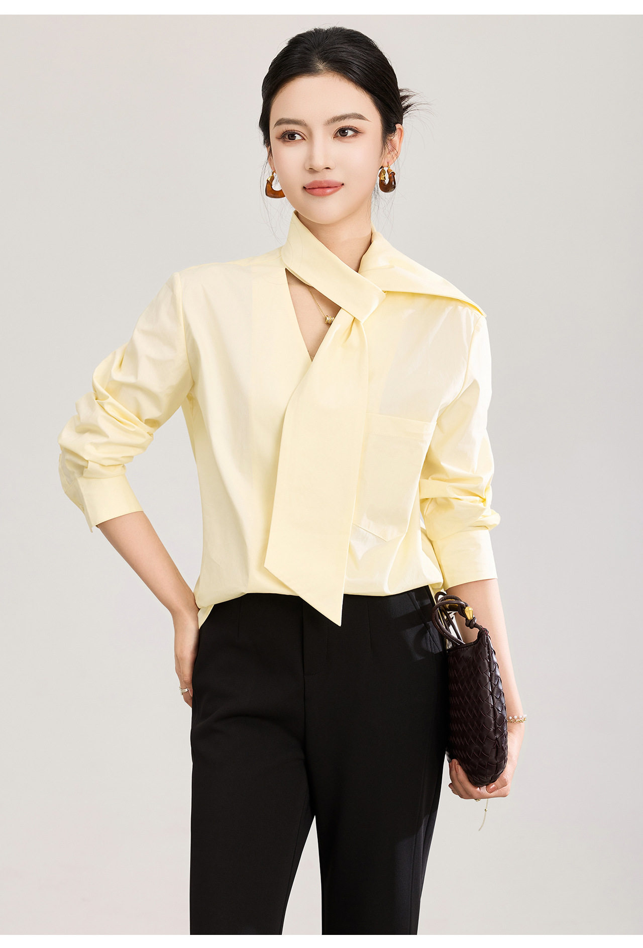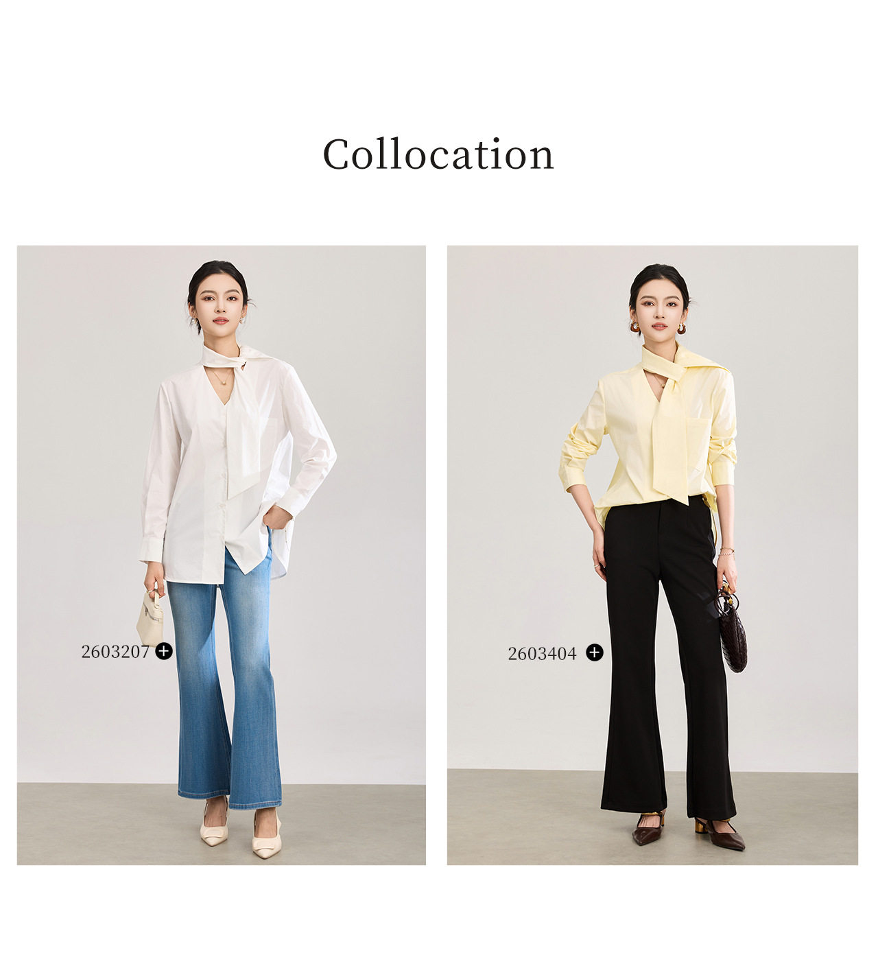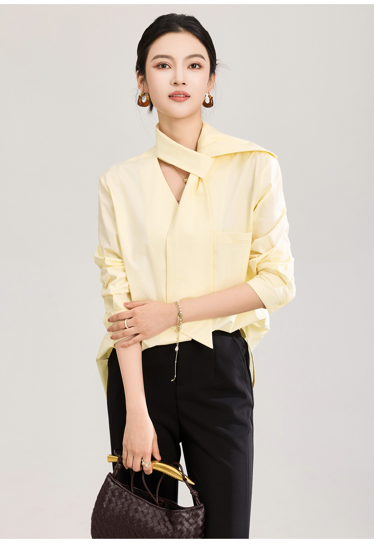 「高货wl」全新升级【铂金会员257/天猫339/差价82】(11317)洛诗琳法式纯棉慵懒宽松衬衫2026春季新款飘带V领上衣