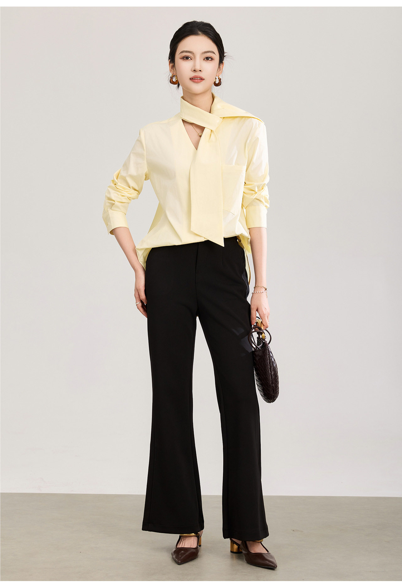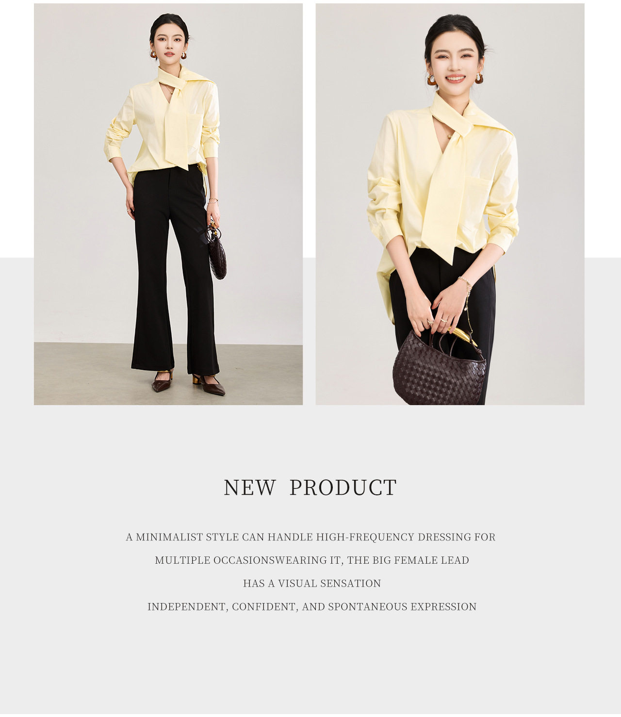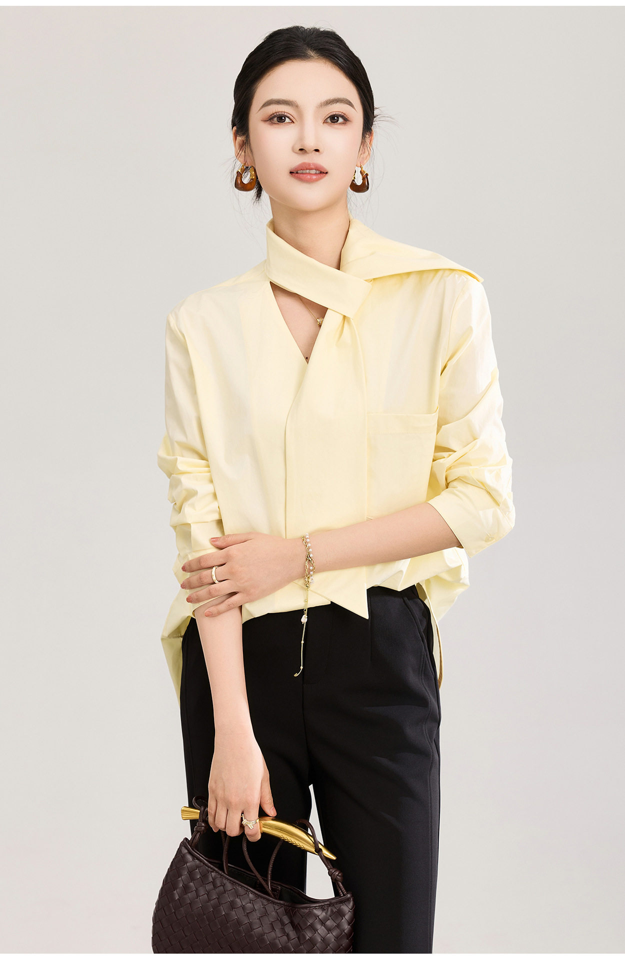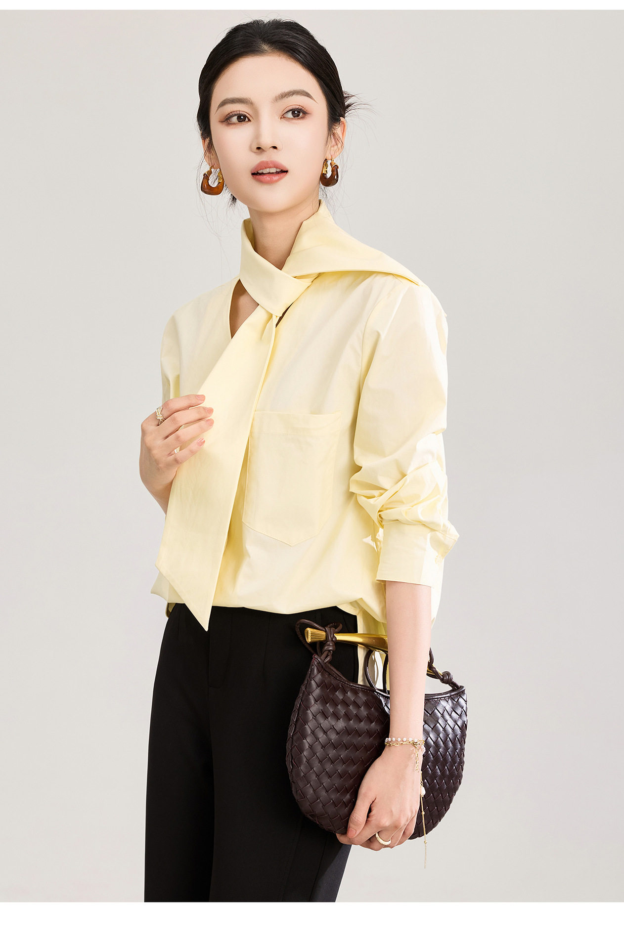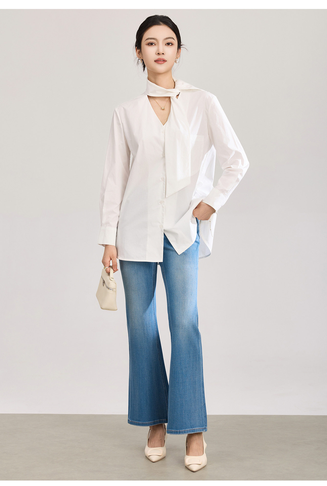 「高货wl」全新升级【铂金会员257/天猫339/差价82】(11317)洛诗琳法式纯棉慵懒宽松衬衫2026春季新款飘带V领上衣