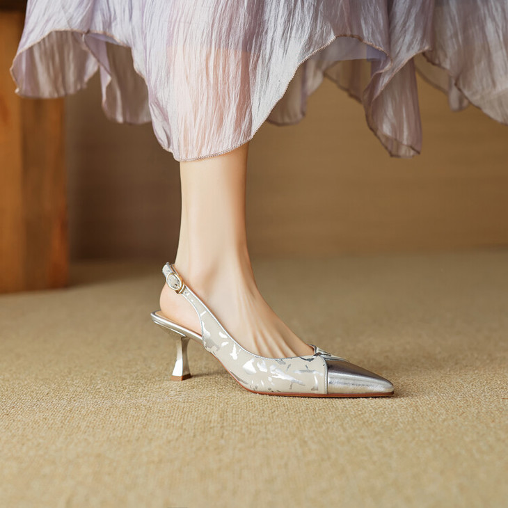 【预售5天】法式小香风拼色包头凉鞋女春夏款高跟鞋真皮尖头气质细跟后空单鞋168XY&168742