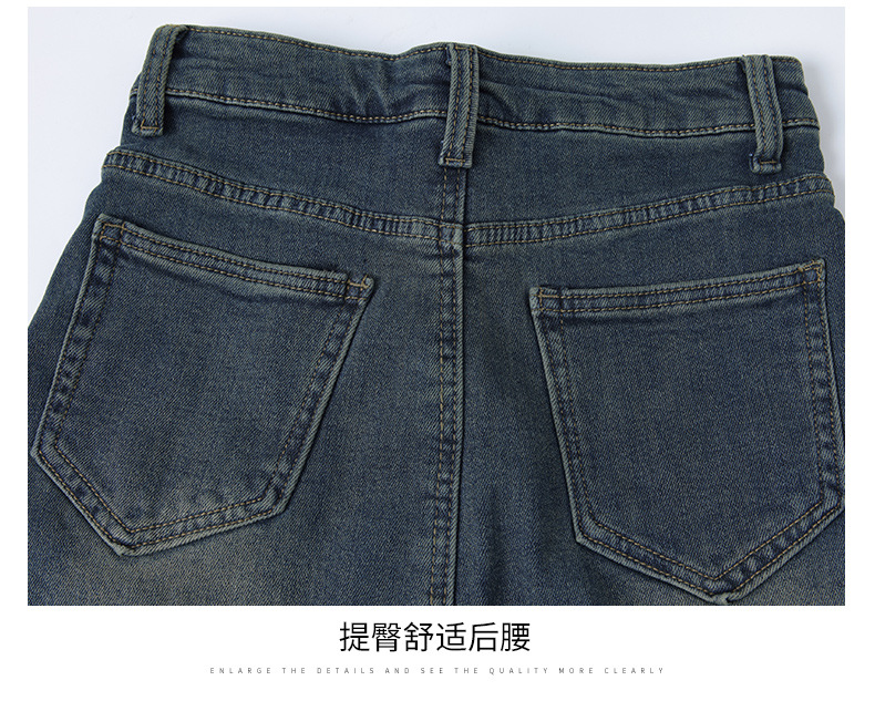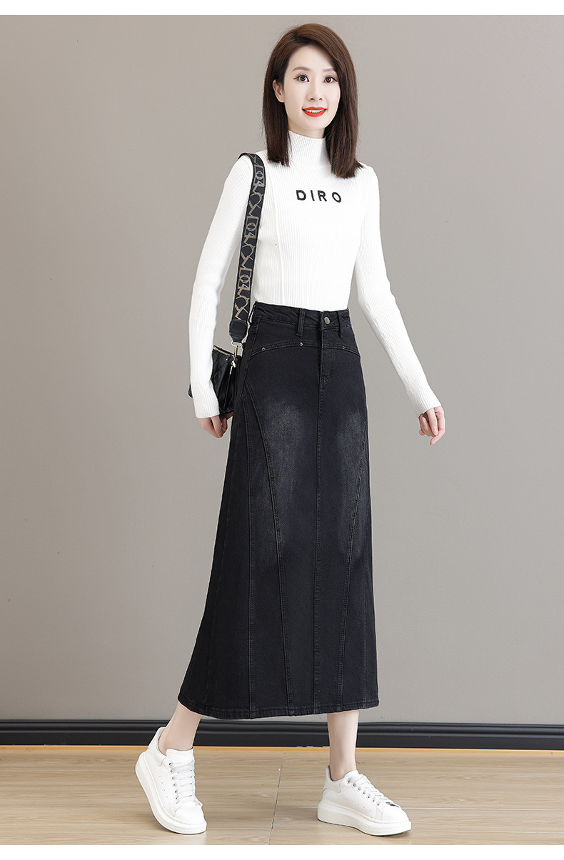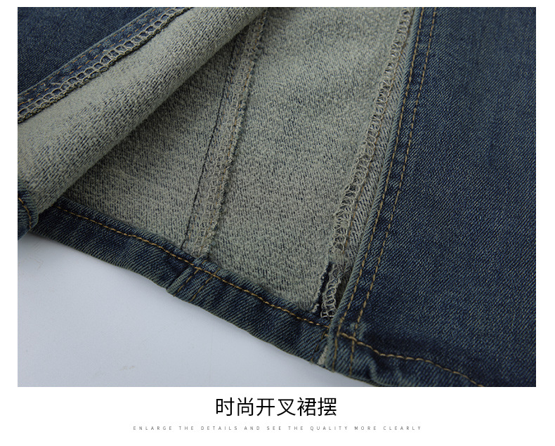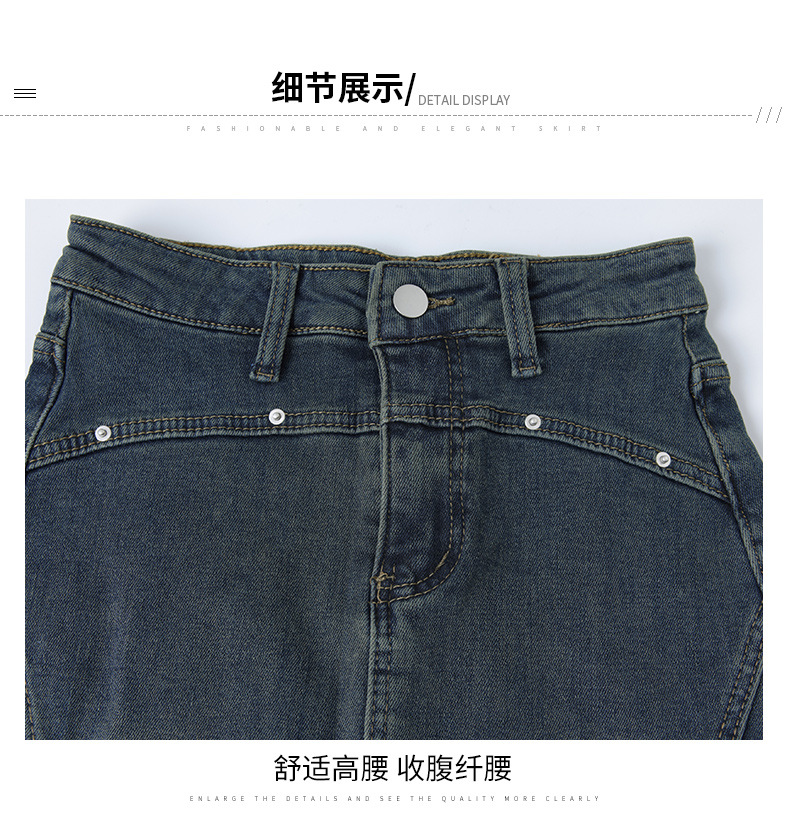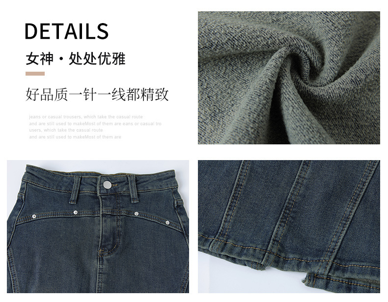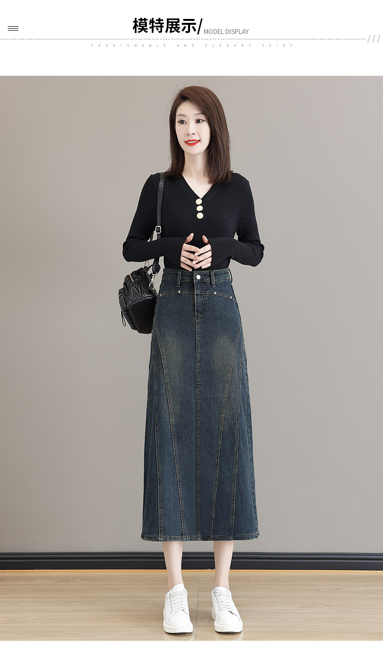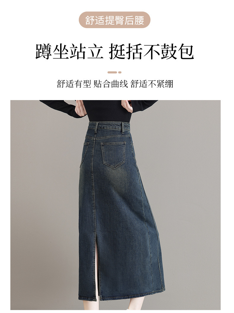 KKM-563-63复古风修身半身裙女2023秋冬新款a字中长款高腰加绒加厚牛仔a字裙 商品图4