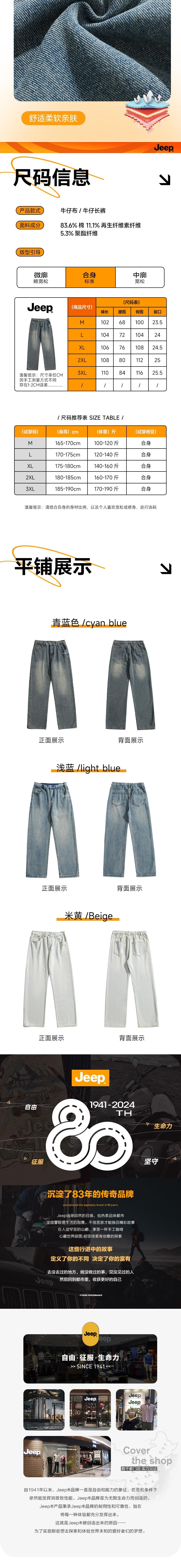 JEEP吉普 通用牛仔长裤 P85AMWN301