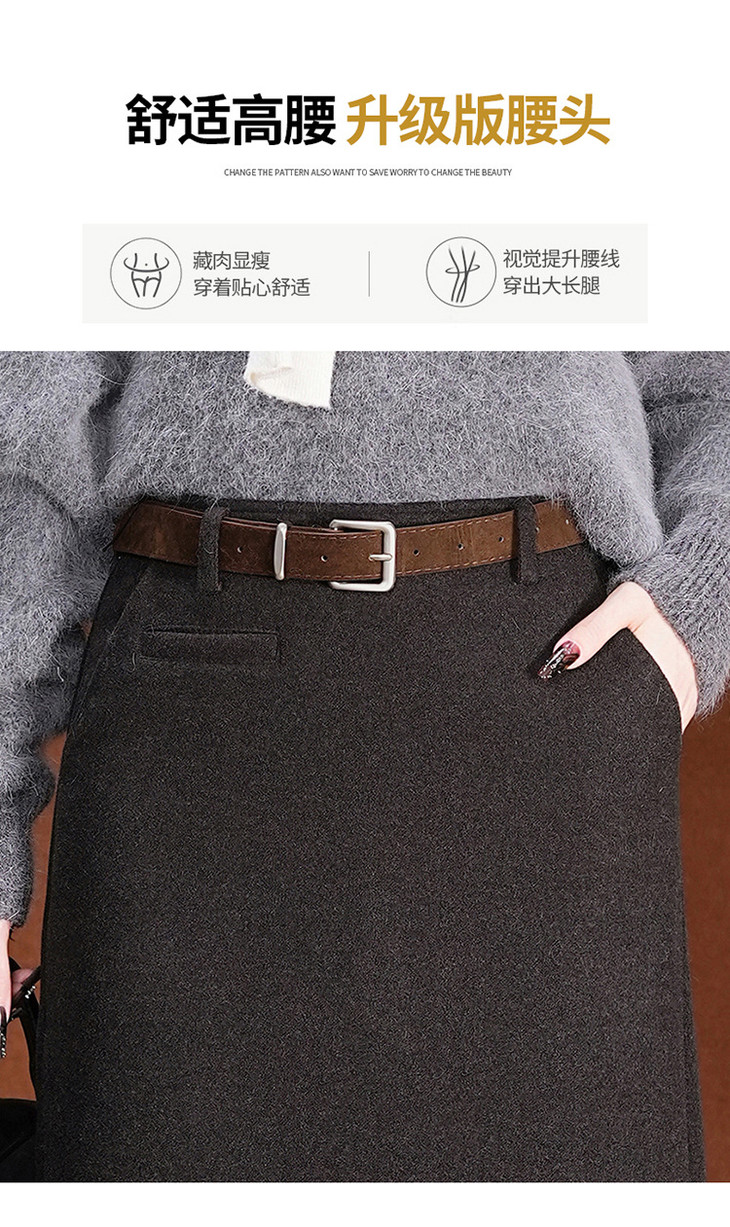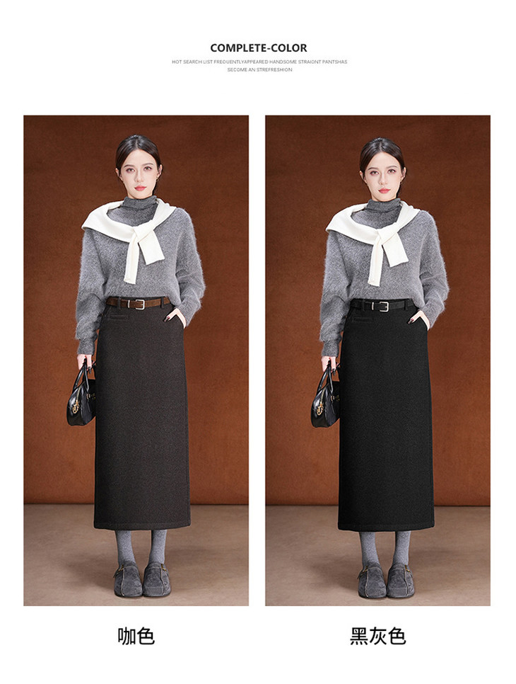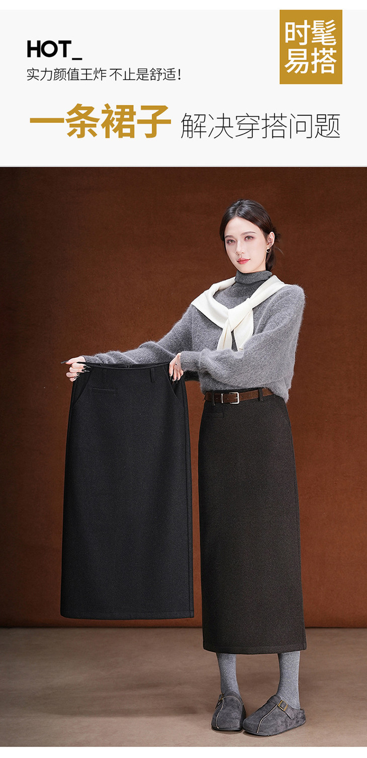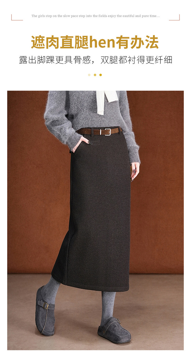 毛呢加绒直筒裙,中长款高腰开叉包臀一步裙MYX-KDFY-01259-L
