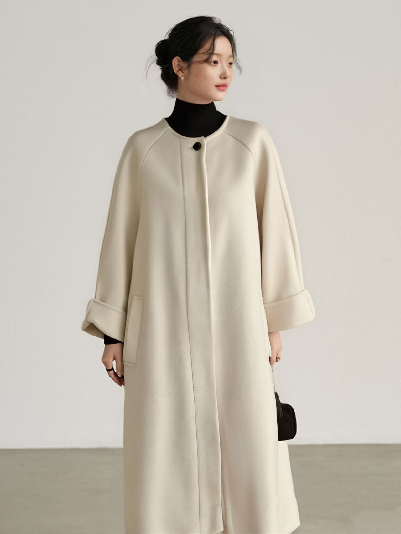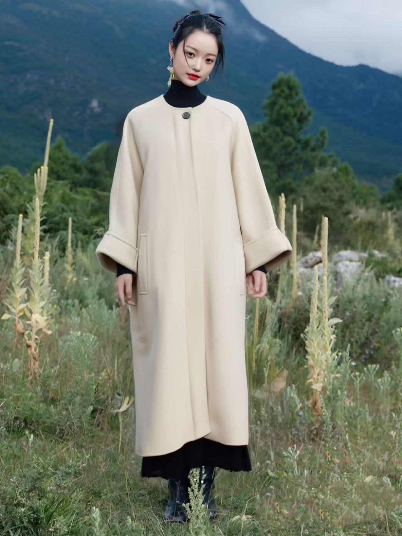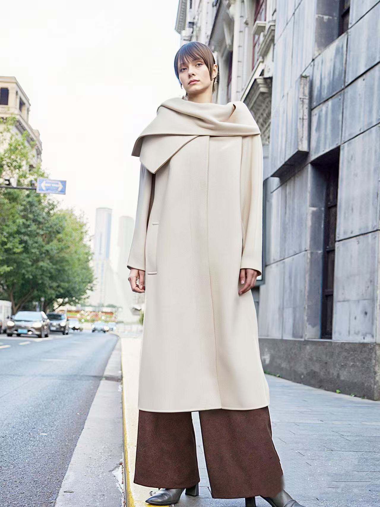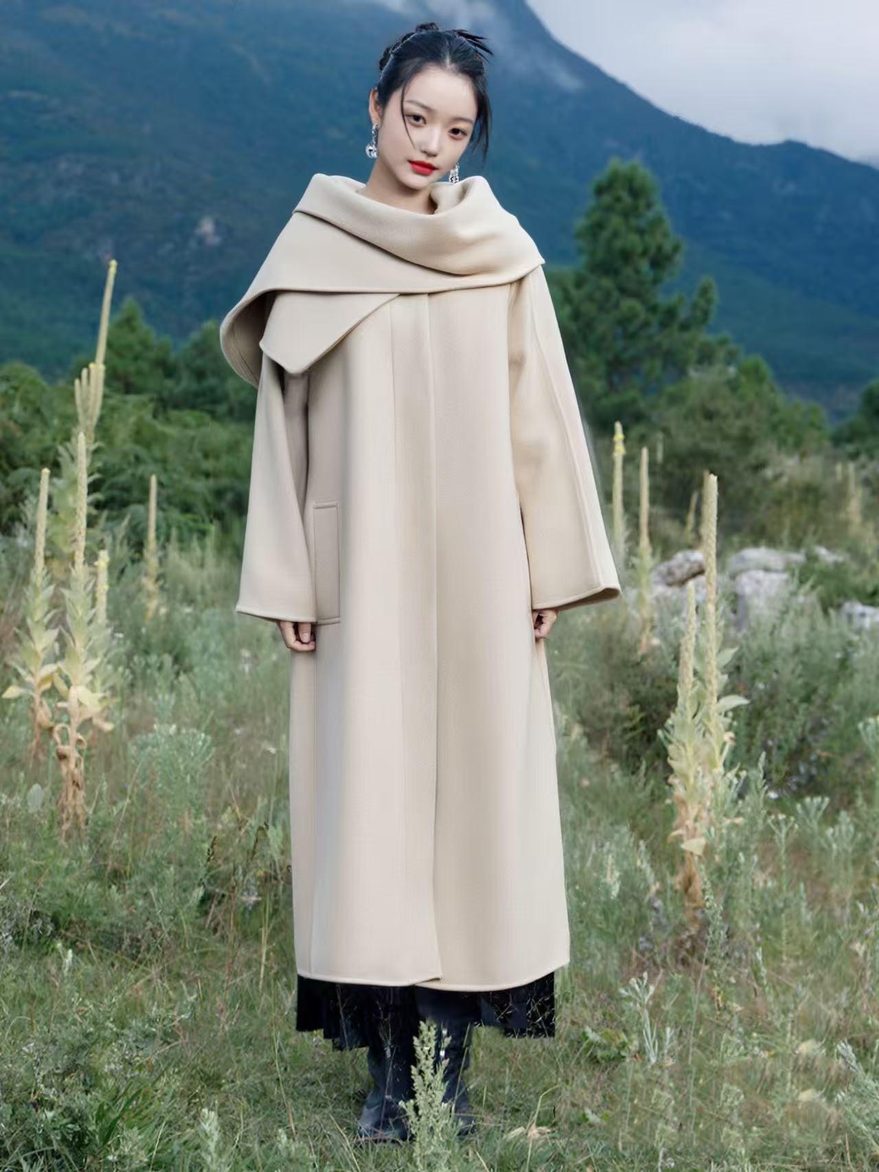 【高端系列】手工定制117款100%澳洲超细羊毛围巾可系腰带长款双面尼大衣-喜出
