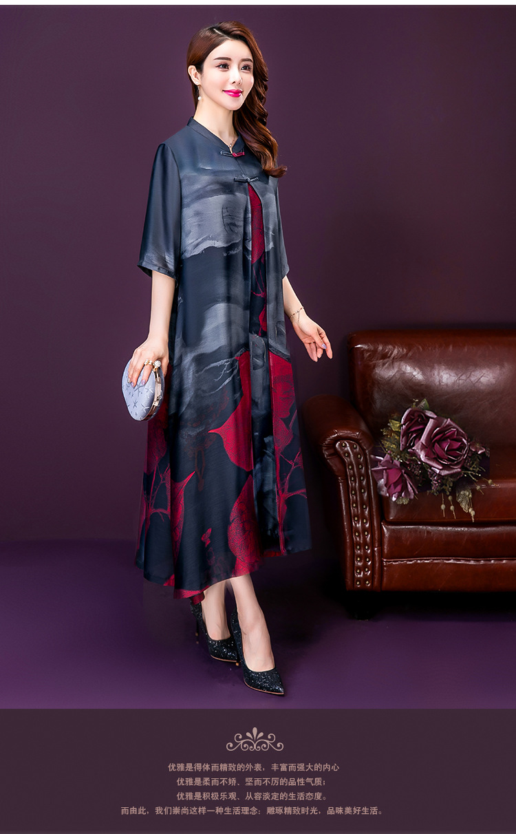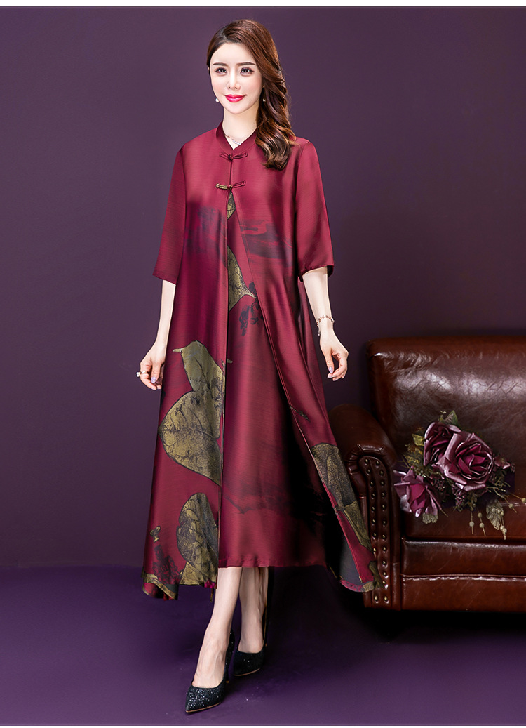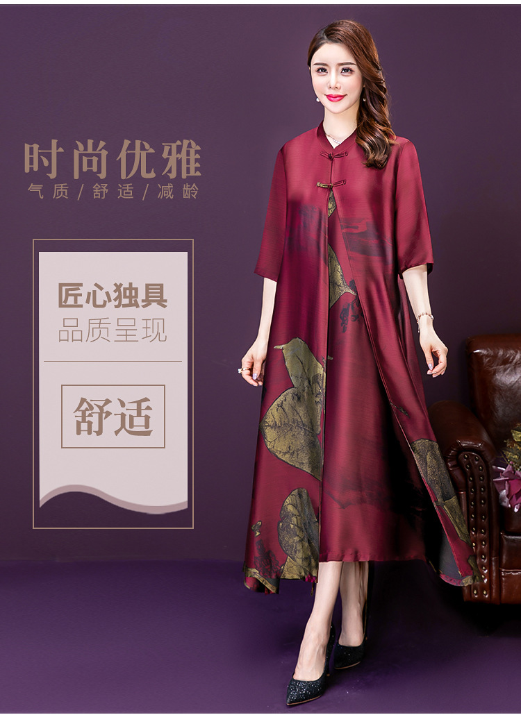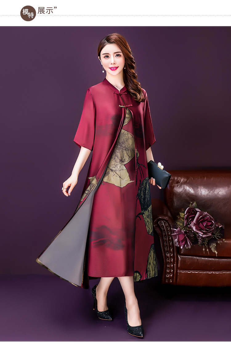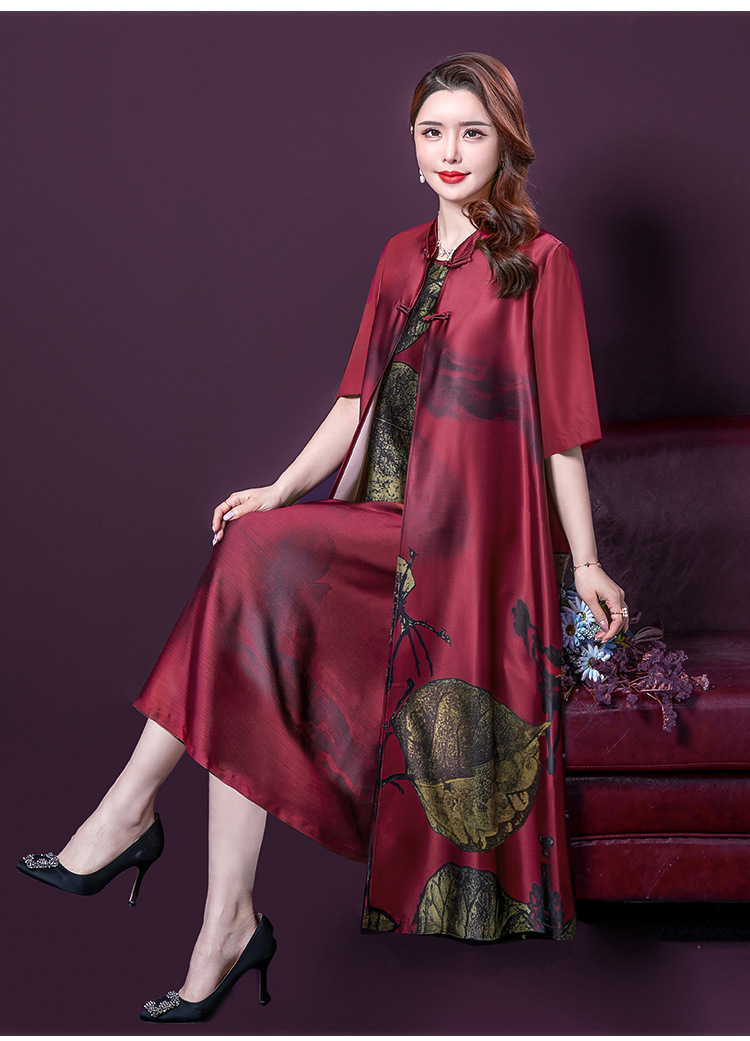 LFJR-8308复古文艺印花大码开衫阔太太中国风优雅两件套