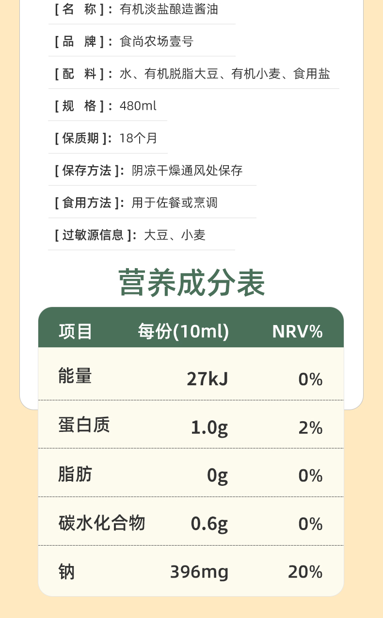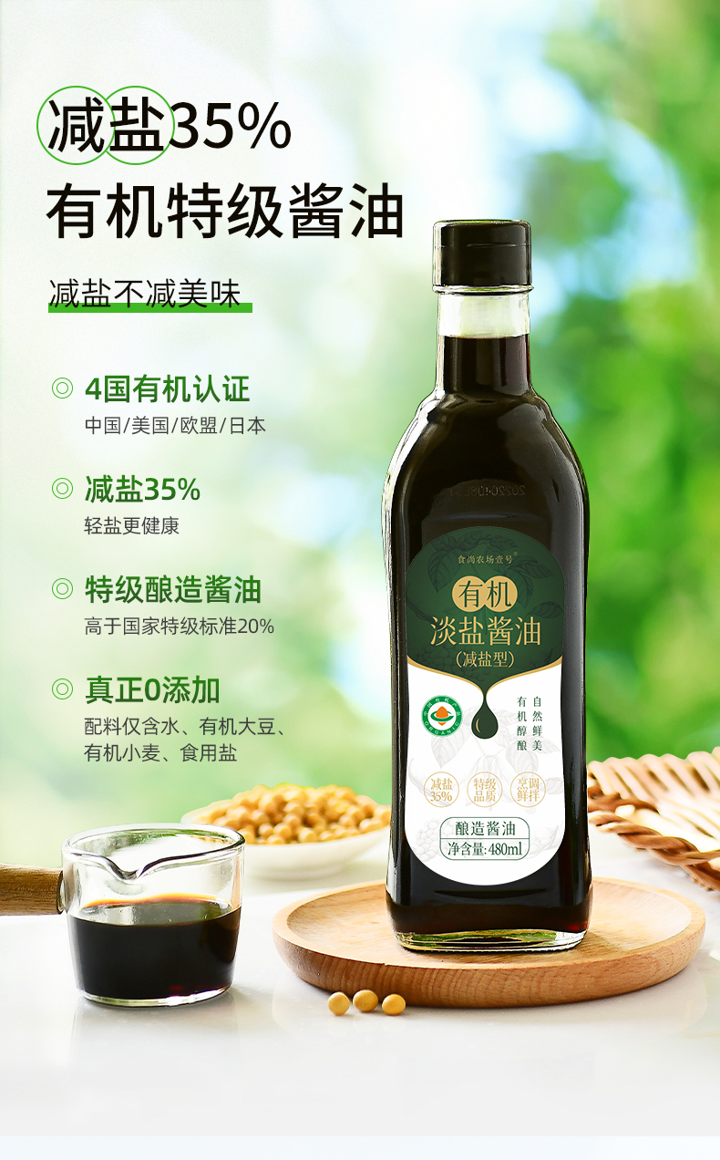 食尚农场有机减盐酱油480ml