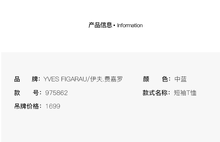 YvesFigarau伊夫·费嘉罗新品休闲短袖T恤975862