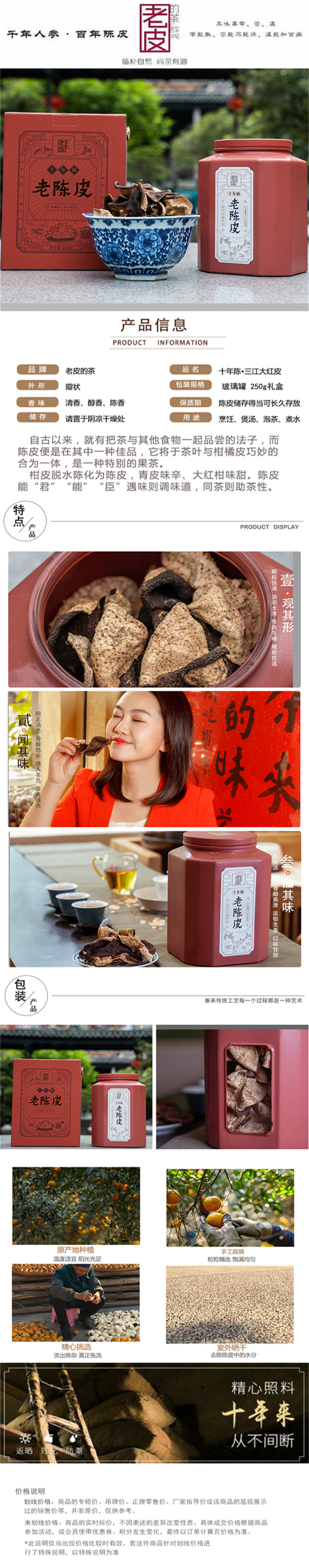 新会 陈皮十年 三江老陈皮干地道新会陈皮正宗广东特产125g