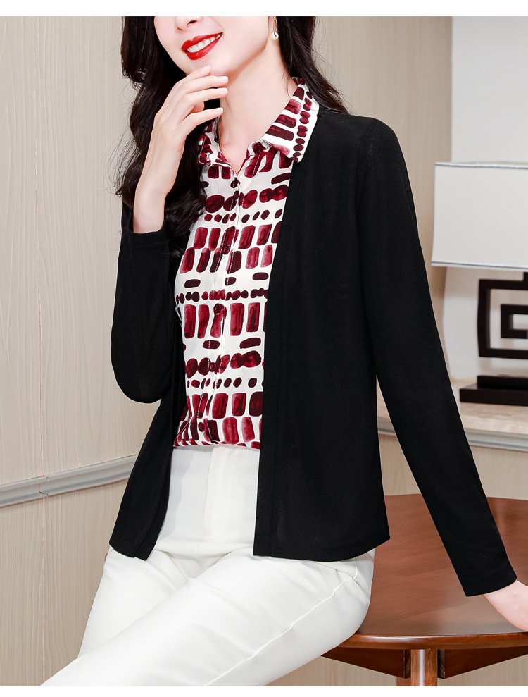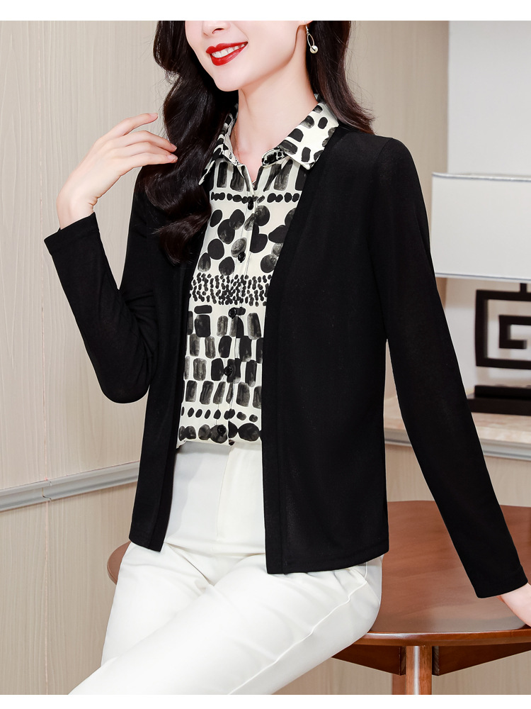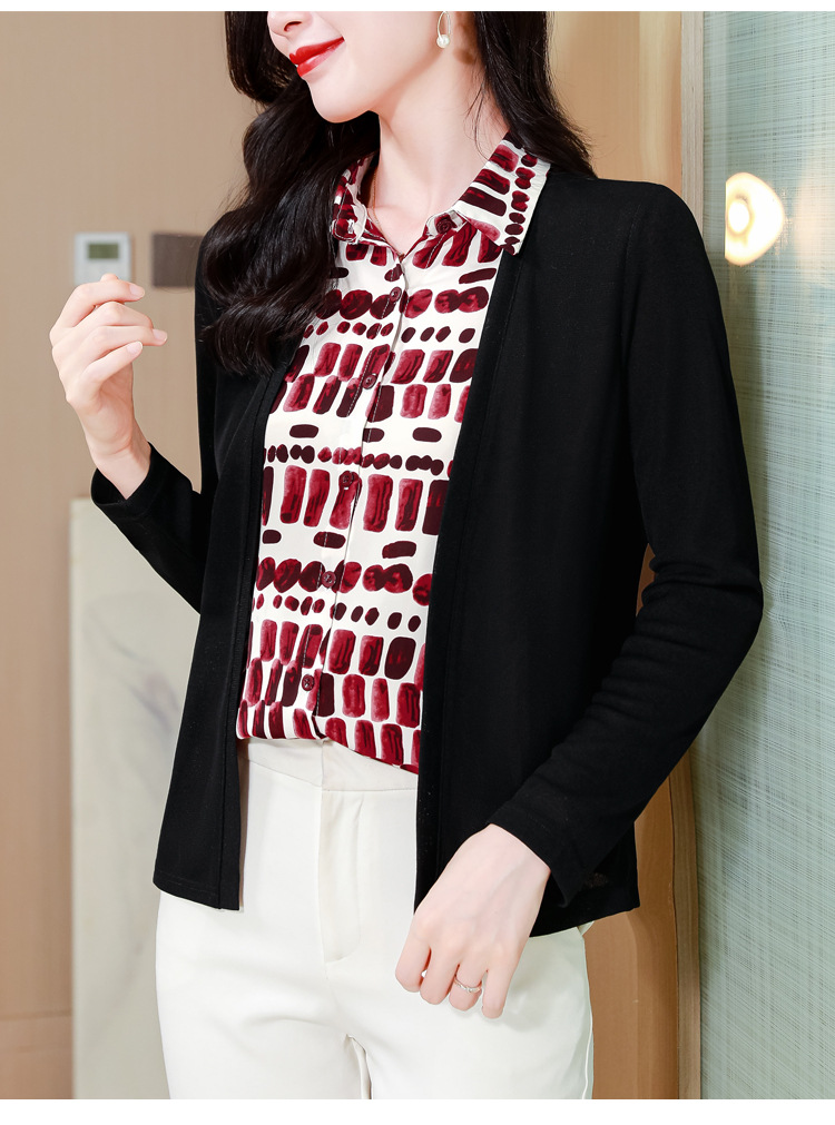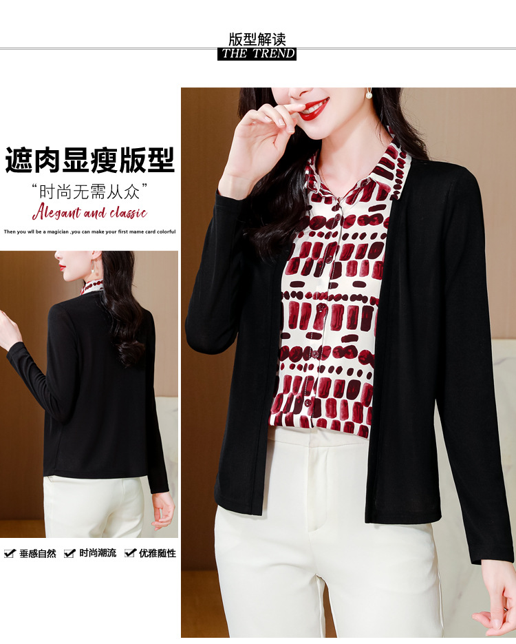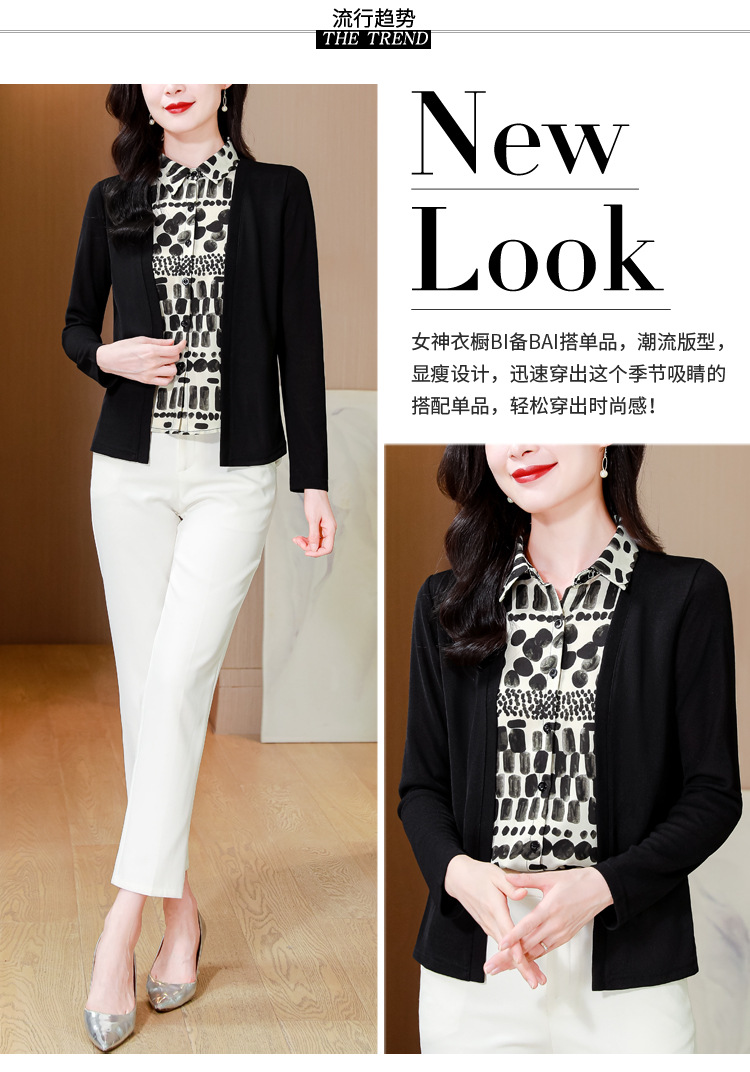 KQL 369H9801时尚假两件开衫针织小衫上衣