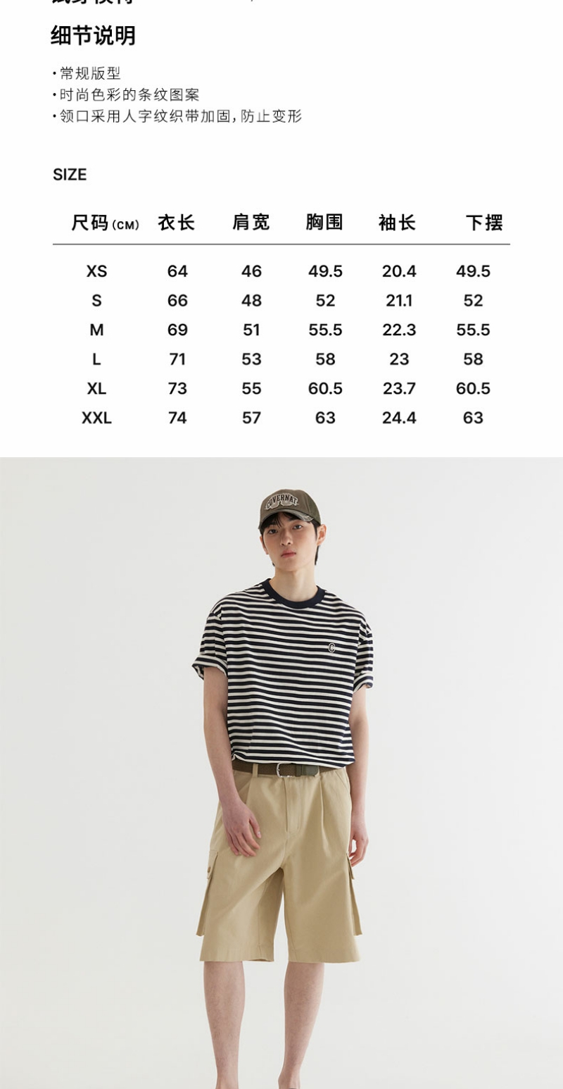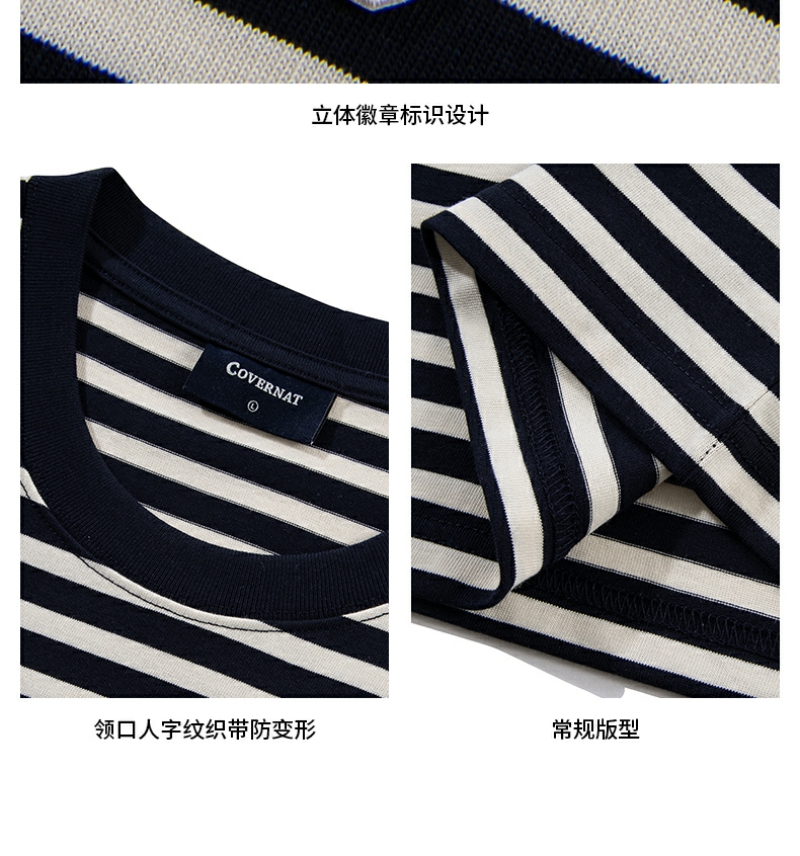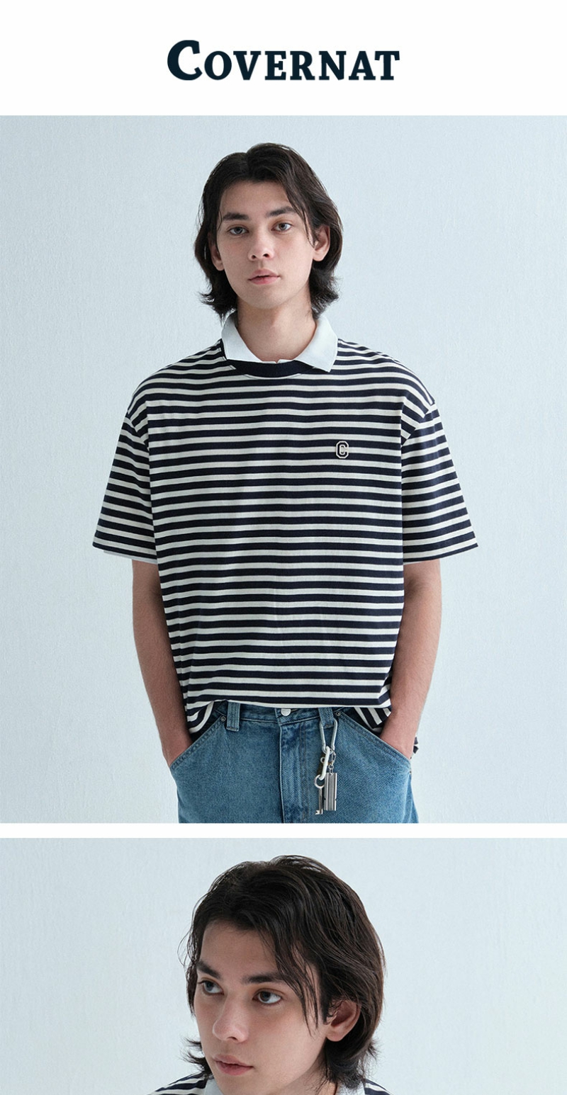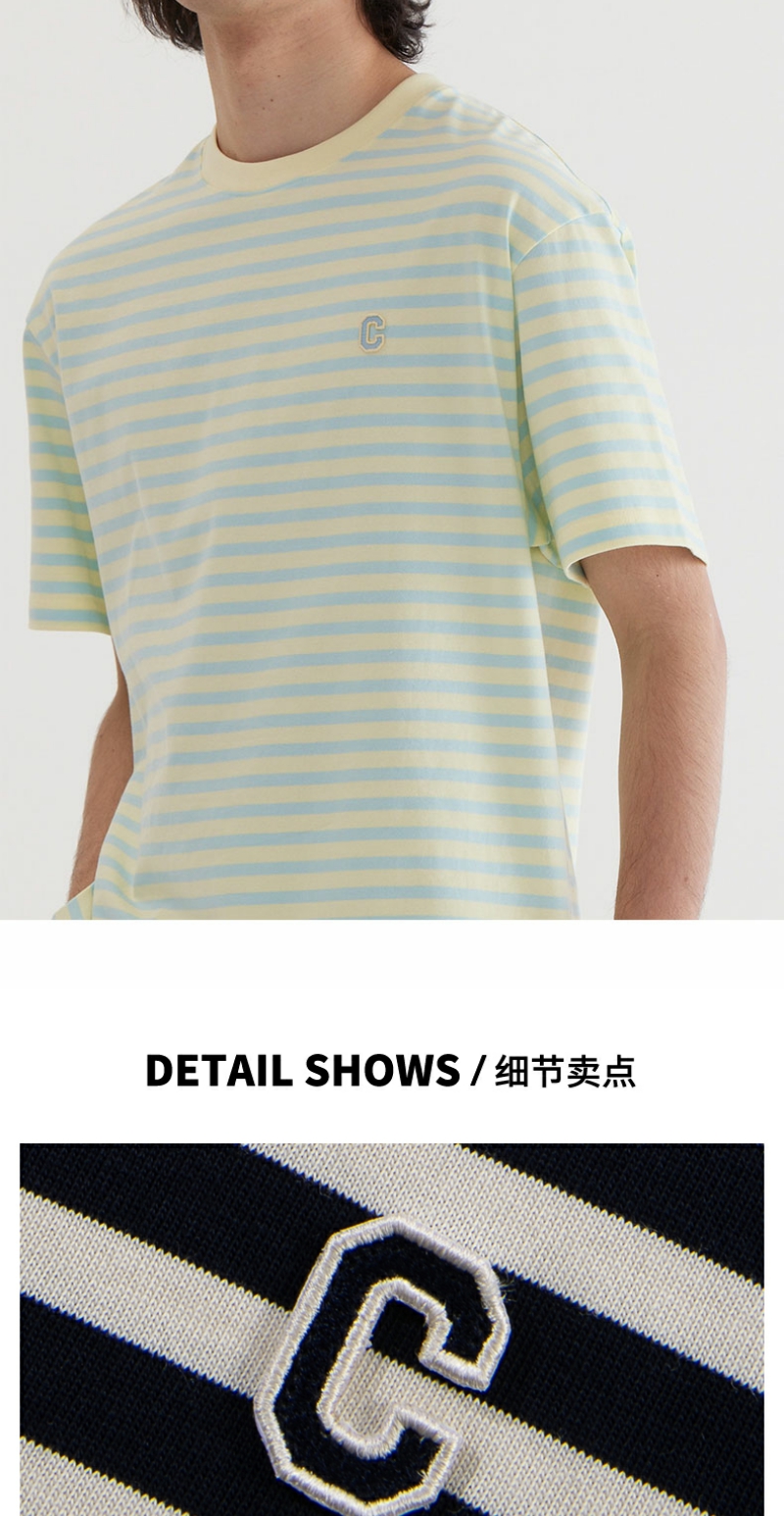 COVERNAT韩国潮牌条纹休闲短袖绿青春活力男女同款2025夏季新CO2502ST35