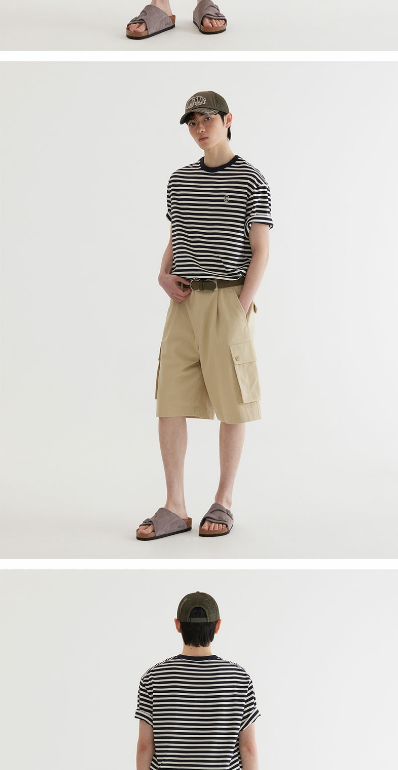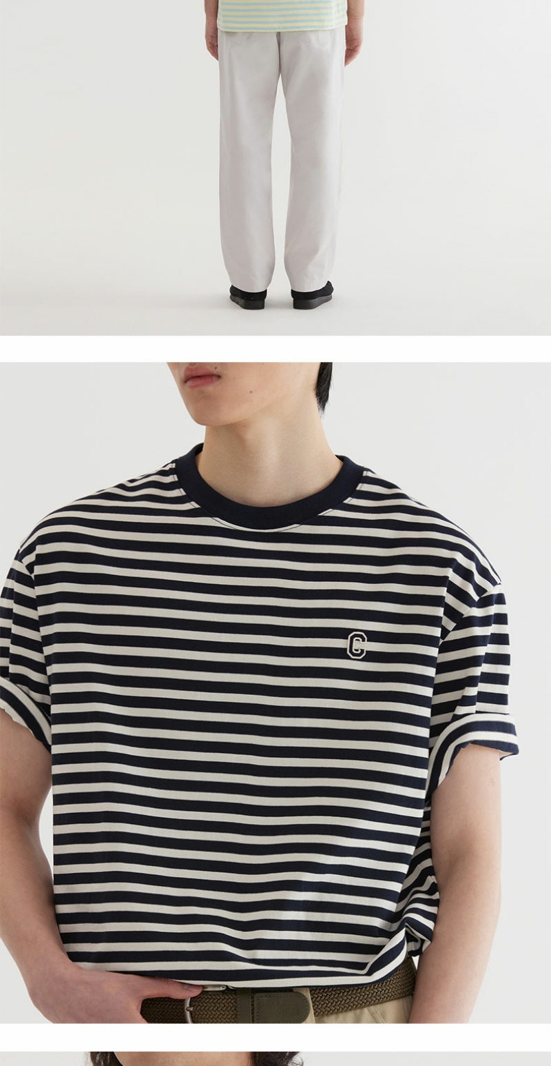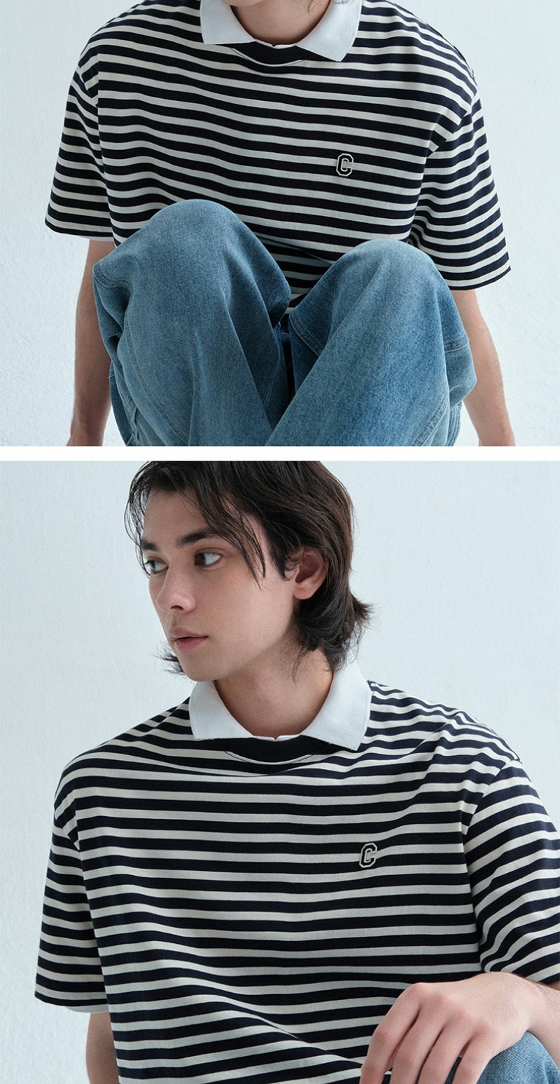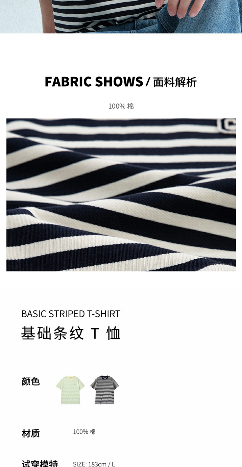 COVERNAT韩国潮牌条纹休闲短袖绿青春活力男女同款2025夏季新CO2502ST35