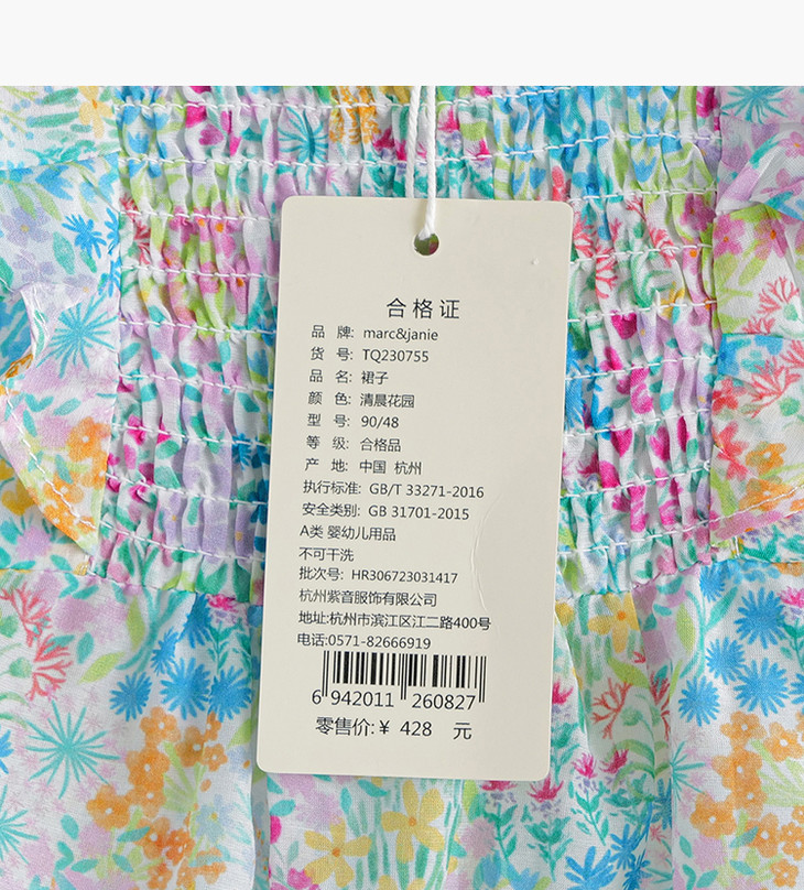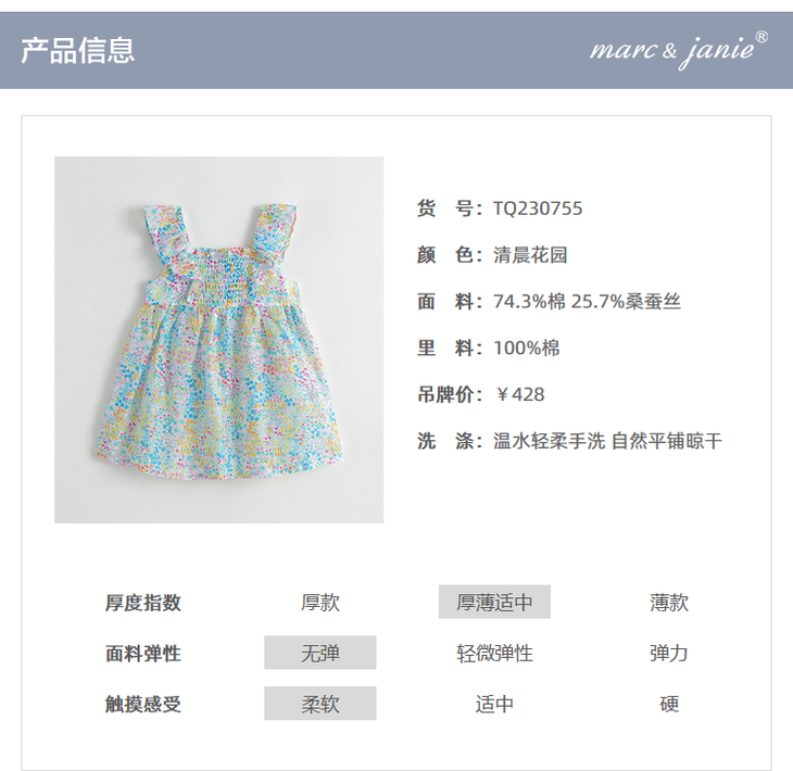马克珍妮夏装新款裙子 女童田园风舒适棉真丝连衣裙230755