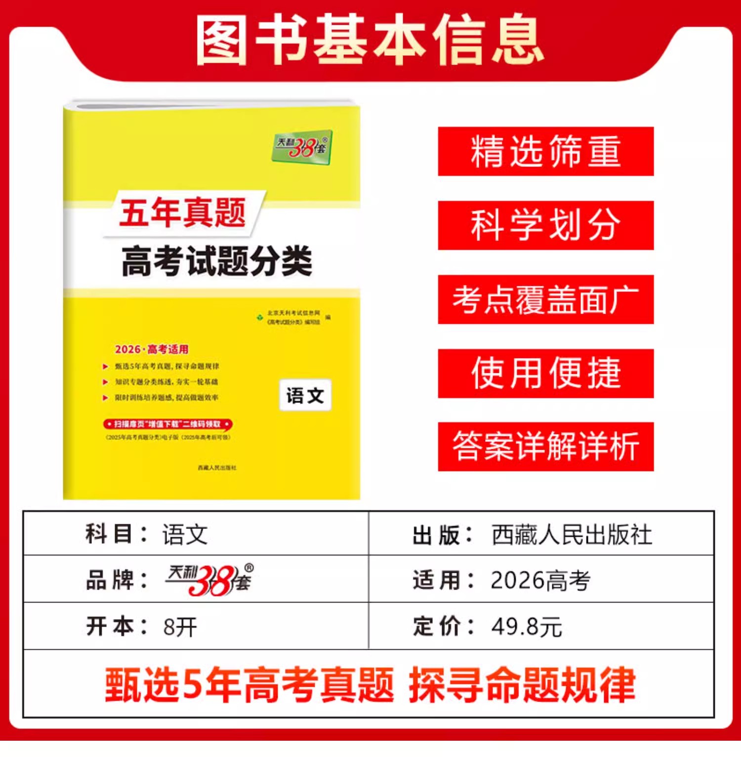 2026高考天利38套五年真题高考试题分类语文数学英语物理化学生物政治历史地理高三总复习