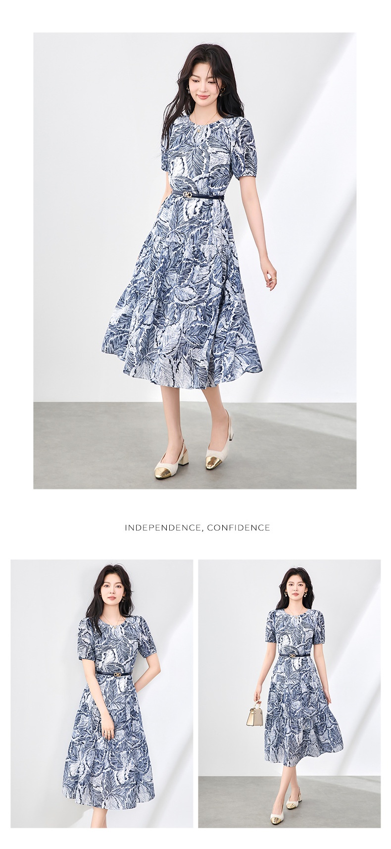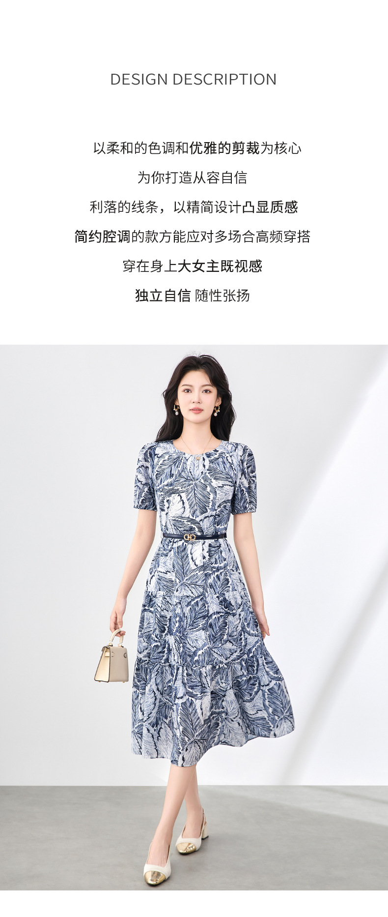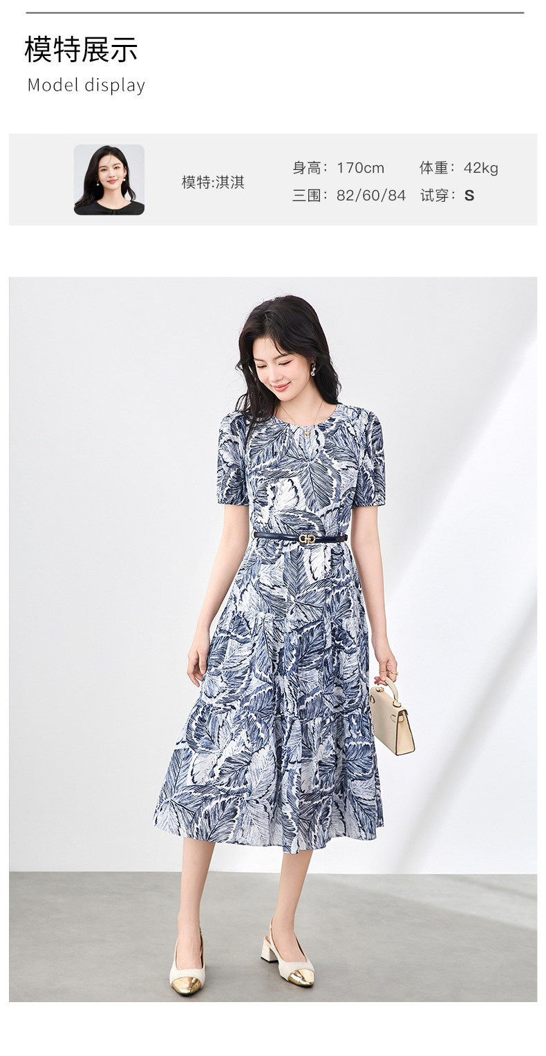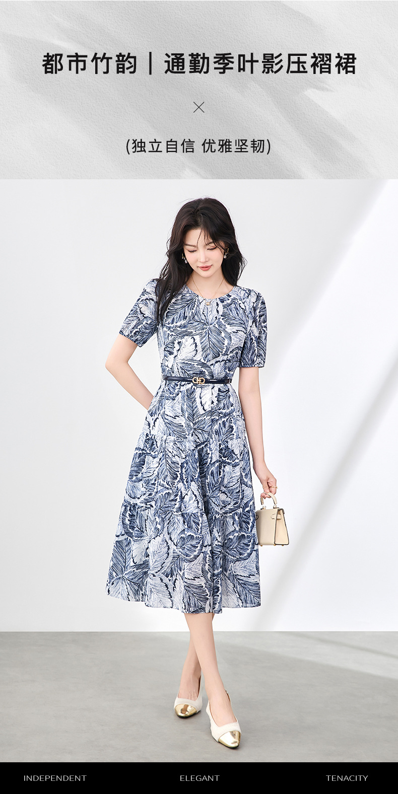 「高货wl」全新升级【铂金会员312/天猫419/差价107】(94733)洛诗琳优雅端庄印花连衣裙2025夏季新款气质圆领收腰A字裙wl