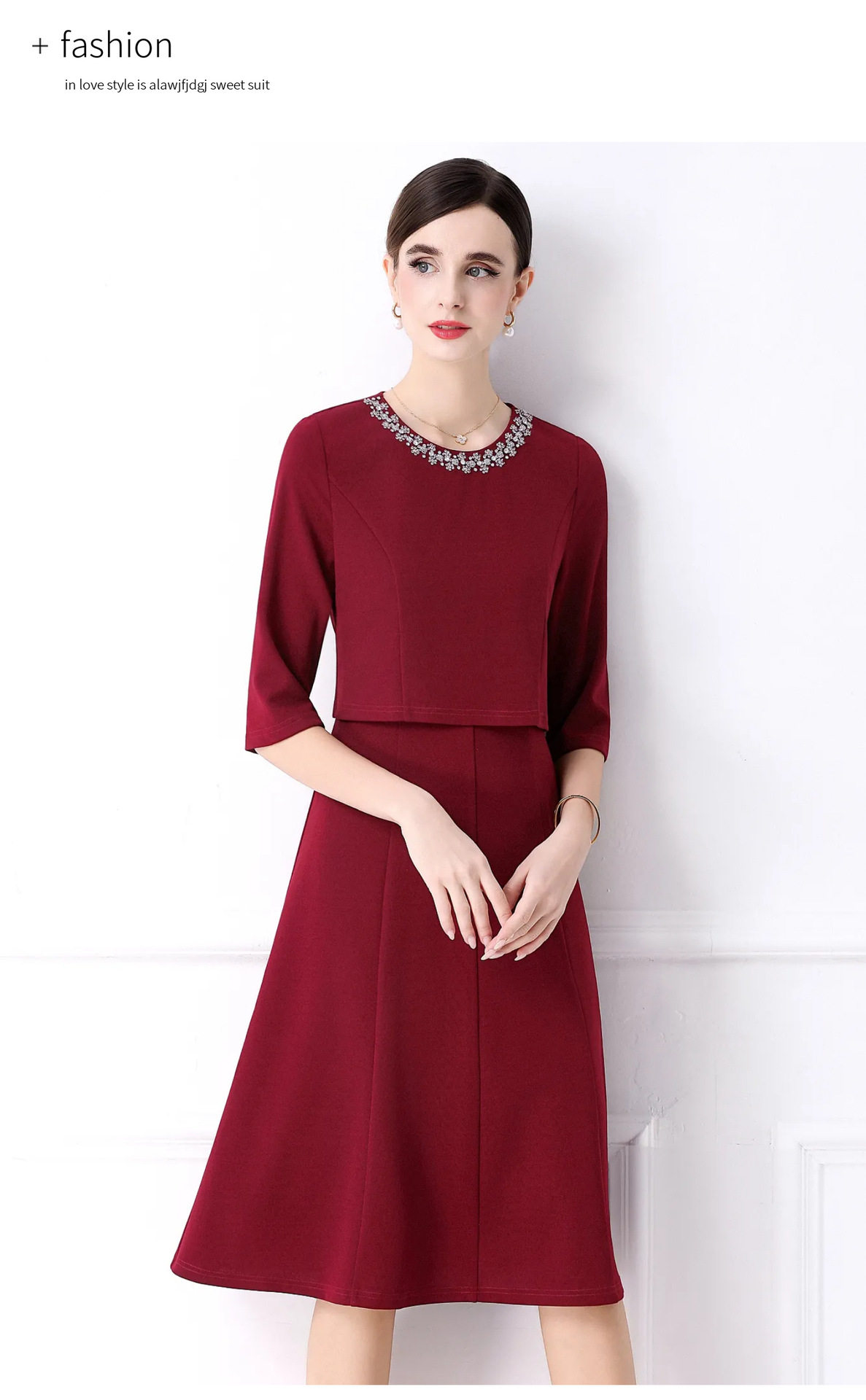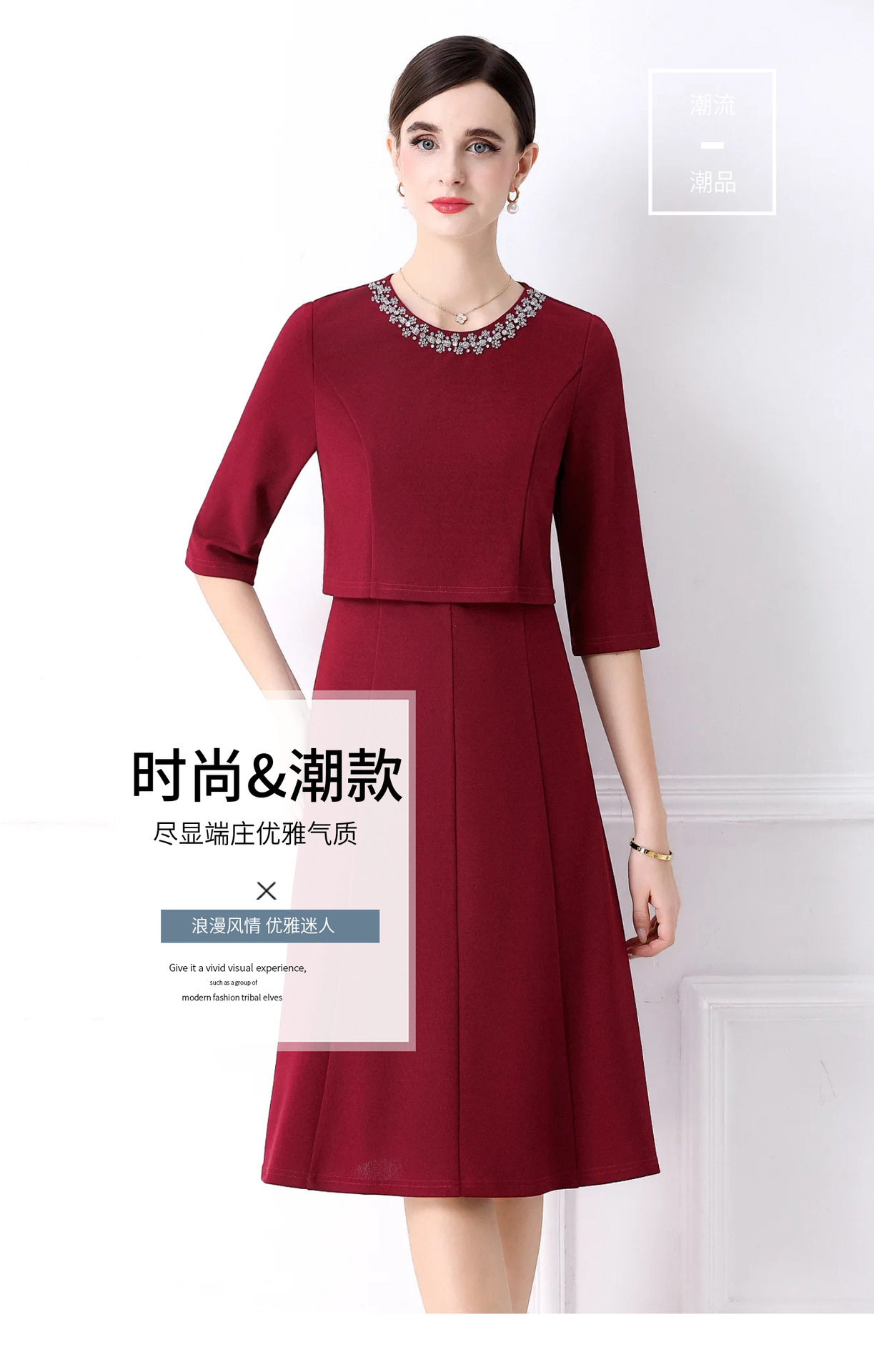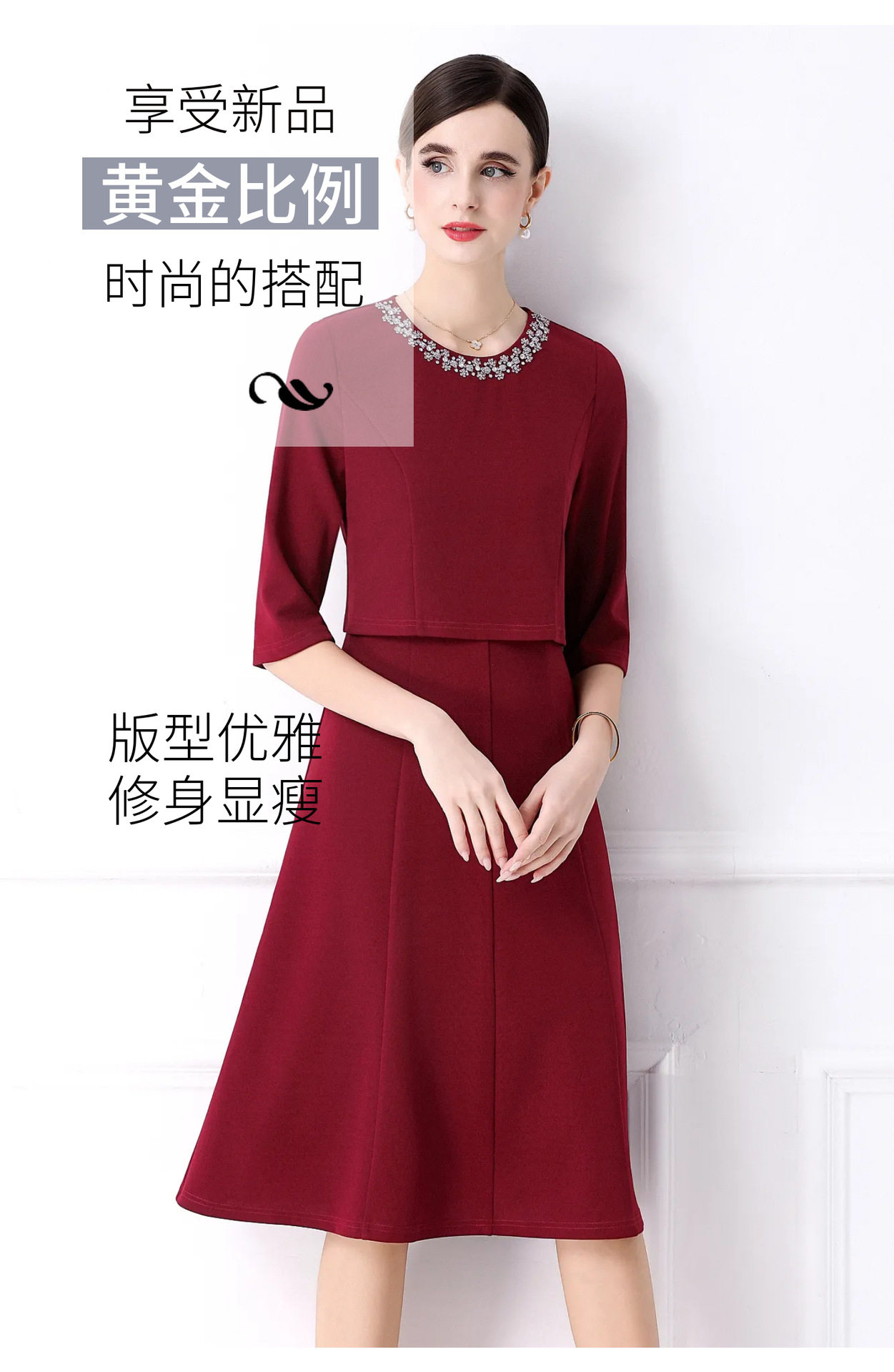 「高货deo」全新升级【铂金会员477/天猫639/差价162】(94812)洛诗琳手工钉珠假两件装连衣裙女2026气质优雅通勤收腰裙