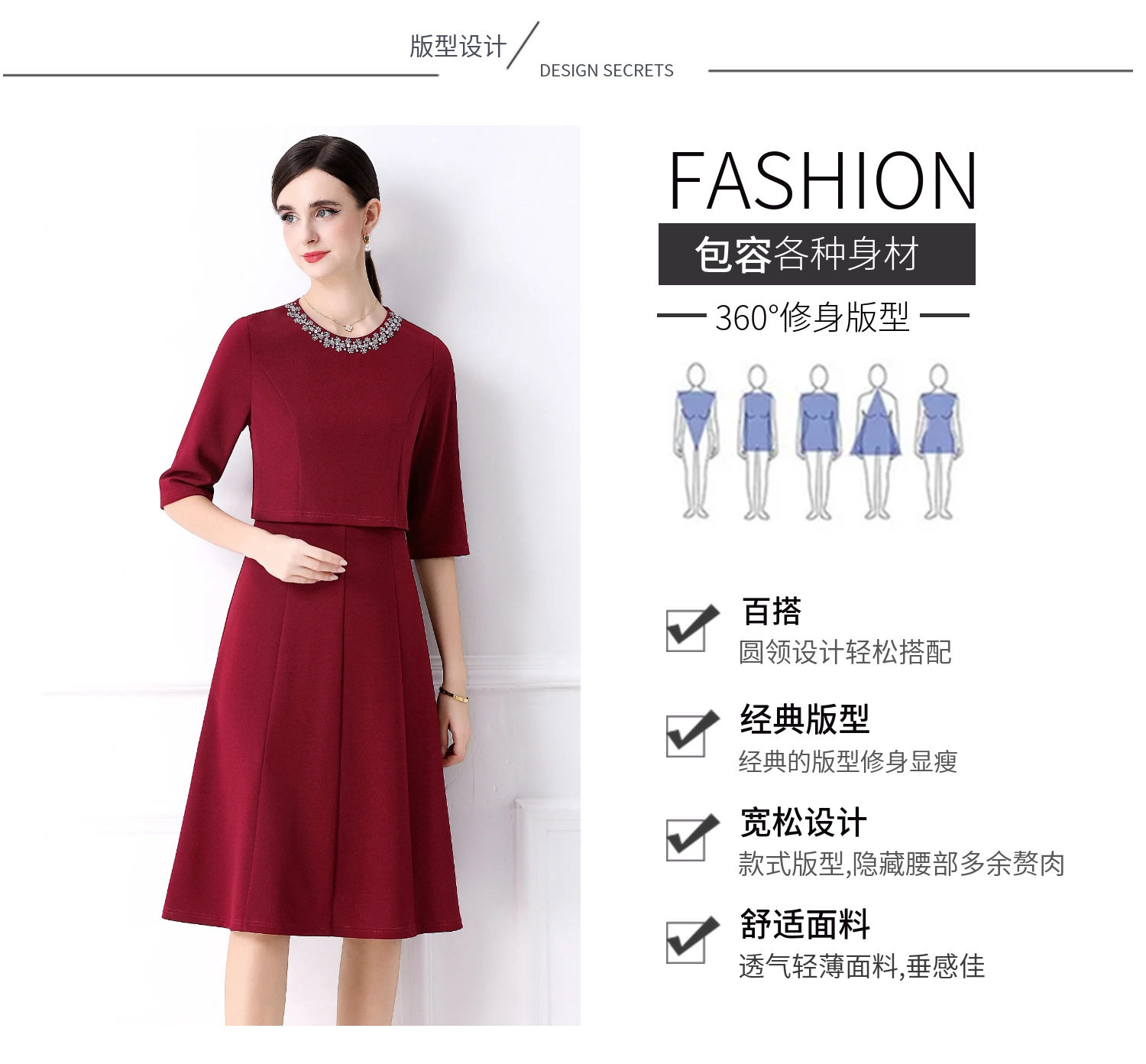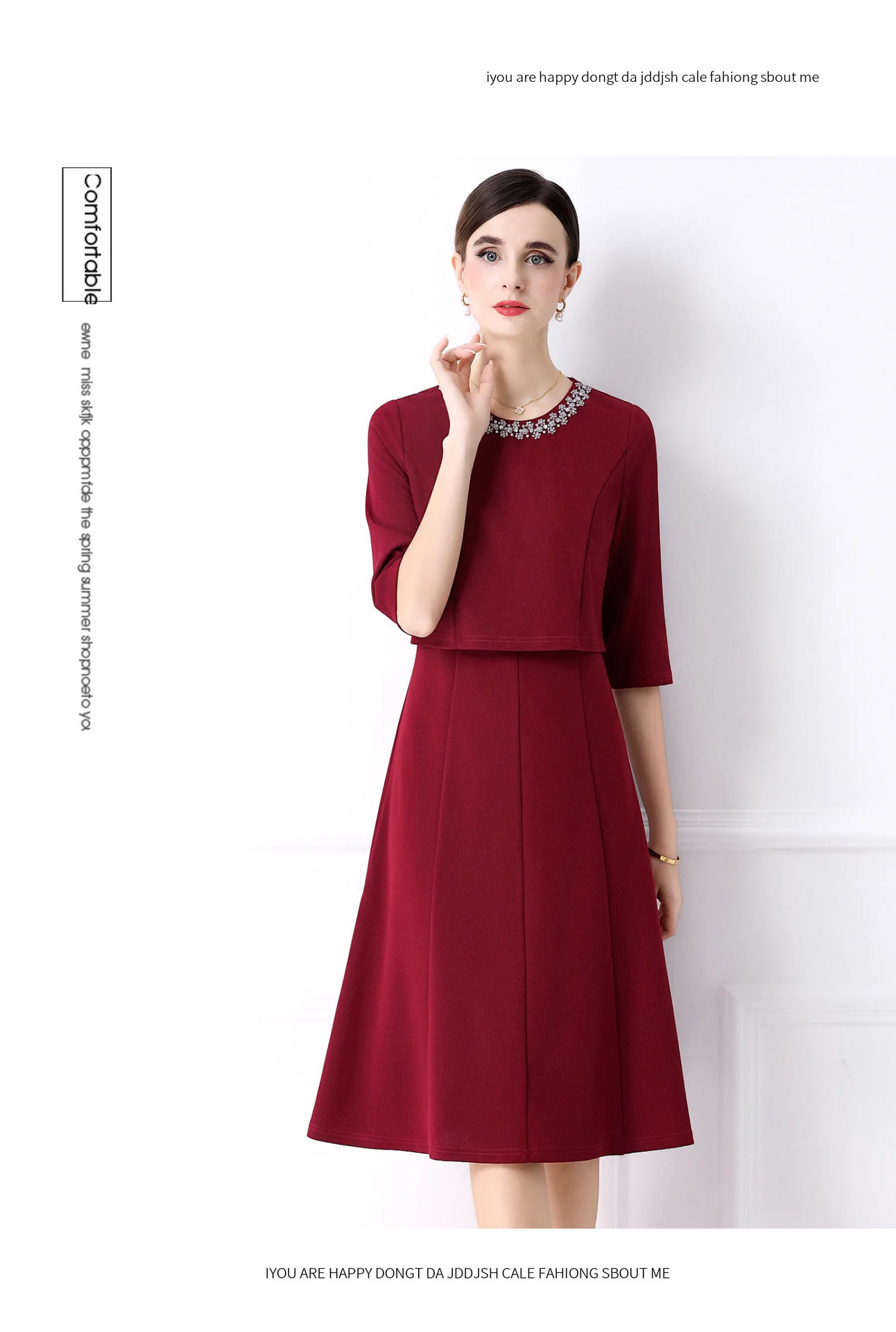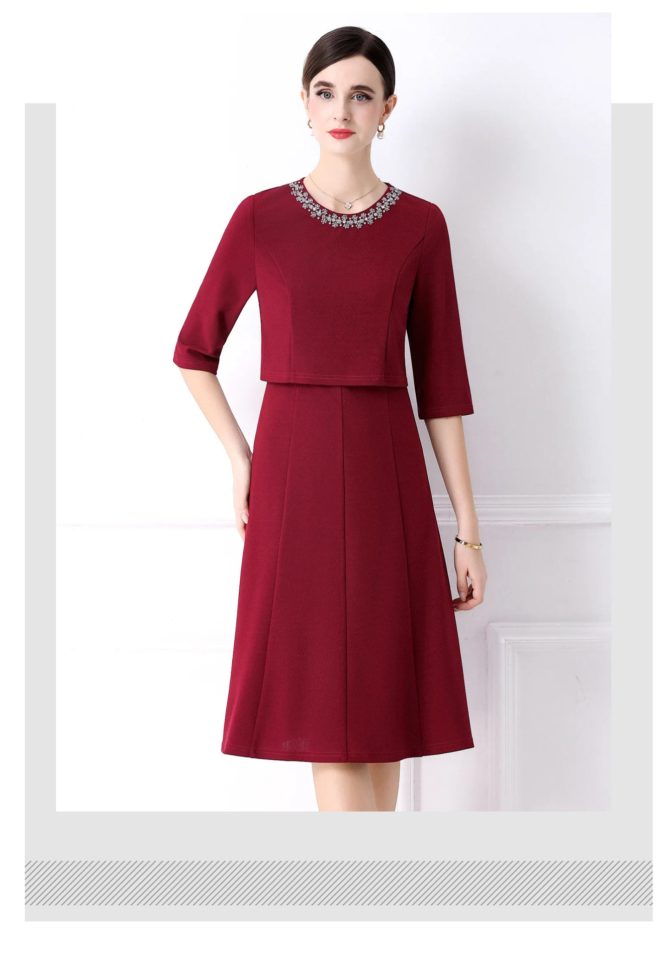 「高货deo」全新升级【铂金会员477/天猫639/差价162】(94812)洛诗琳手工钉珠假两件装连衣裙女2026气质优雅通勤收腰裙