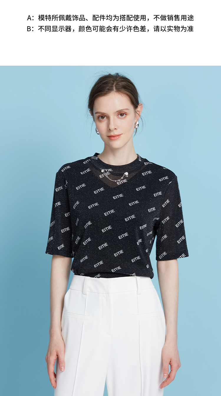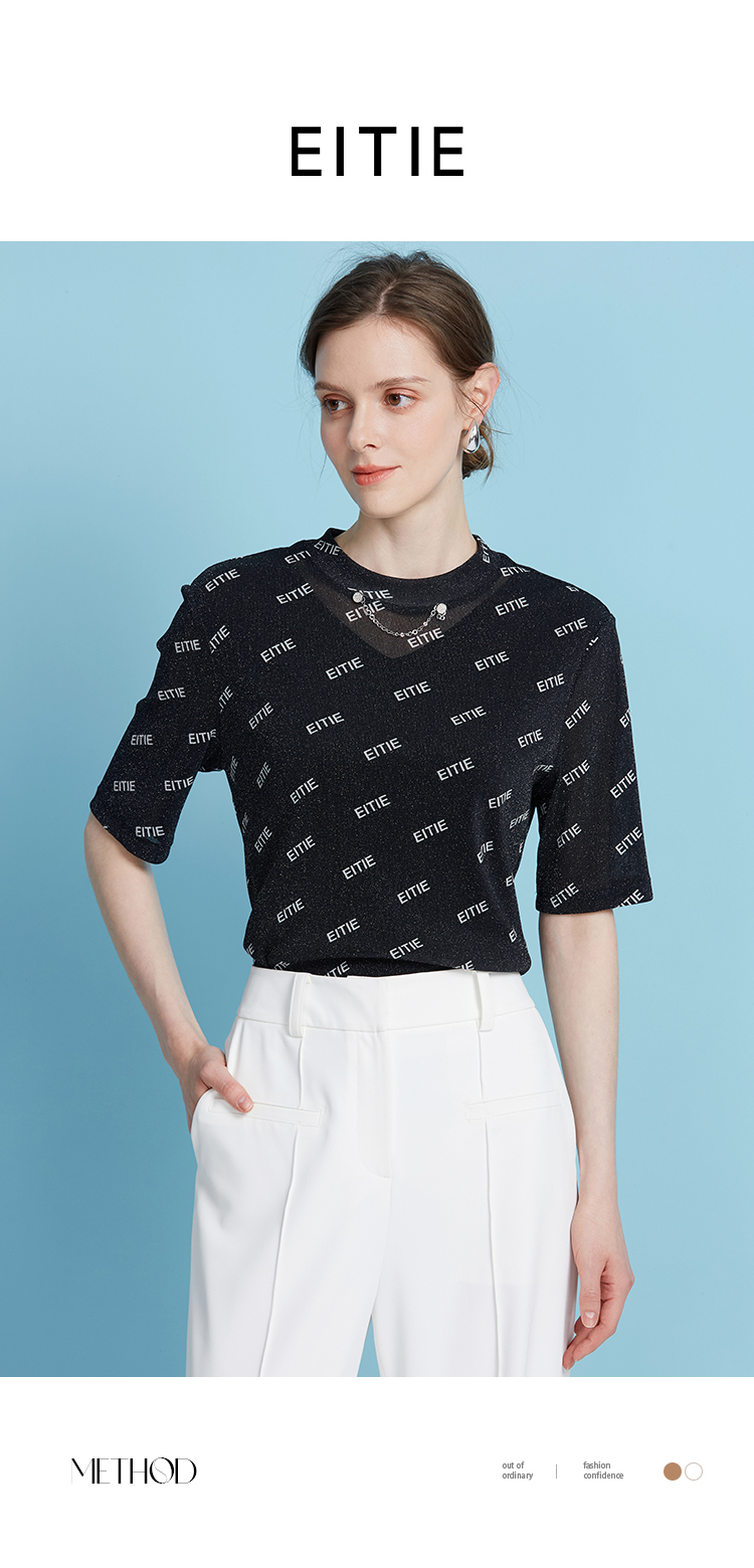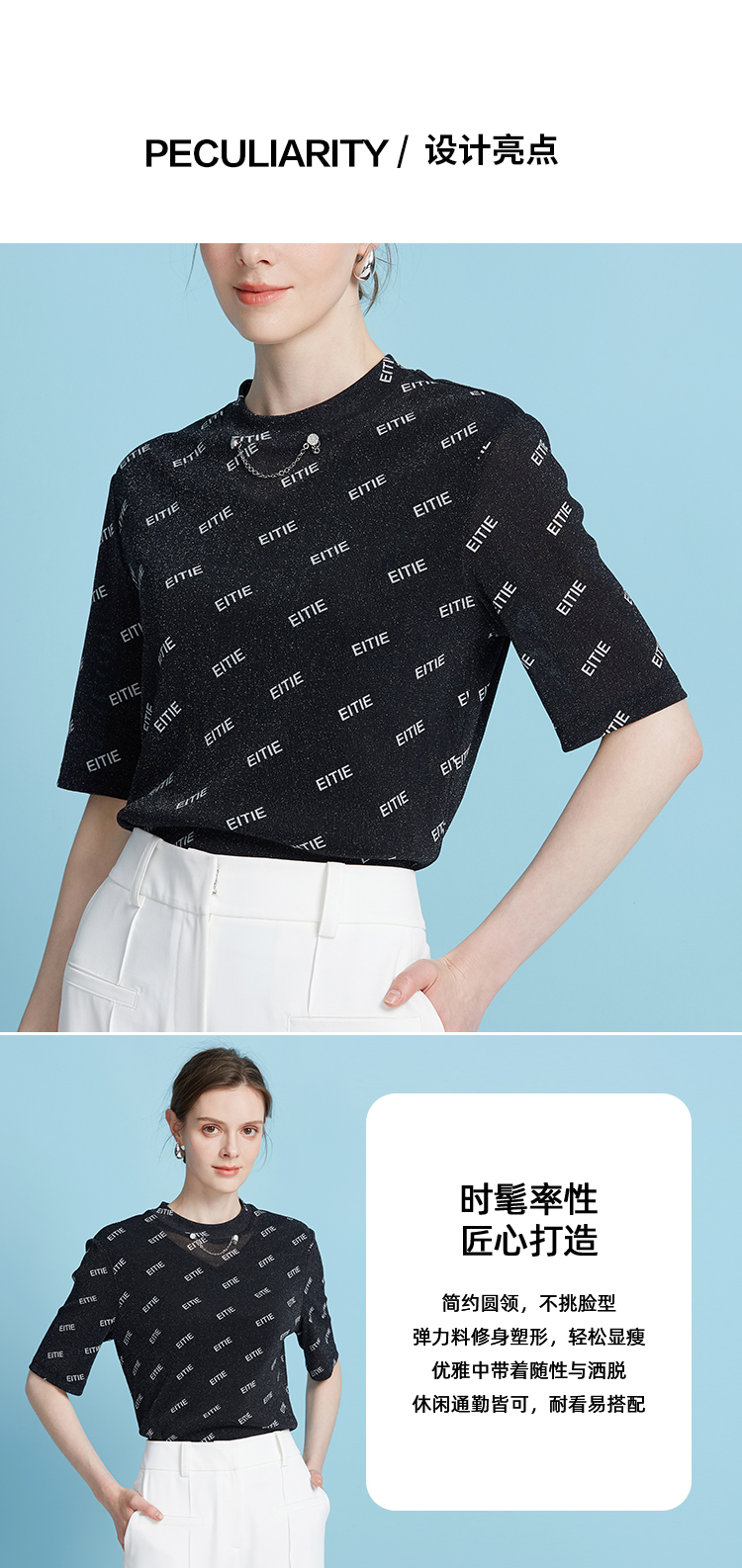 EITIE爱特爱精致细闪短袖套头衫时尚显瘦圆领上衣2025夏季新款B2513626