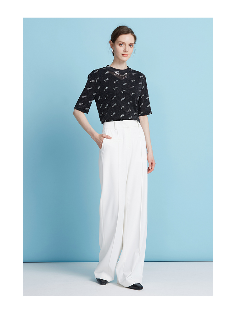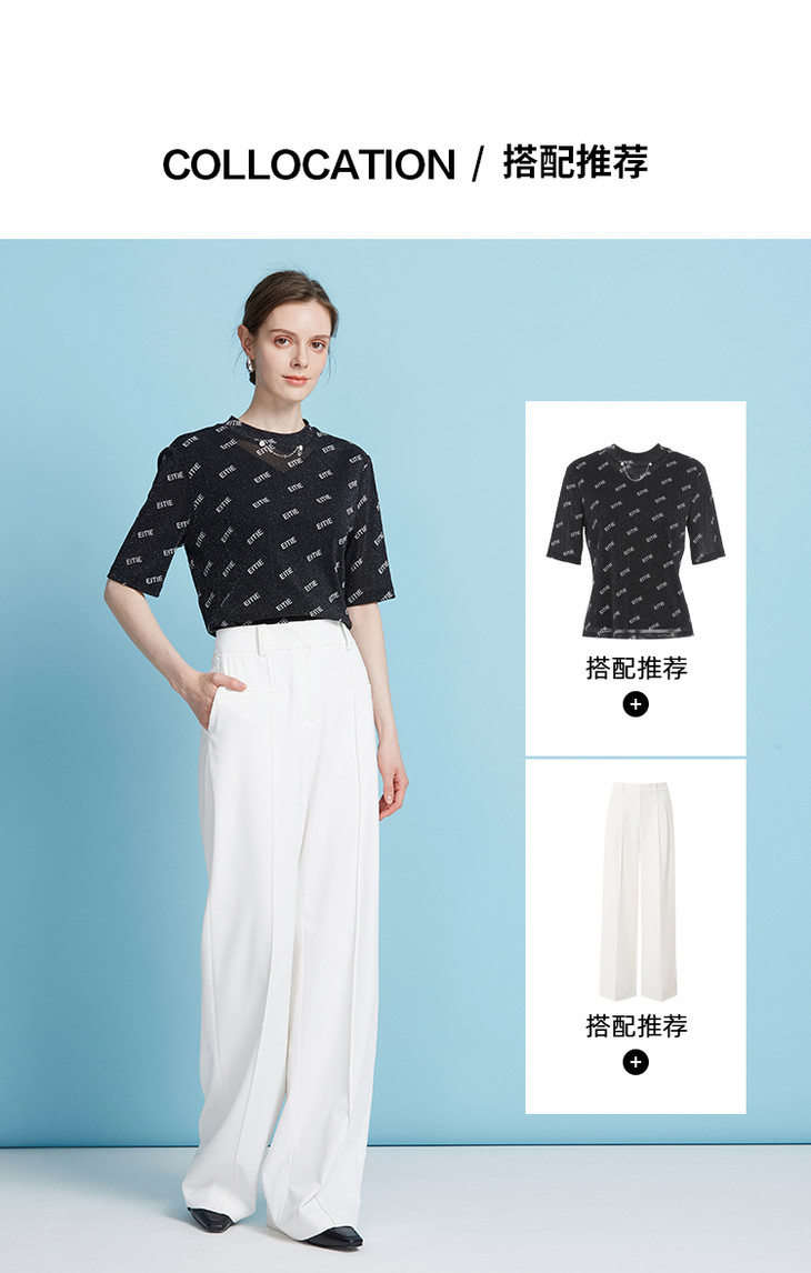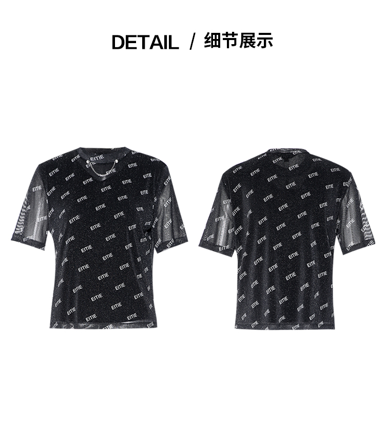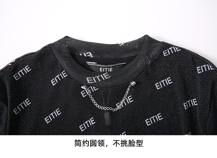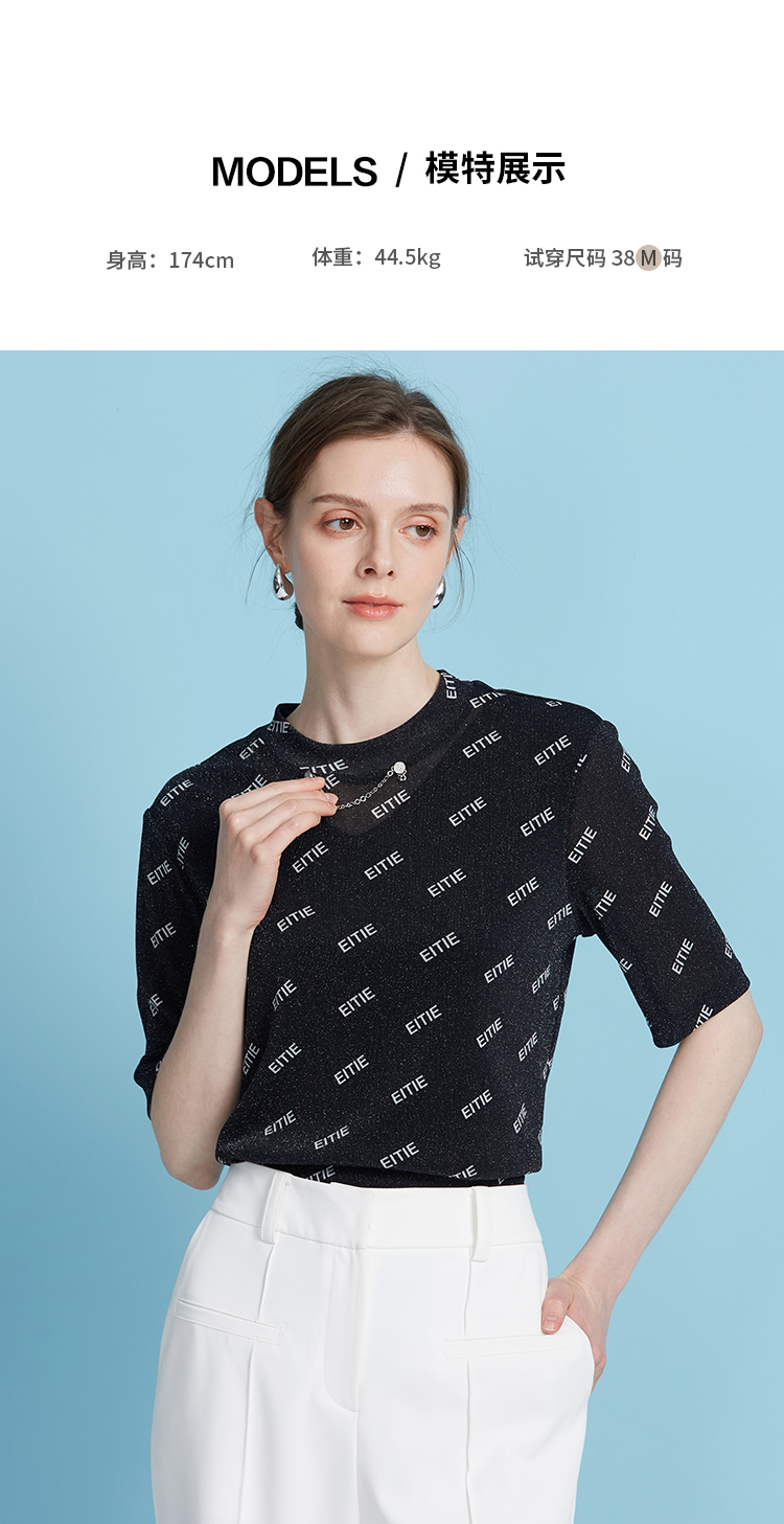 EITIE爱特爱精致细闪短袖套头衫时尚显瘦圆领上衣2025夏季新款B2513626