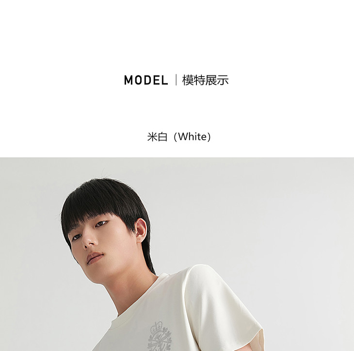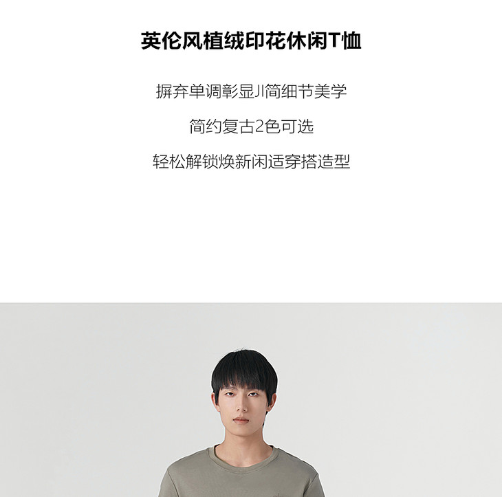 HIM漢崇 舒适修身纯色圆领T恤男潮流简约植绒印花短袖衫 2026夏季