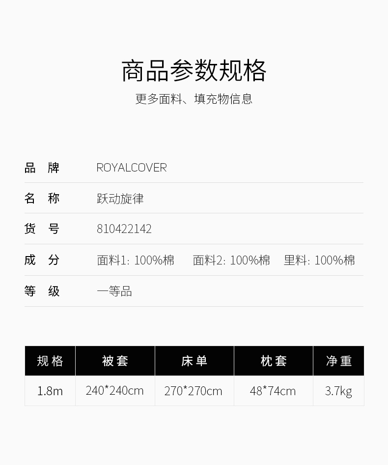 ROYALCOVER罗卡芙家纺100S双股全棉长绒棉提花四件套(跃动旋律810422142)
