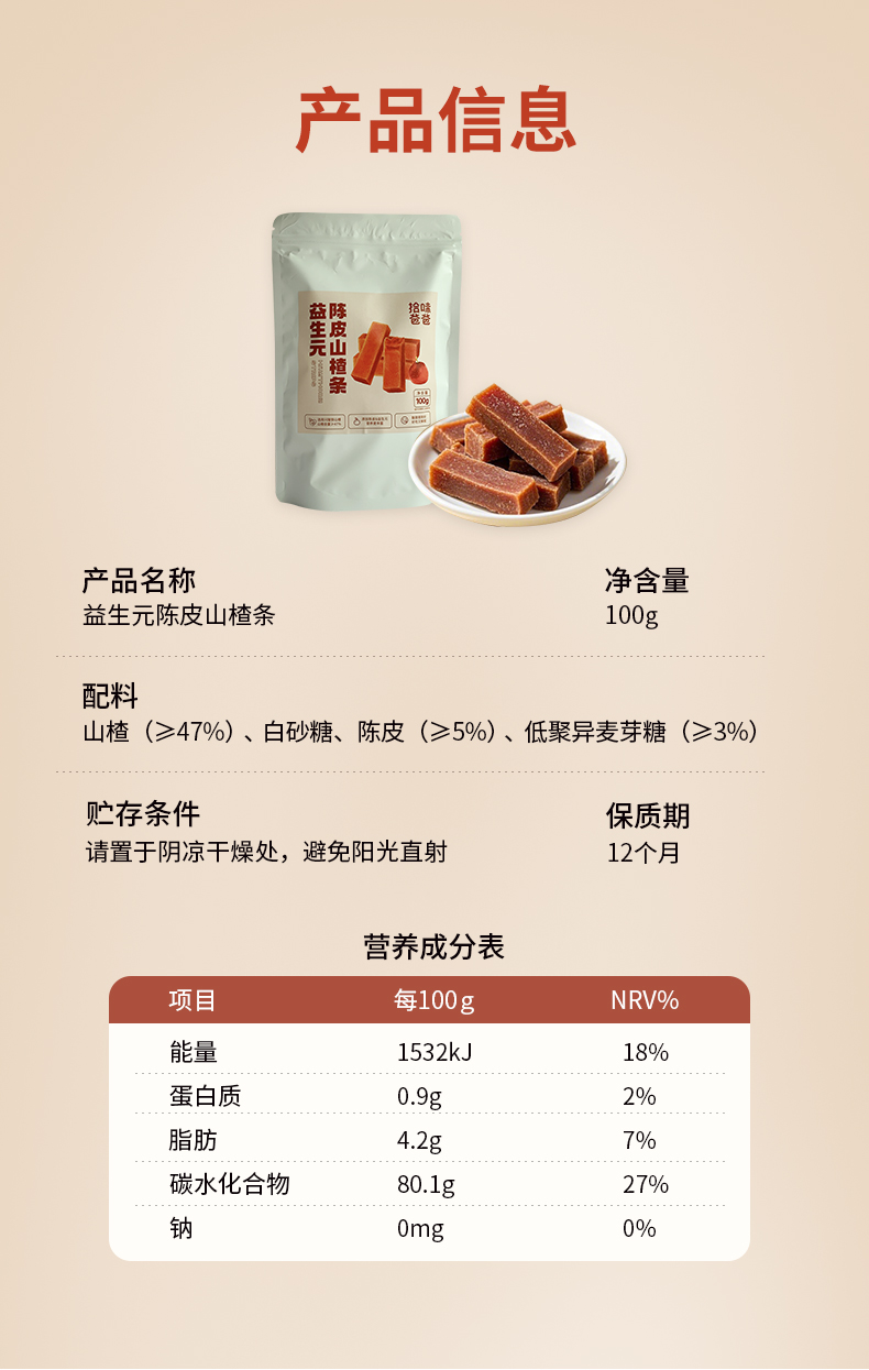拾爸家⠀益生元陈皮山楂条 山楂含量≥47% 营养更丰富 配料干净 100g/袋