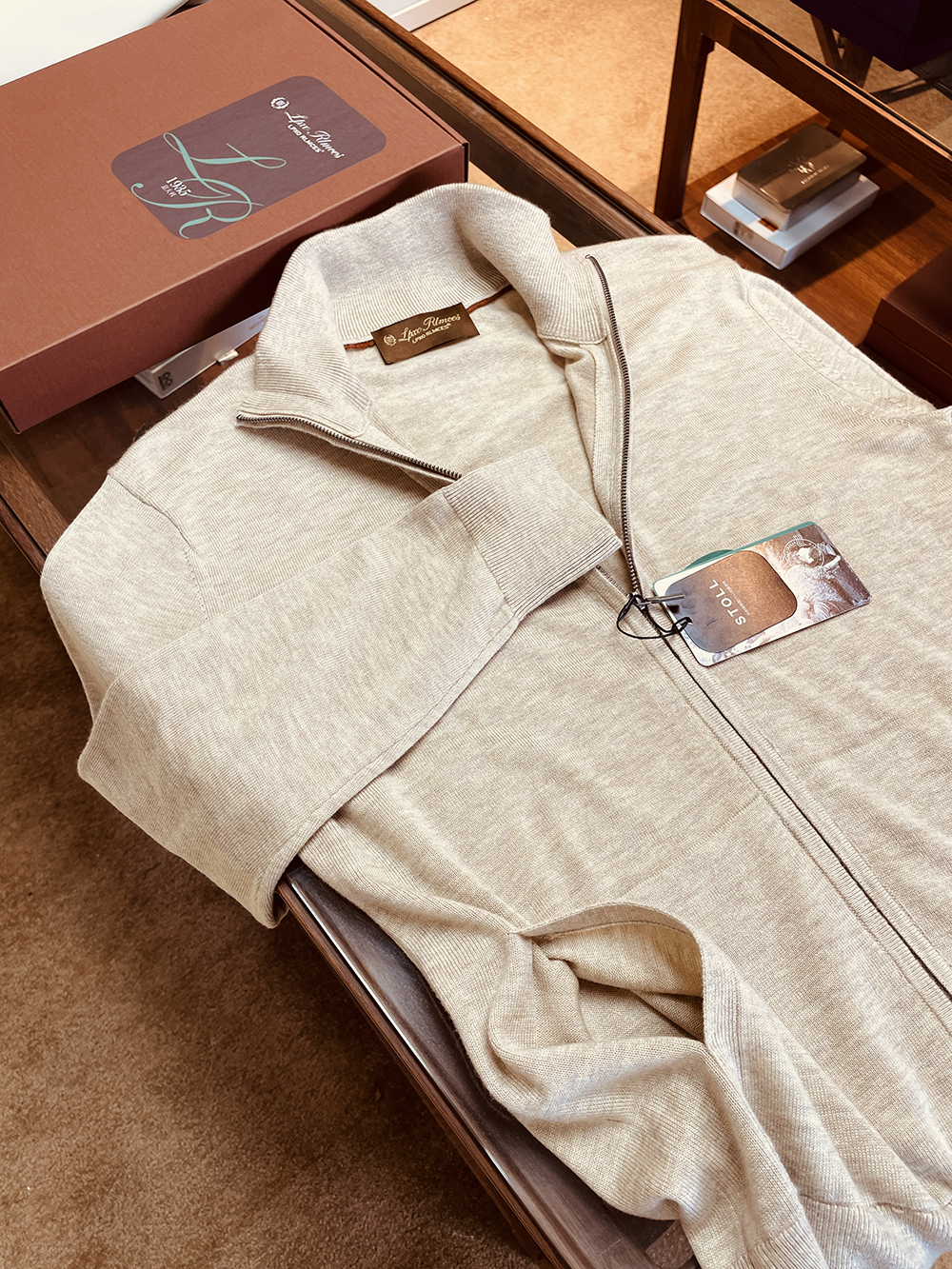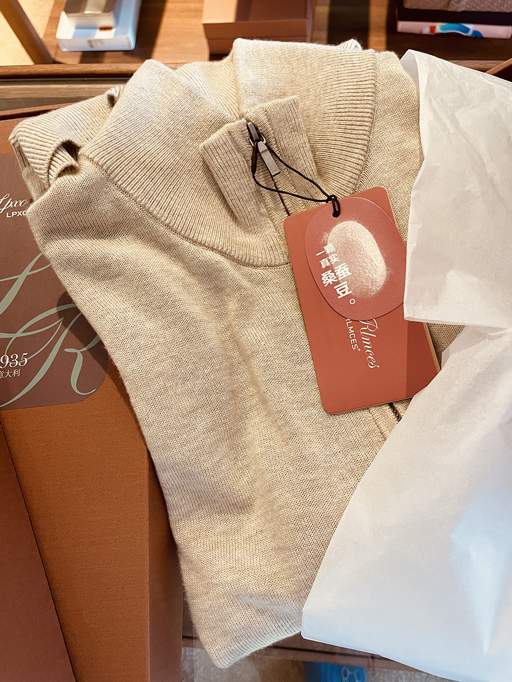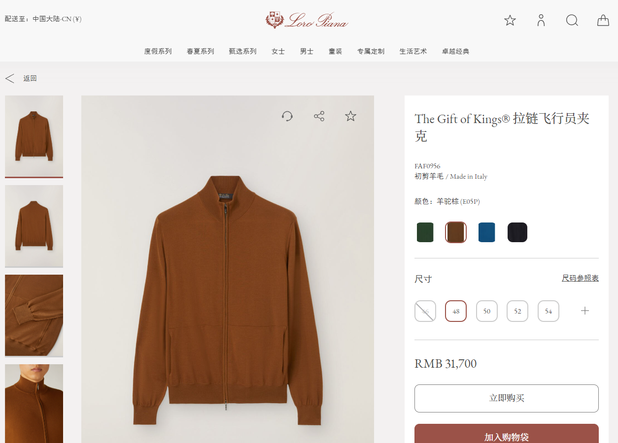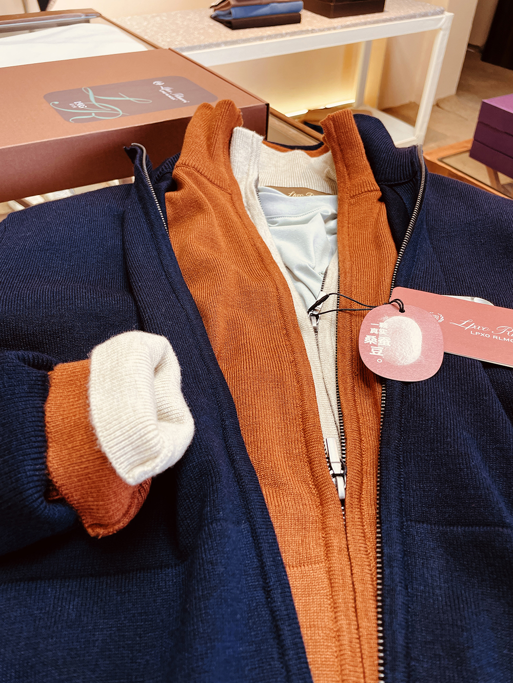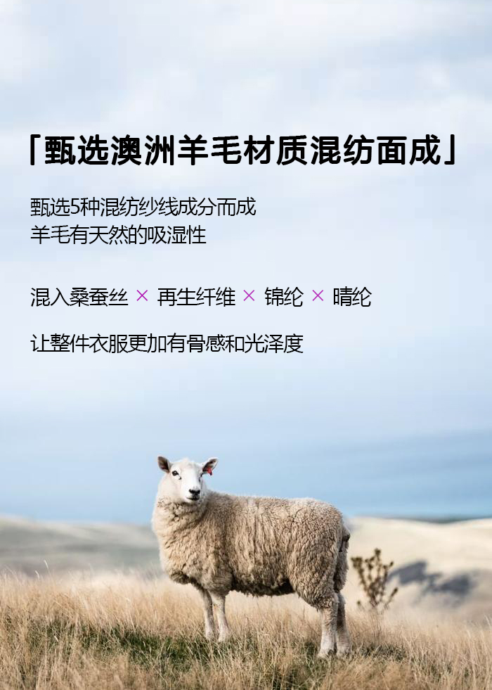 这款服装采用非常精细羊毛和奢级的桑蚕丝