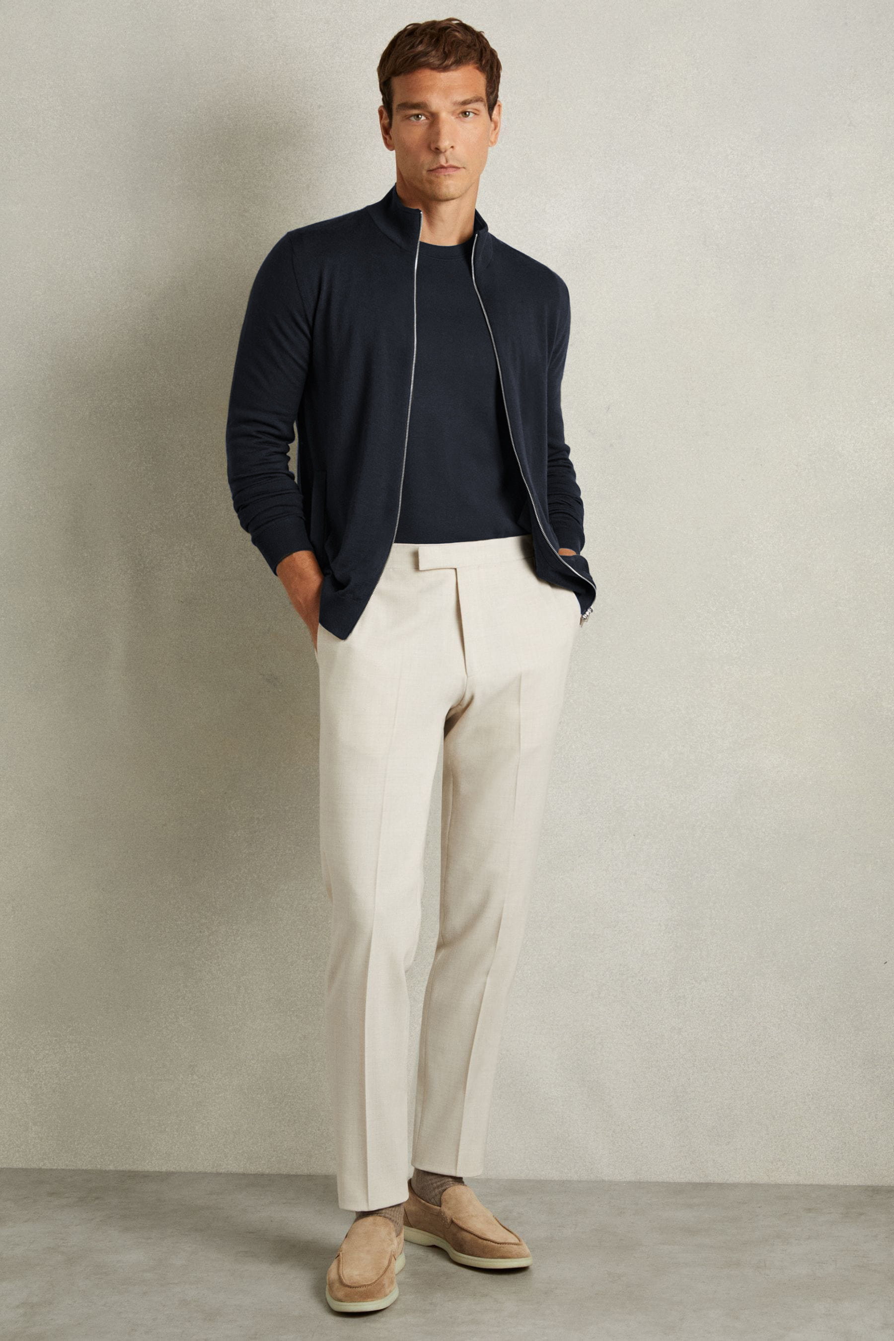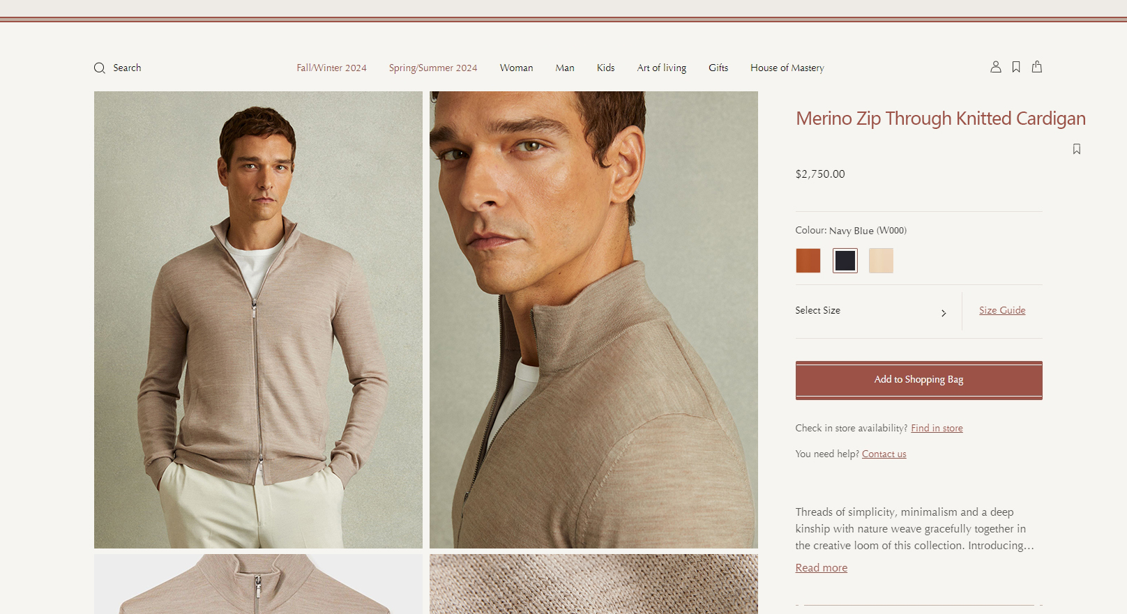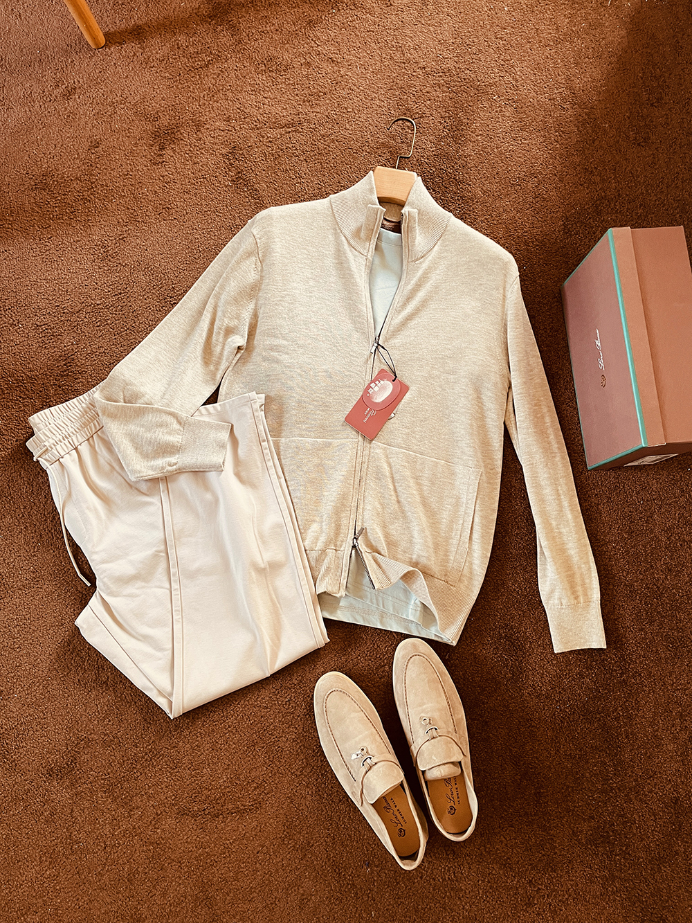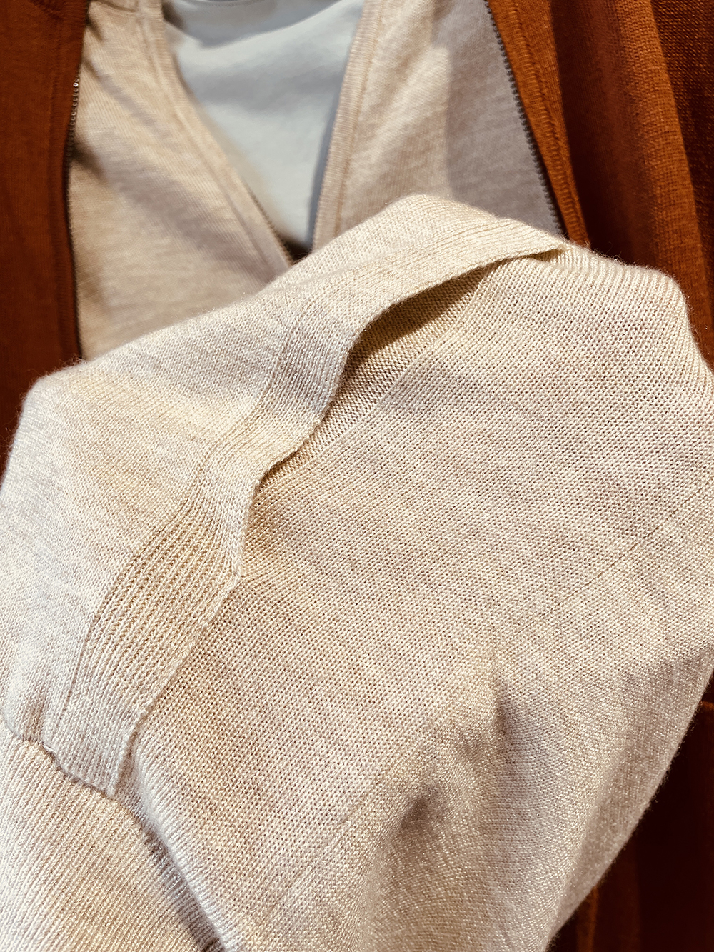 这款服装采用非常精细羊毛和奢级的桑蚕丝