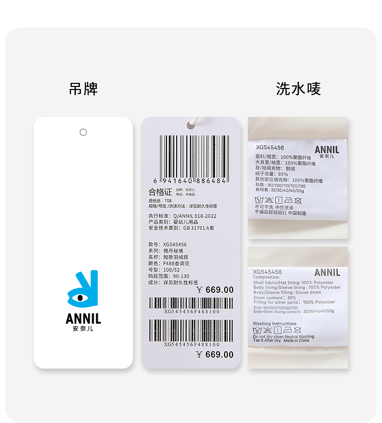 【实体店同款】女童短款羽绒服冬季新款安奈儿童装XG545456