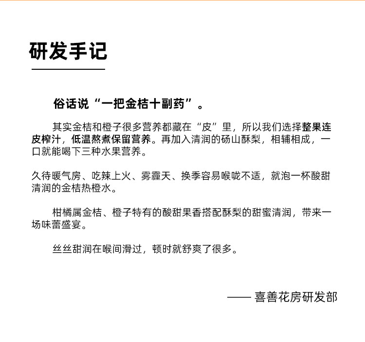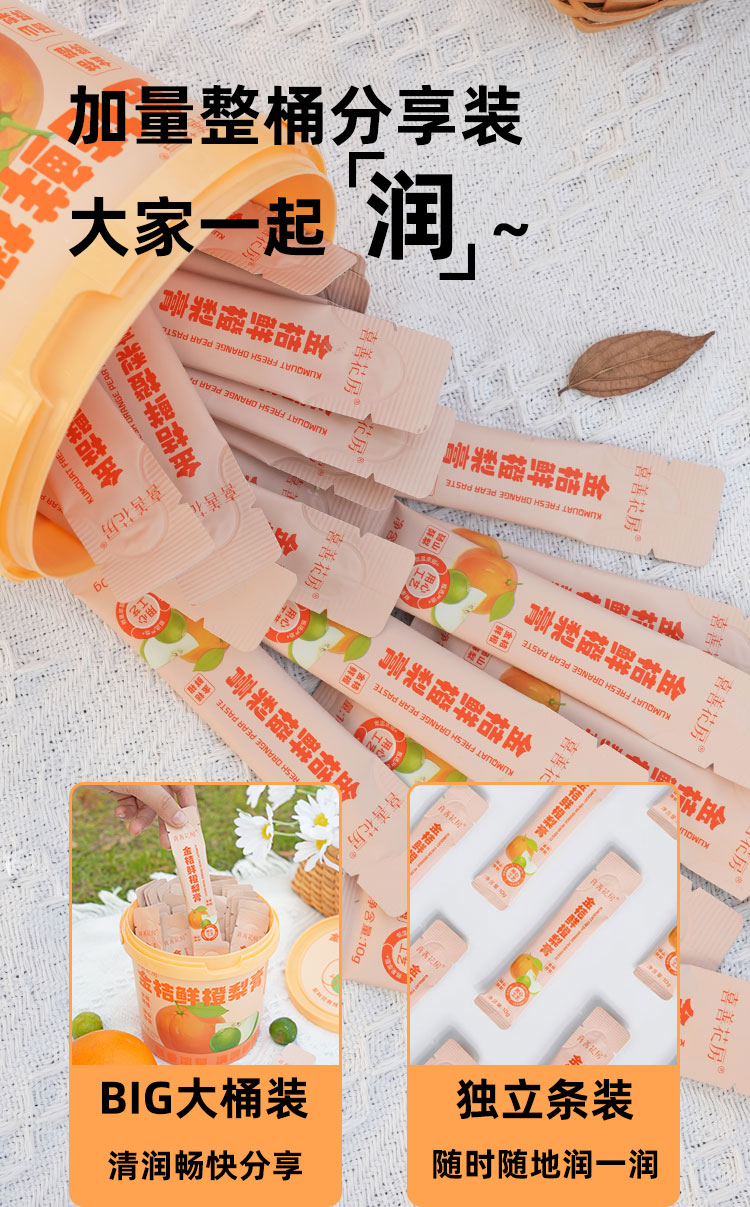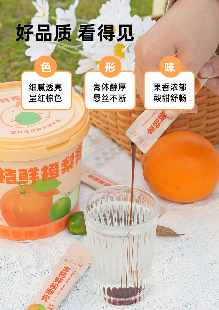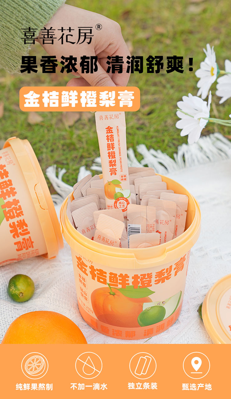 喜善花房金桔鲜橙梨膏 210g/桶(10克*21条)