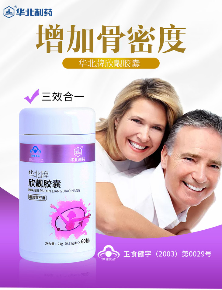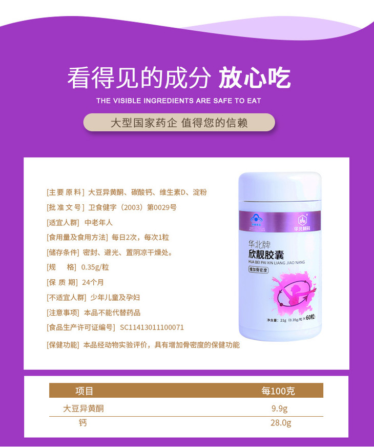 华北牌欣靓胶囊 60粒/瓶 补充大豆异黄酮 增加骨密度