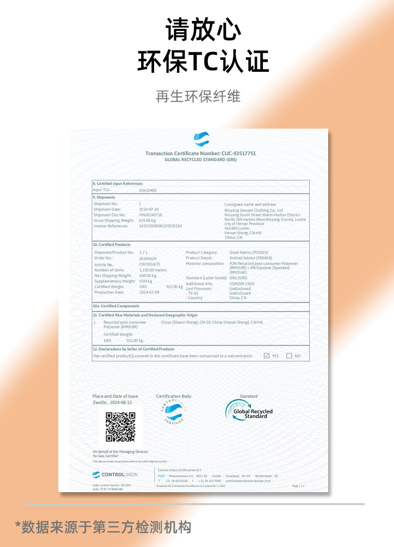 面料:95%聚酯纤维,5%氨纶