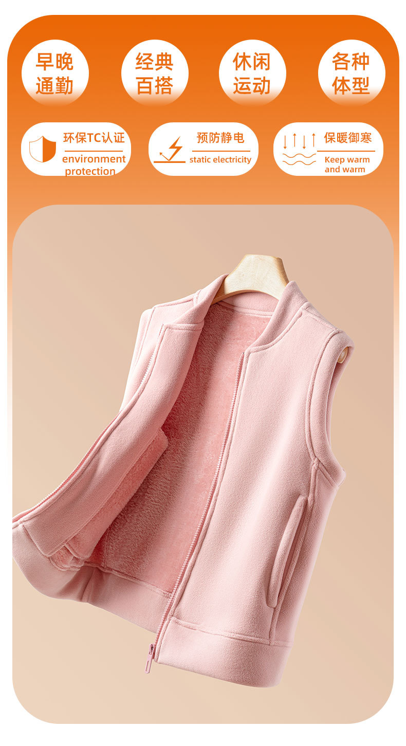百媚生 奥利绒立领拉链马甲女士秋冬季防风保暖背心L347