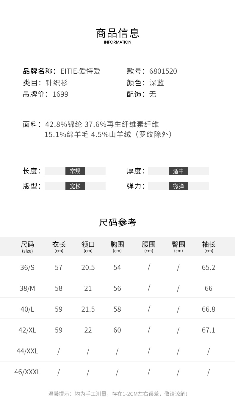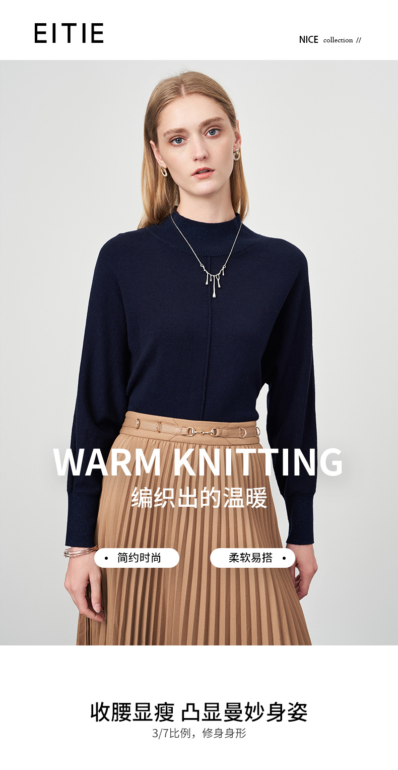 EITIE爱特爱简约百搭高领打底衫毛衣针织衫6801520