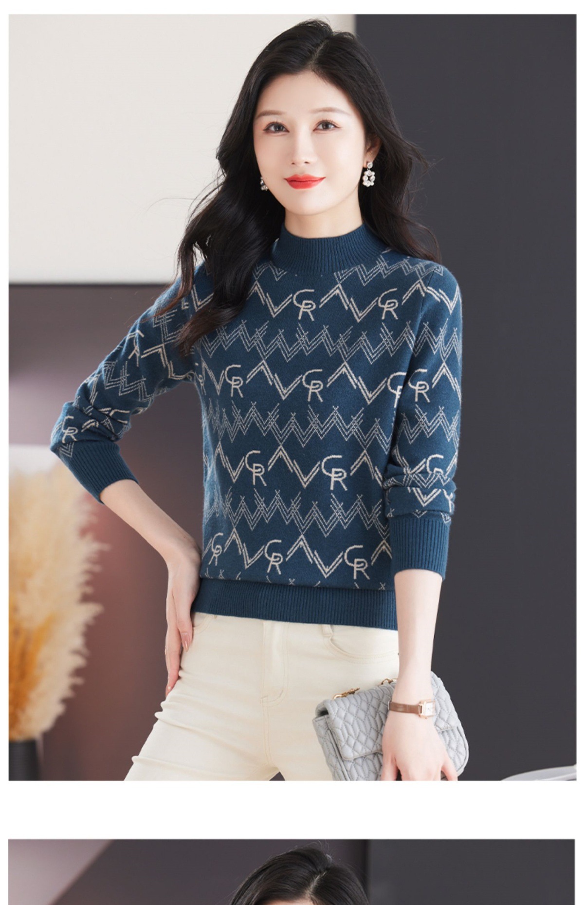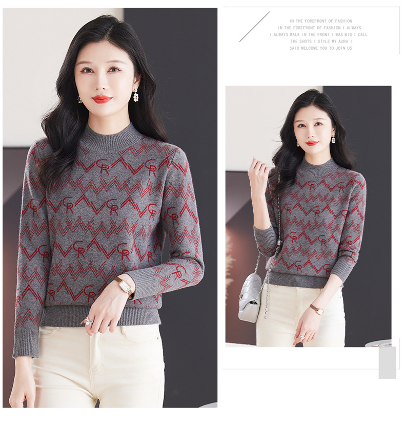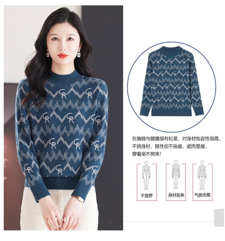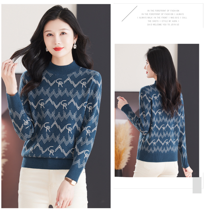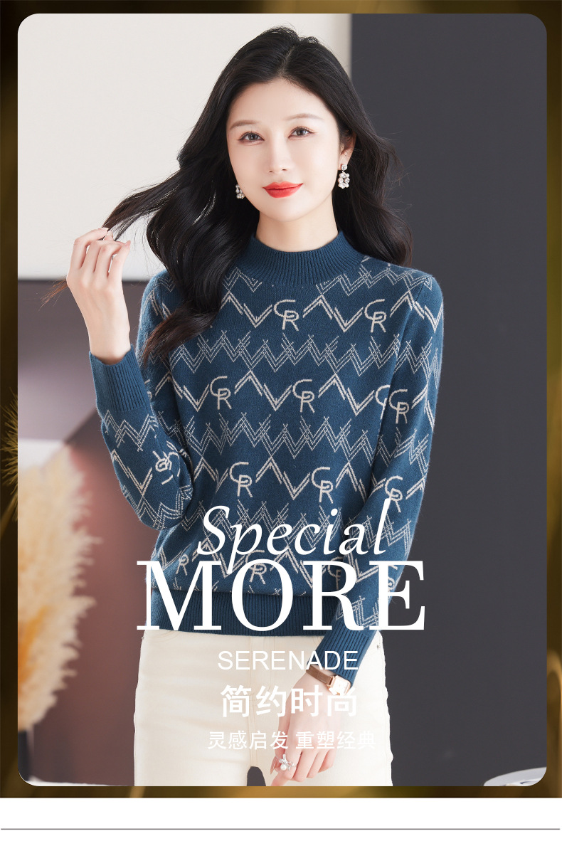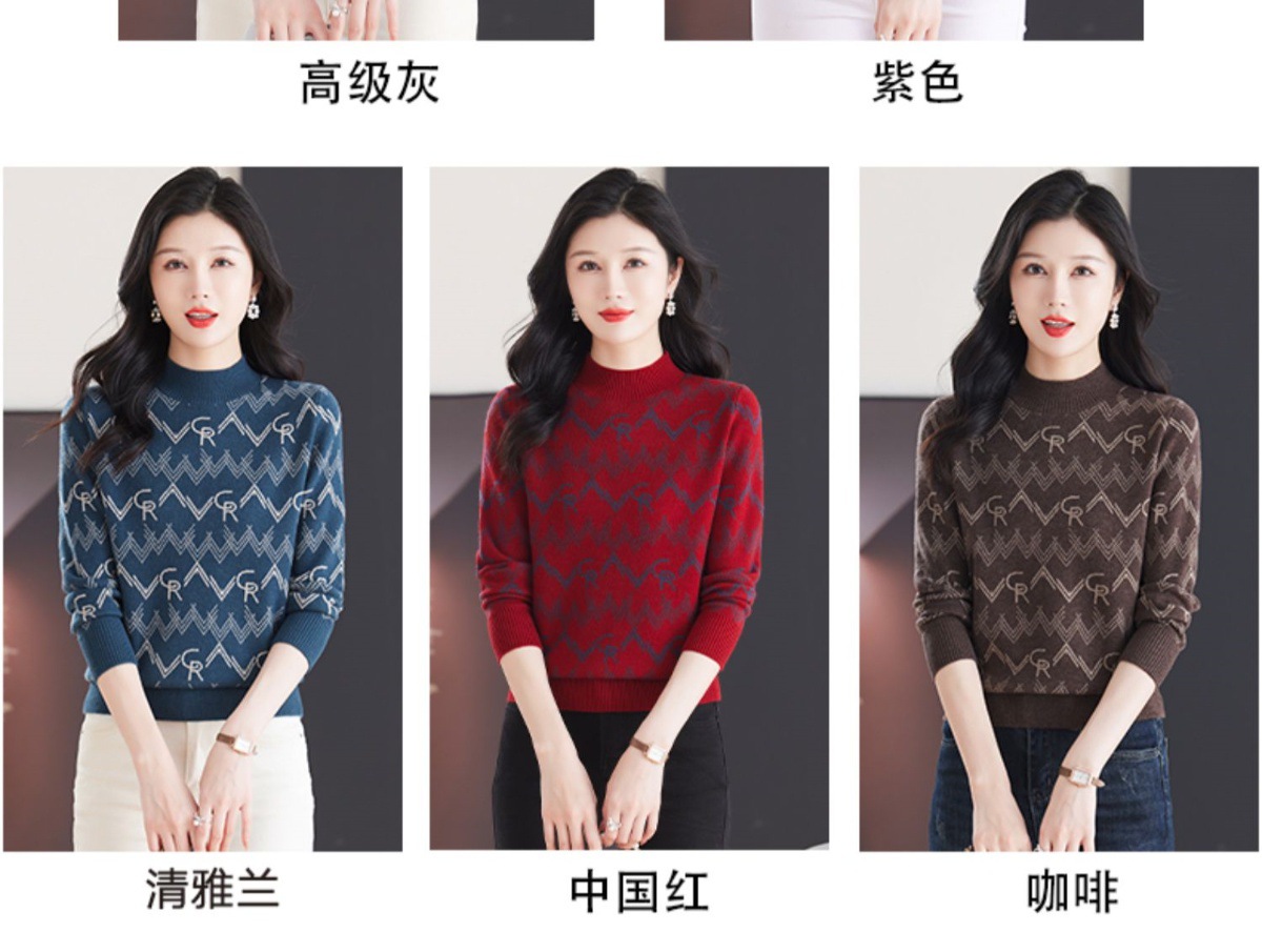 CC-103-79005半高领毛衣女装2024新款秋冬显瘦宽松慵懒长袖上衣内搭打底针织衫
