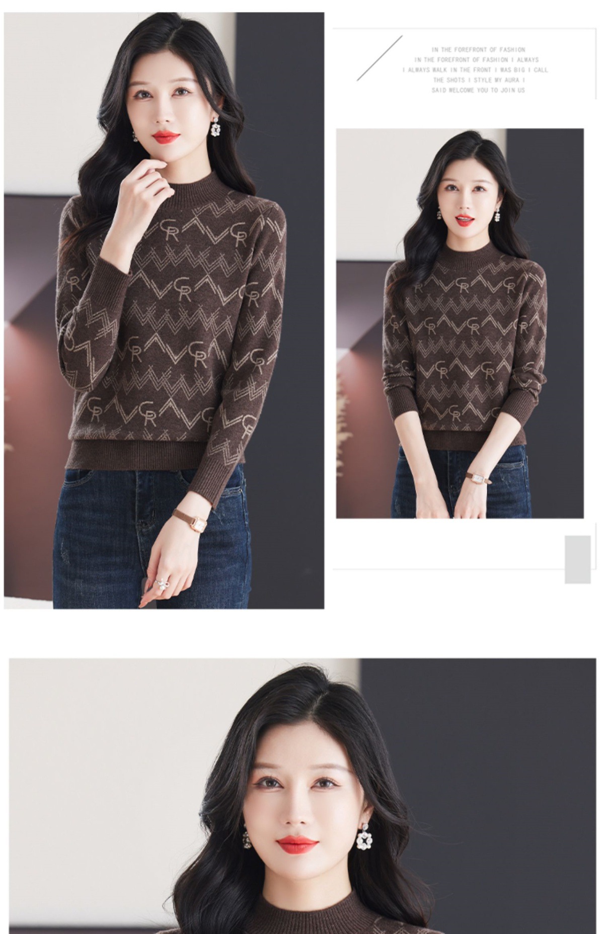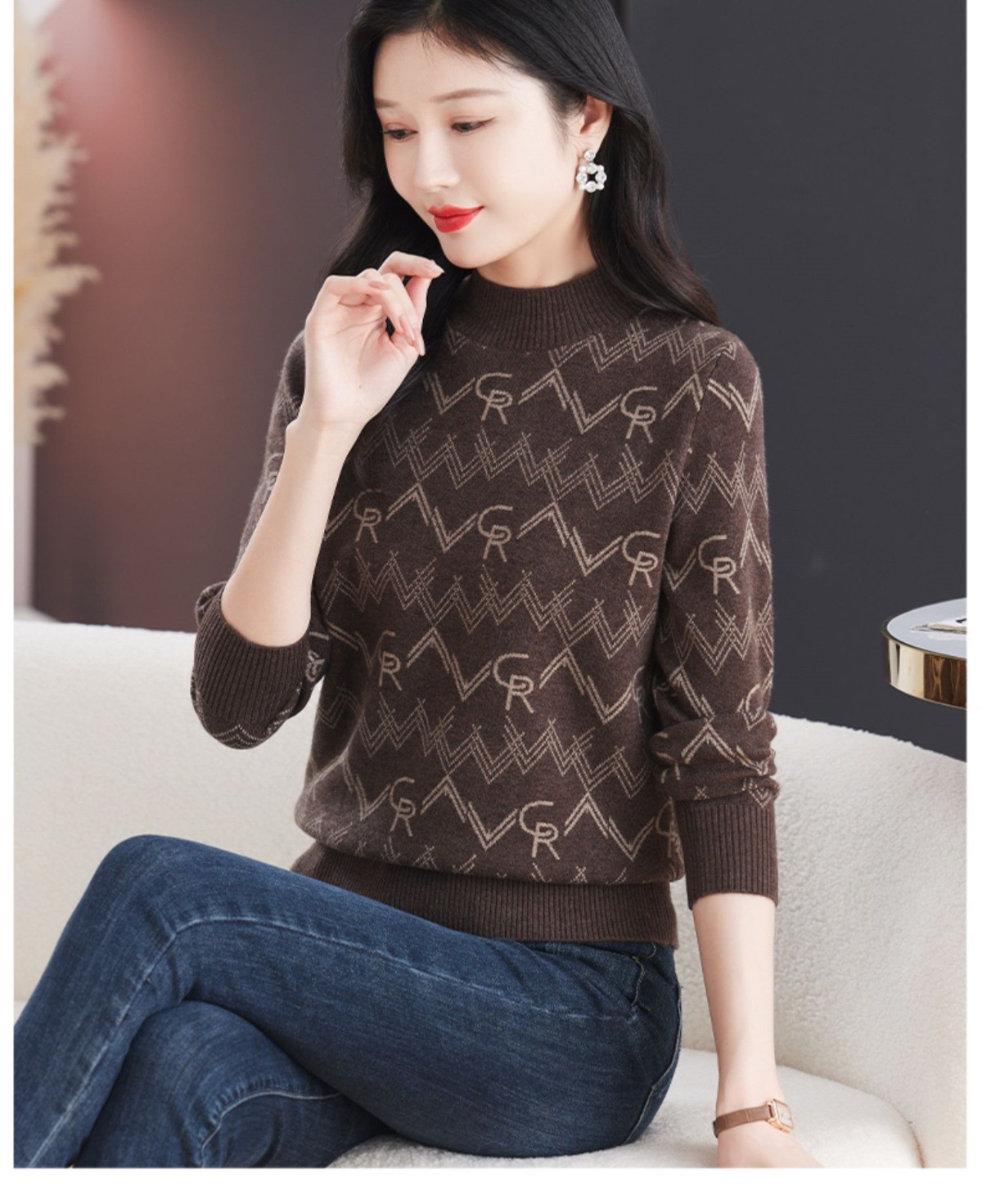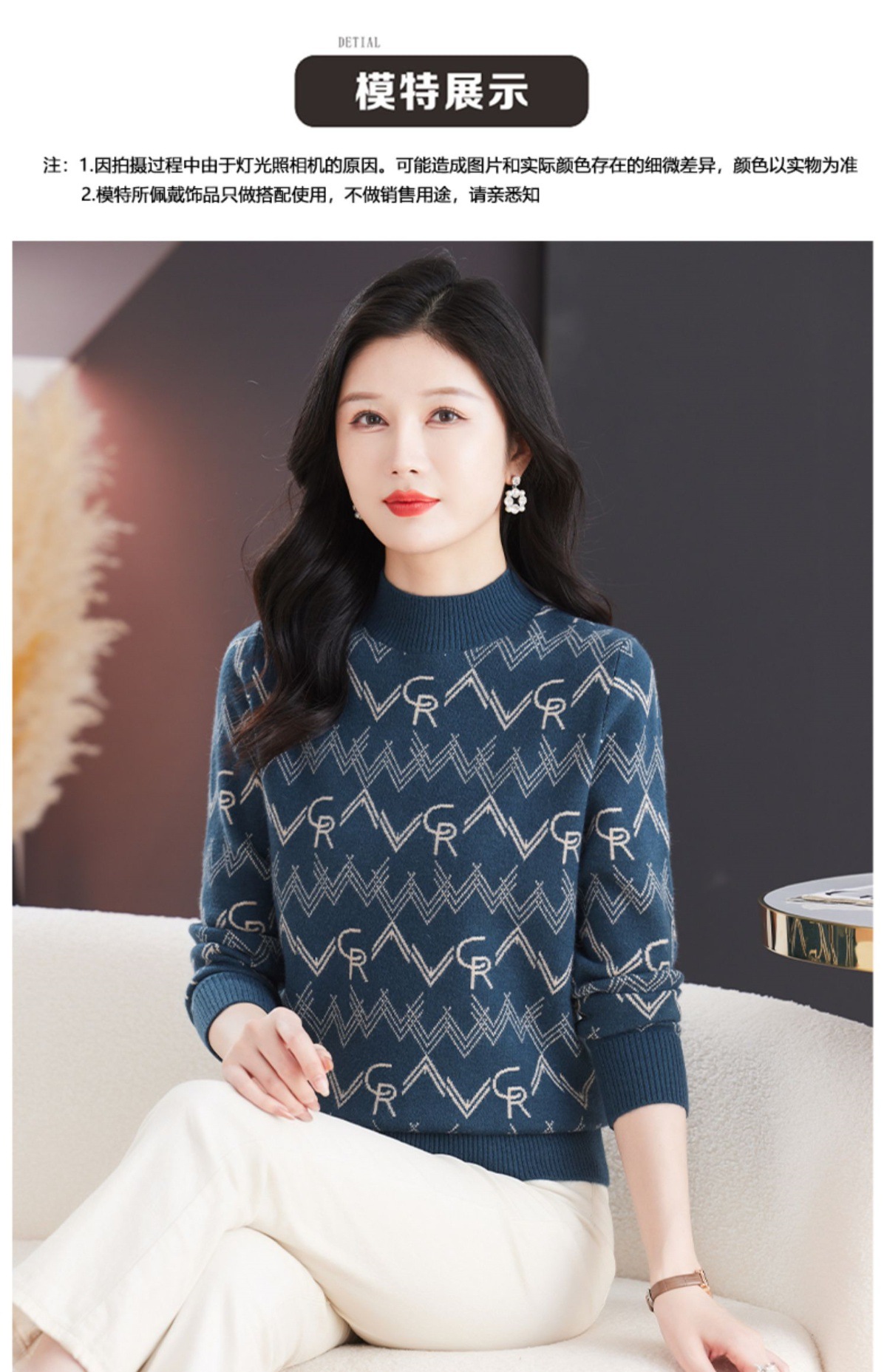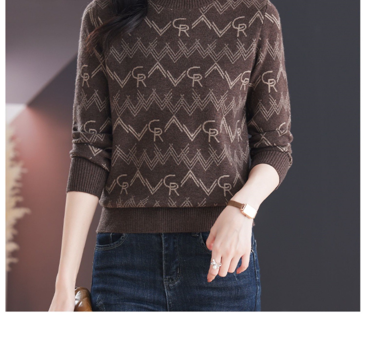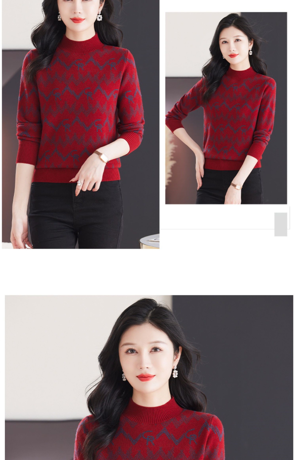 CC-103-79005半高领毛衣女装2024新款秋冬显瘦宽松慵懒长袖上衣内搭打底针织衫