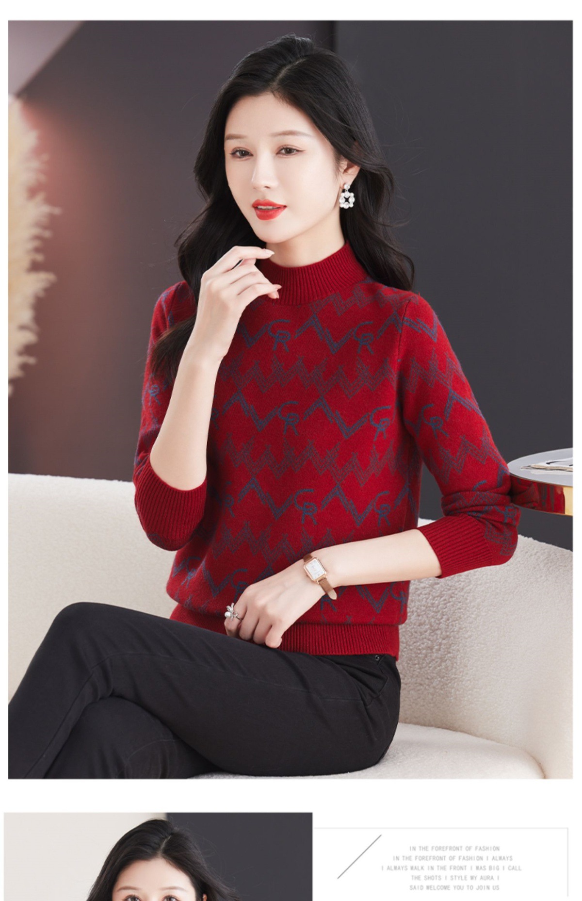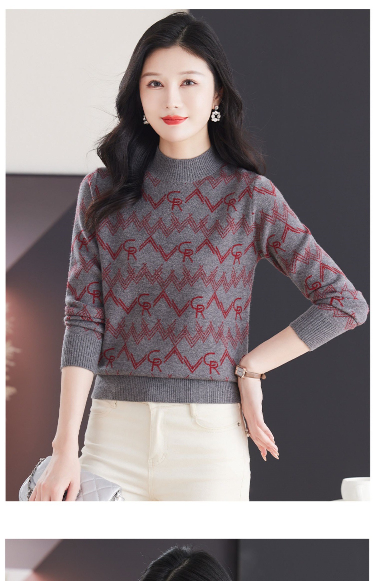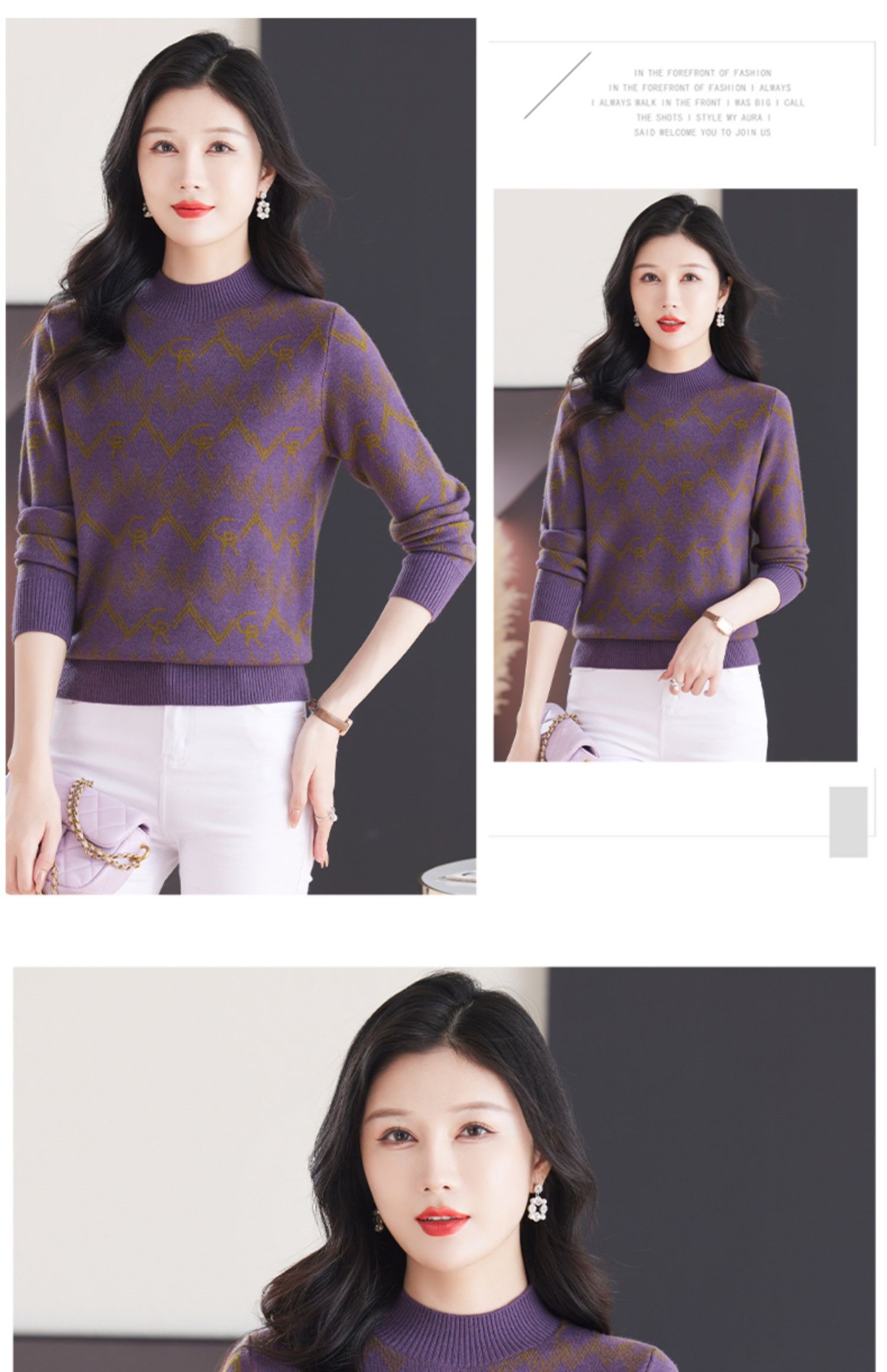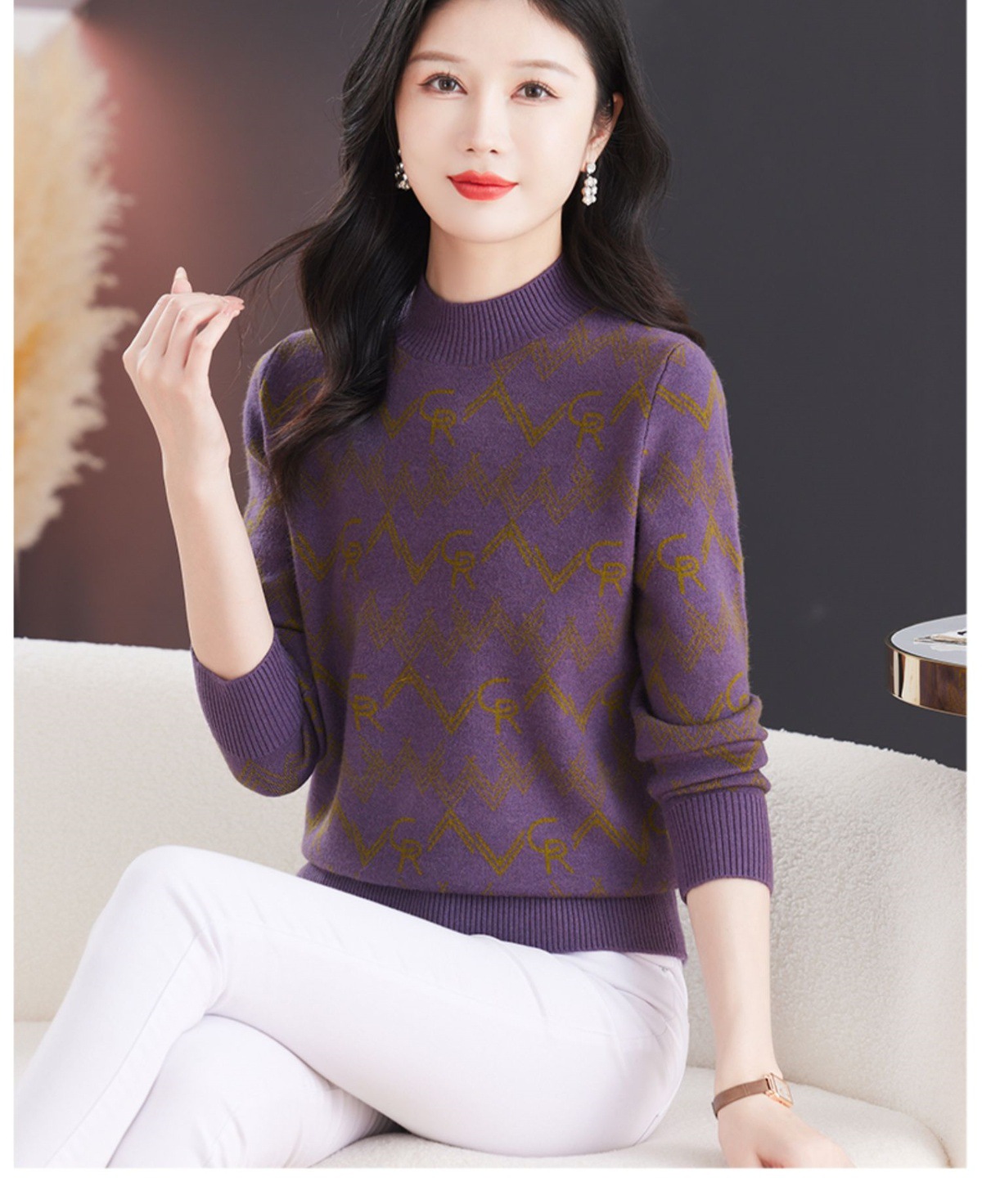 CC-103-79005半高领毛衣女装2024新款秋冬显瘦宽松慵懒长袖上衣内搭打底针织衫