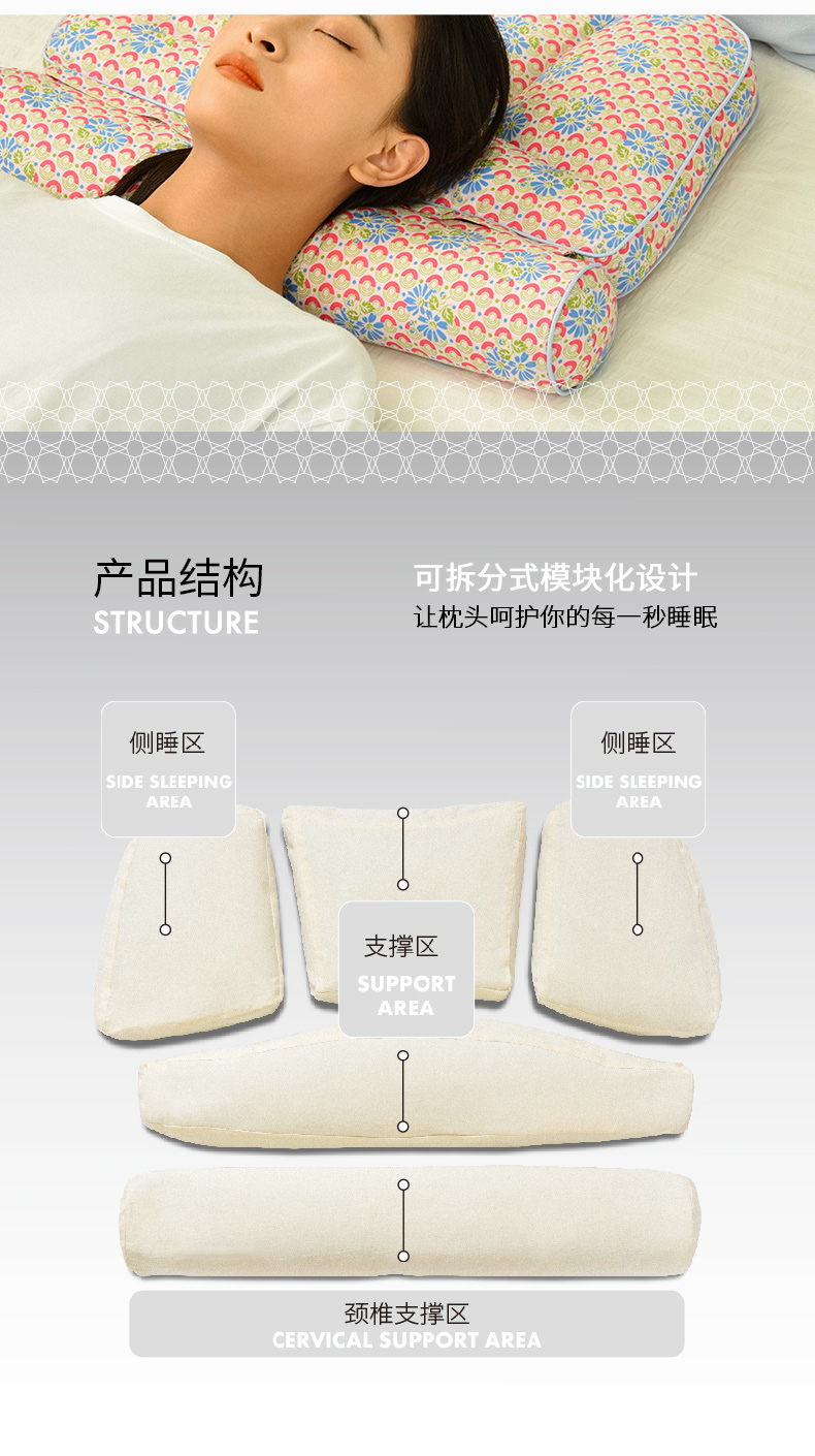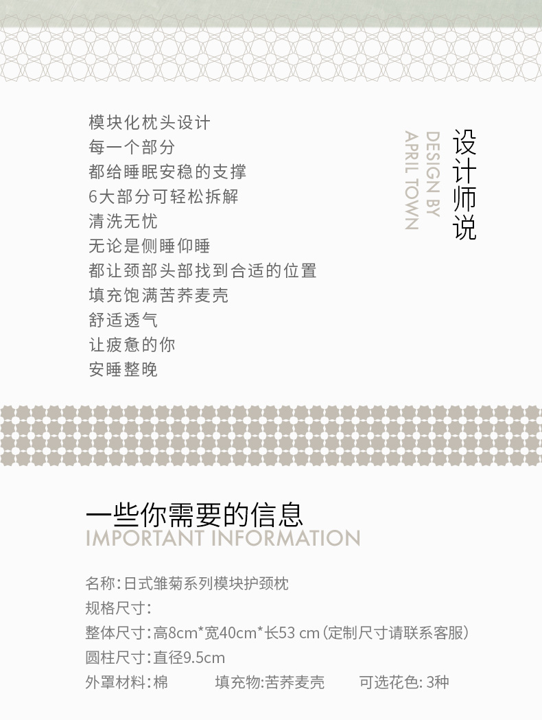日式雏菊系列模块枕头分区护颈椎枕头纯全荞麦壳助睡眠