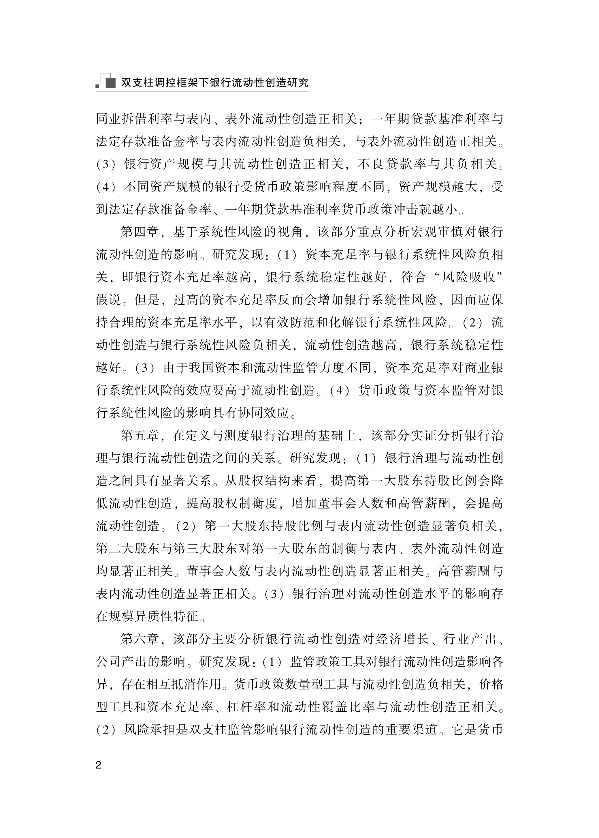 双支柱调控框架下银行流动性创造研究