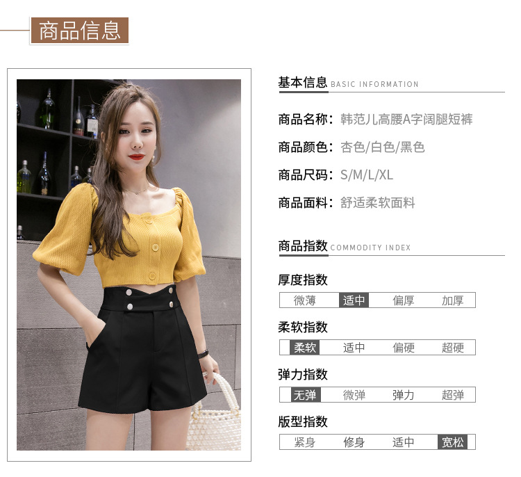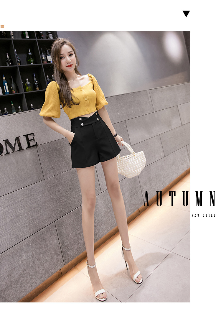 YXF-6916新款西装短裤女时尚显瘦高腰外穿阔腿短靴裤潮